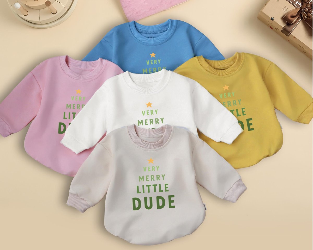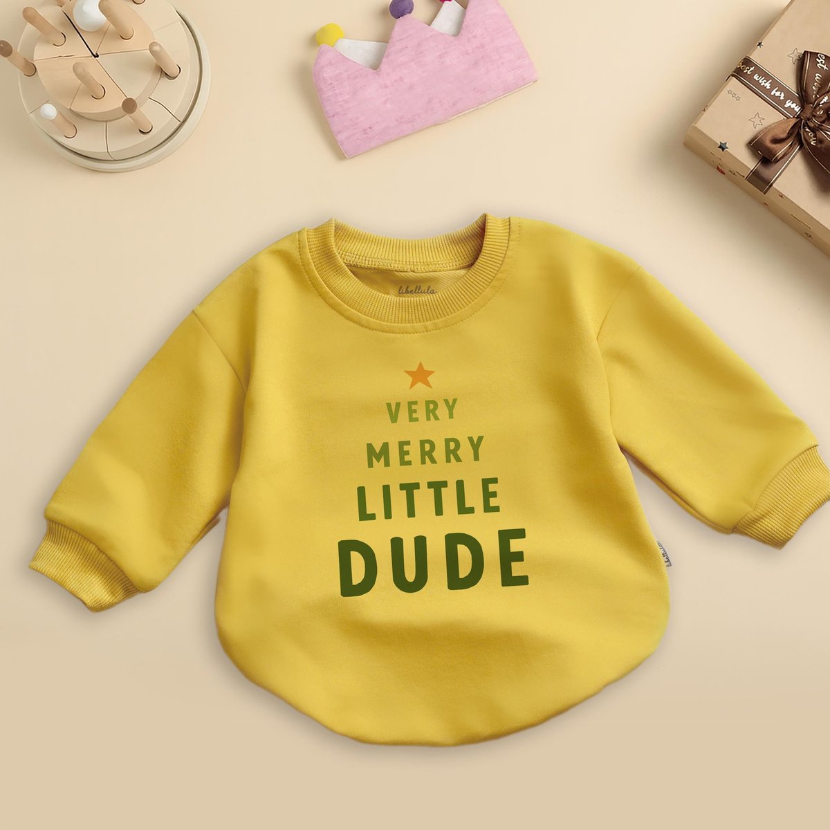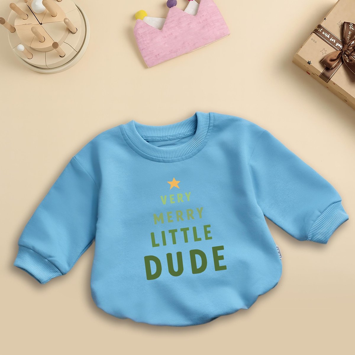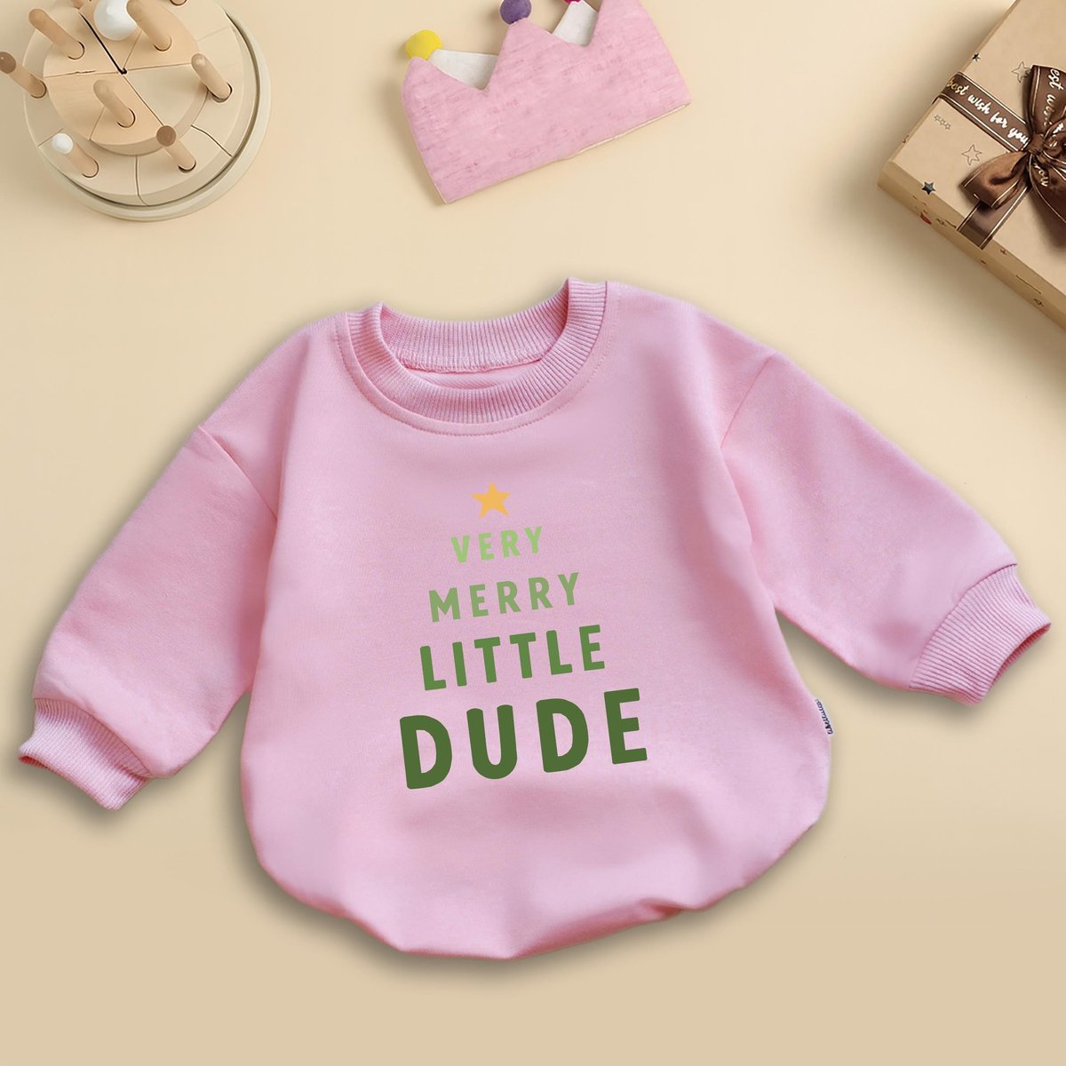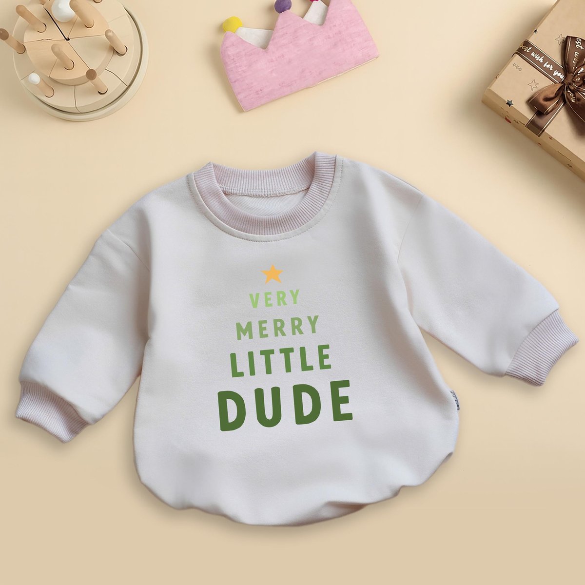 Merry Little Dude Romper Sweatshirt Baby’s First Christmas Outfit Holiday Baby Clothes Festive Baby 436