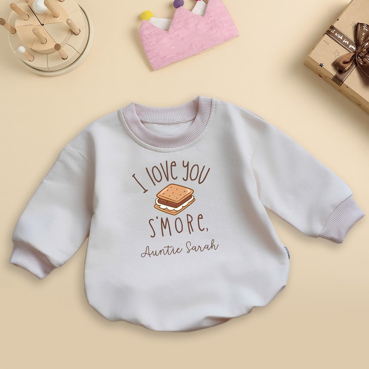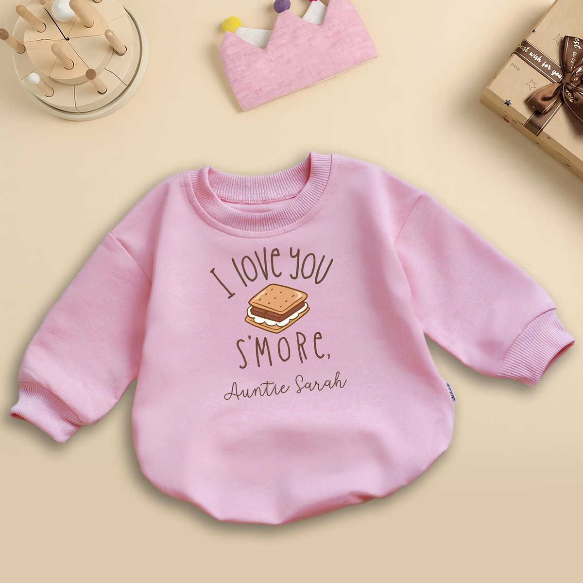 Personalized I Love You S’more Auntie Romper Custom Aunt Outfit Funny Aunt Name Baby Clothes Aunt B 436