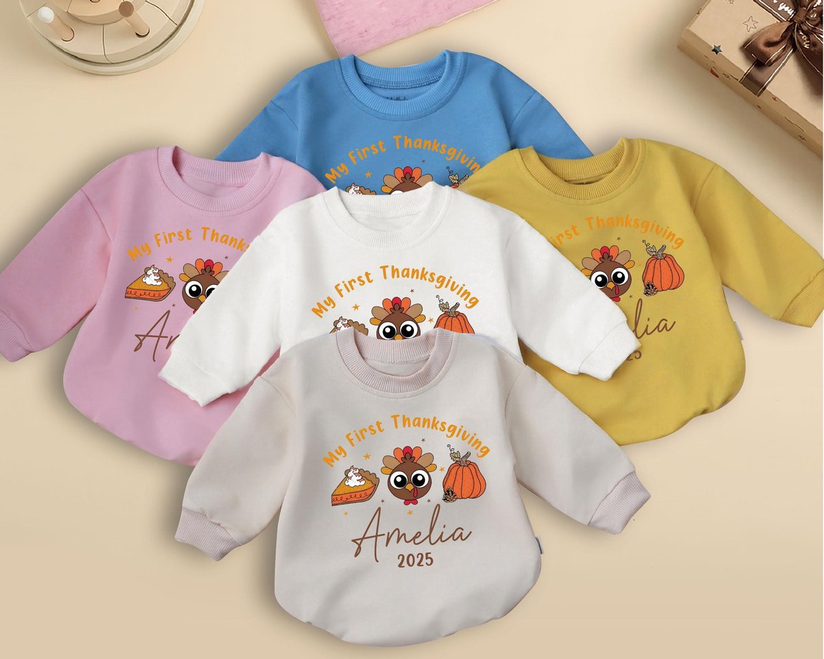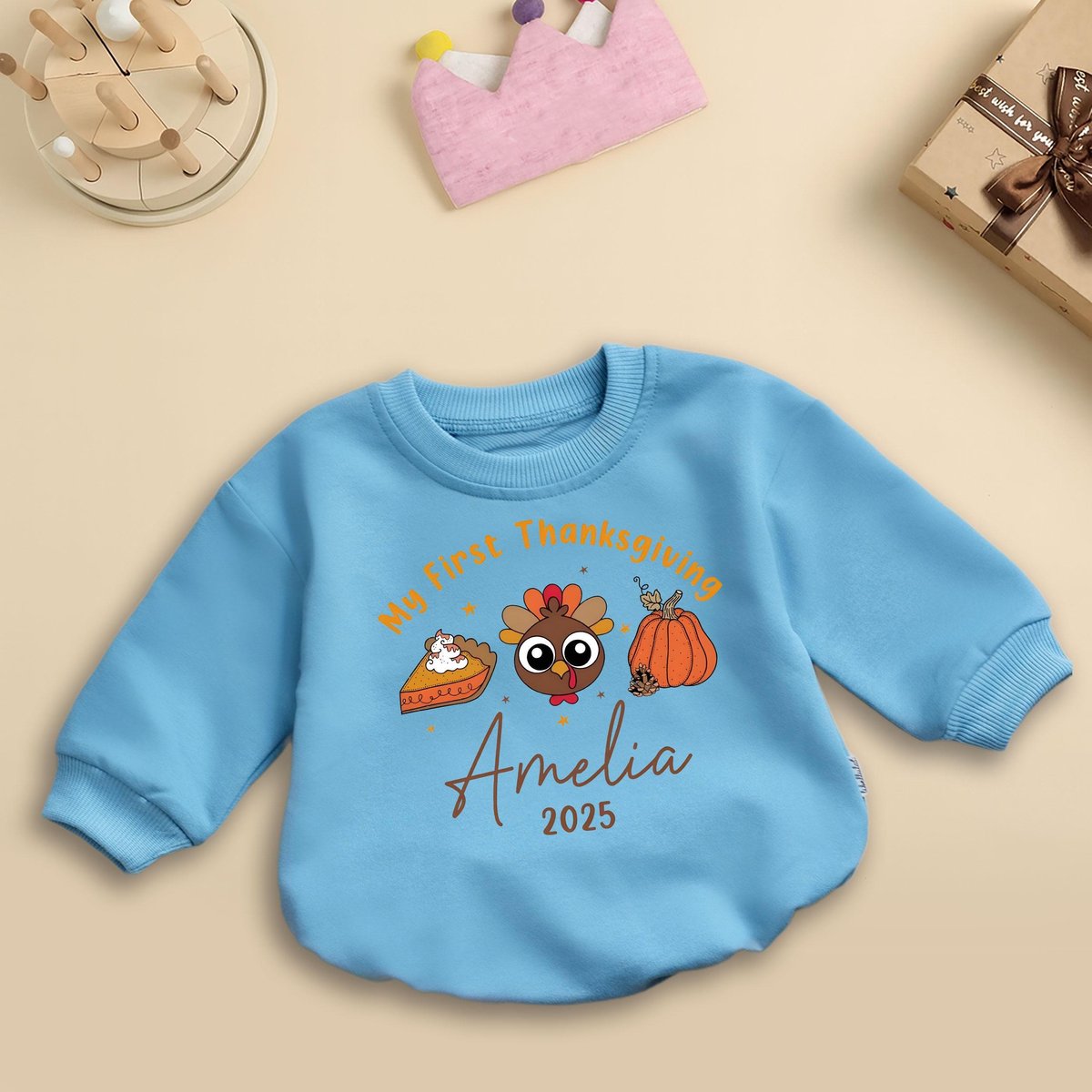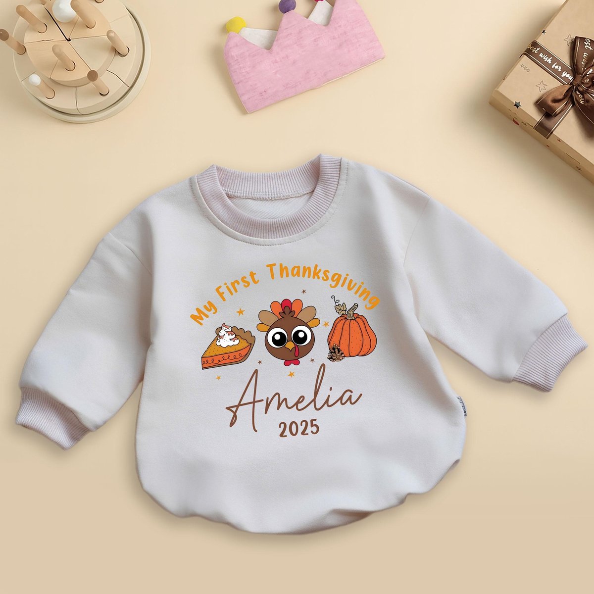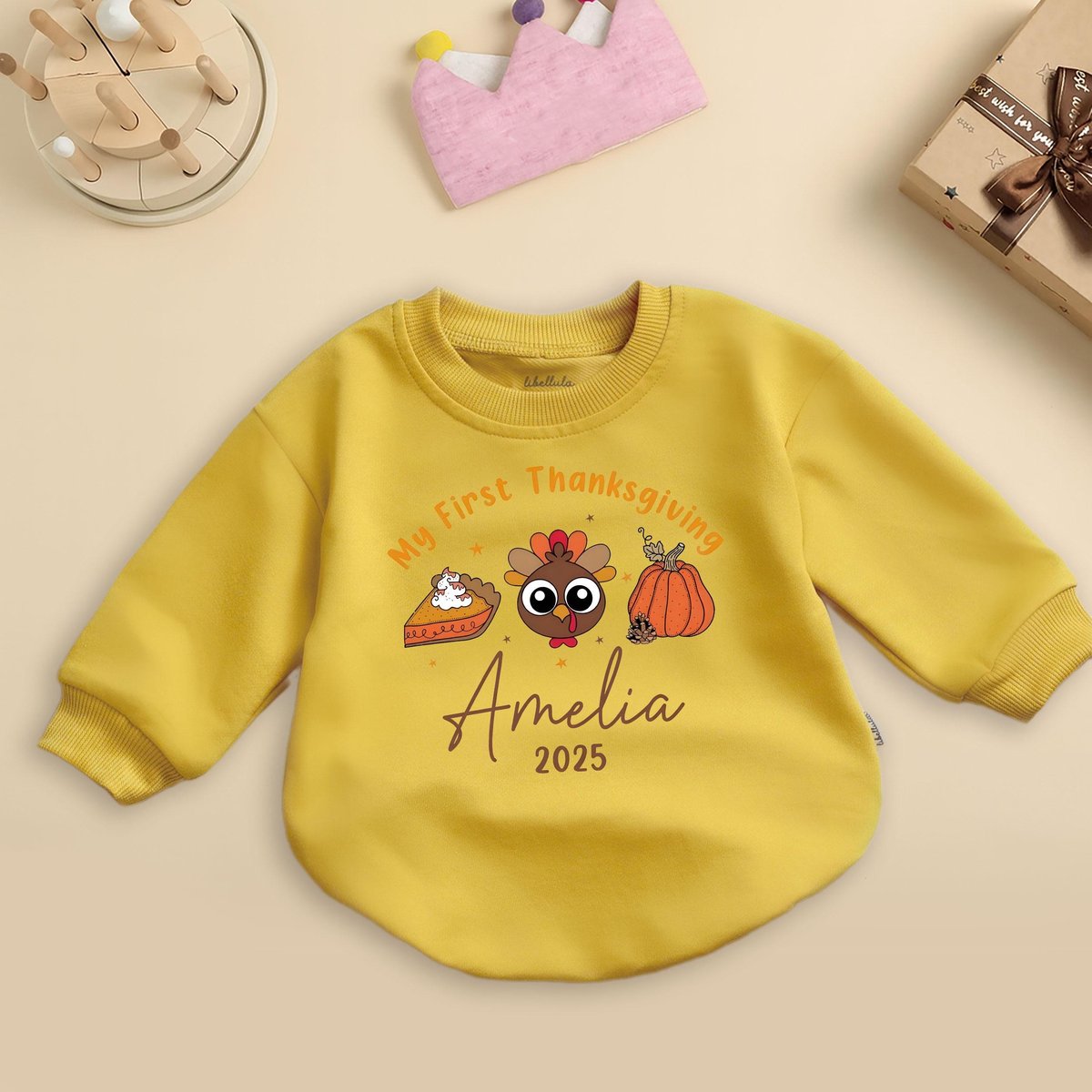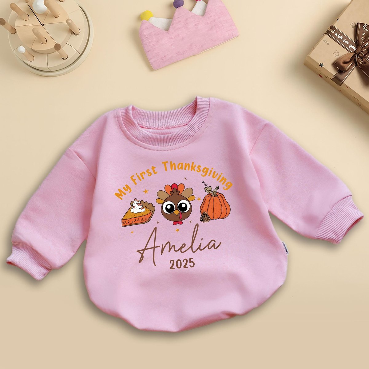 Personalized My First Thanksgiving Bubble Romper Custom Name Turkey Outfit Fall Infant Bodysuit 1st 435