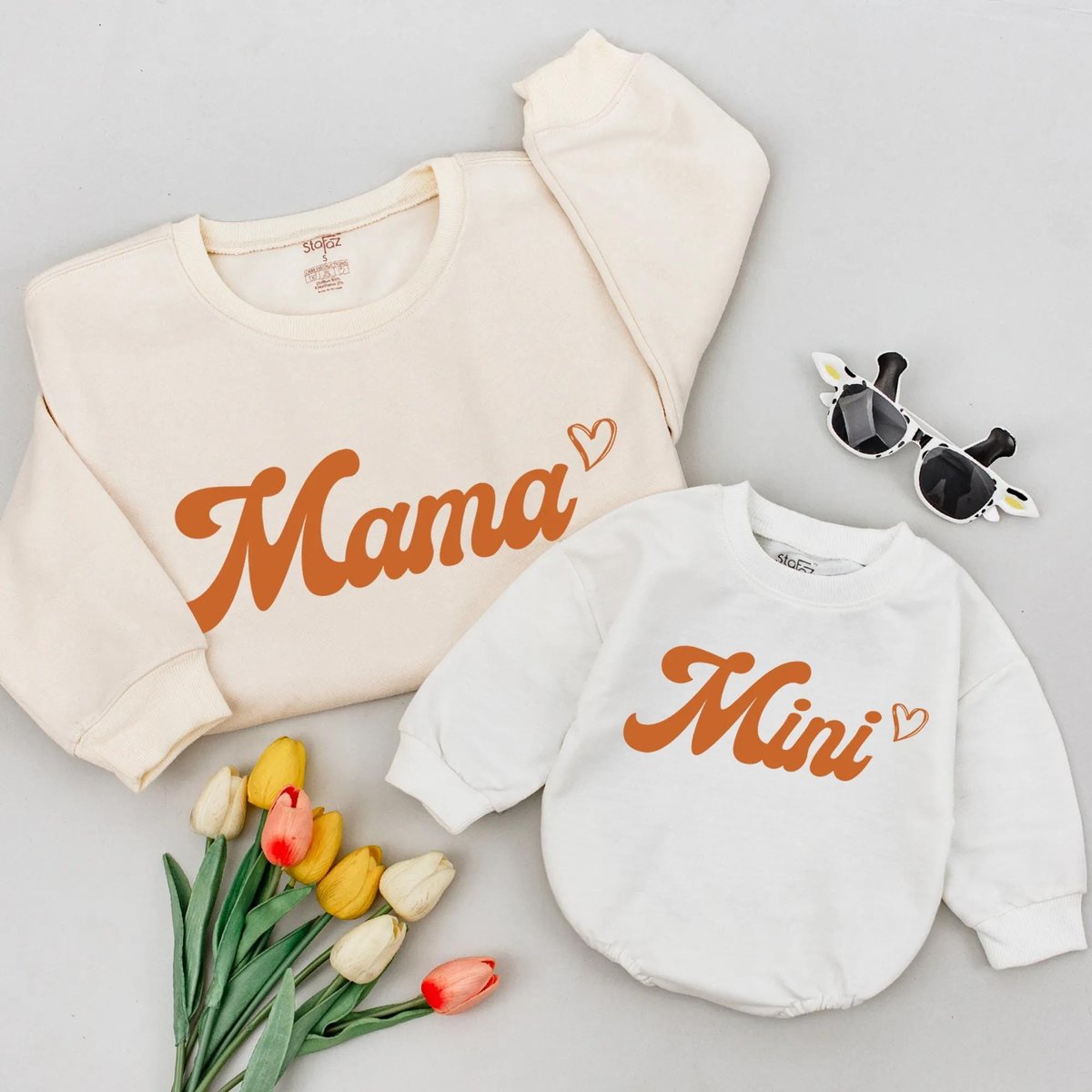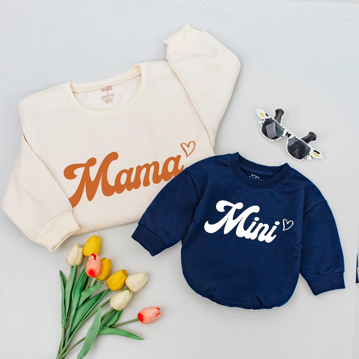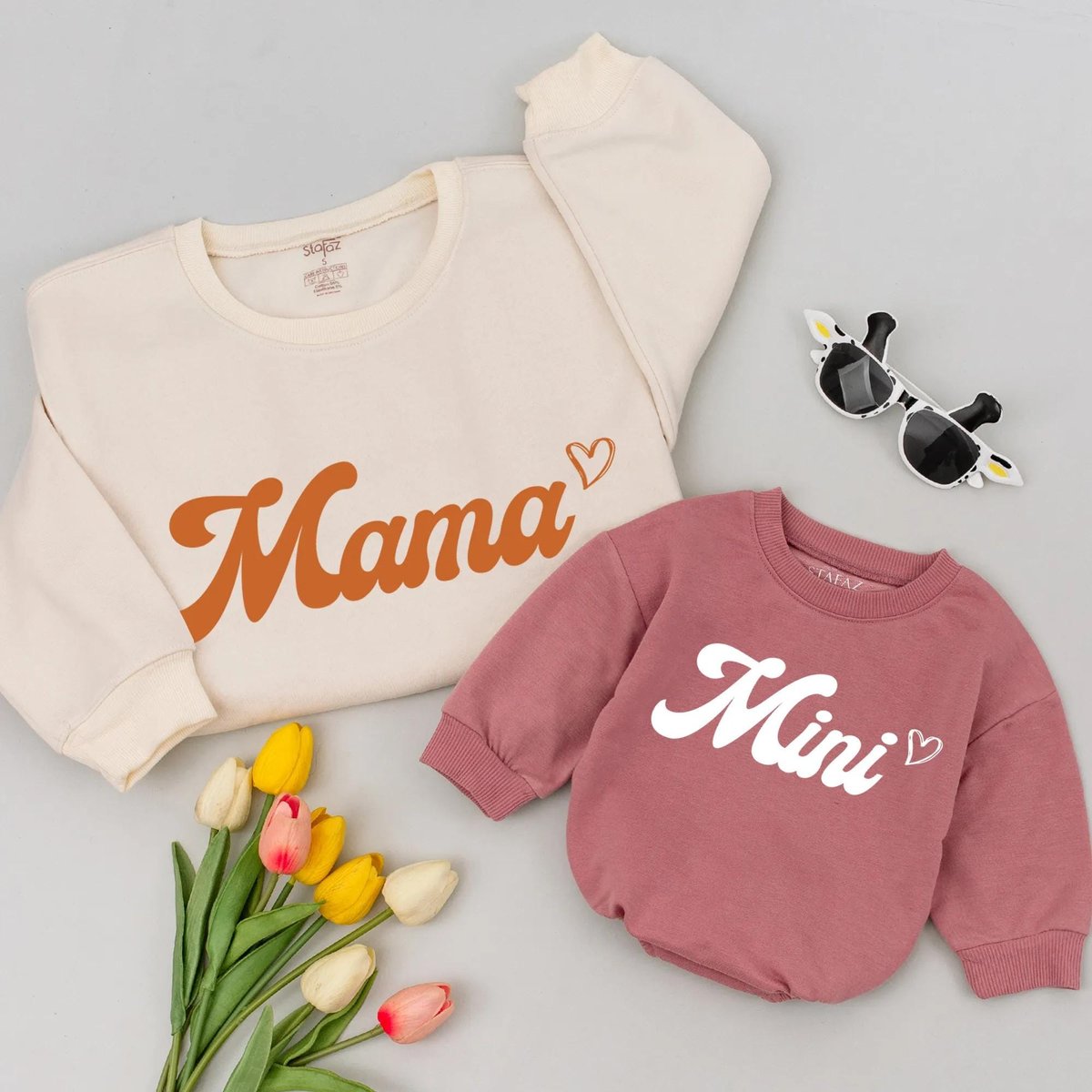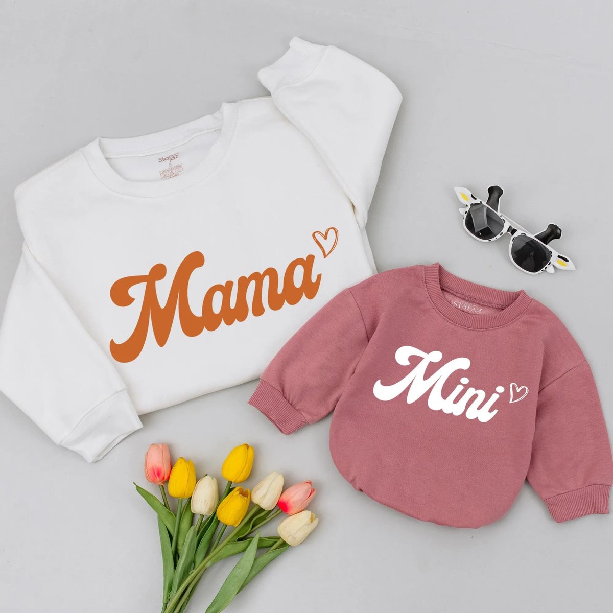 Mama And Mini Sweatshirt Mom and Baby Matching Family Shirt Baby Girl Romper Gift Custom Mom and Me 437