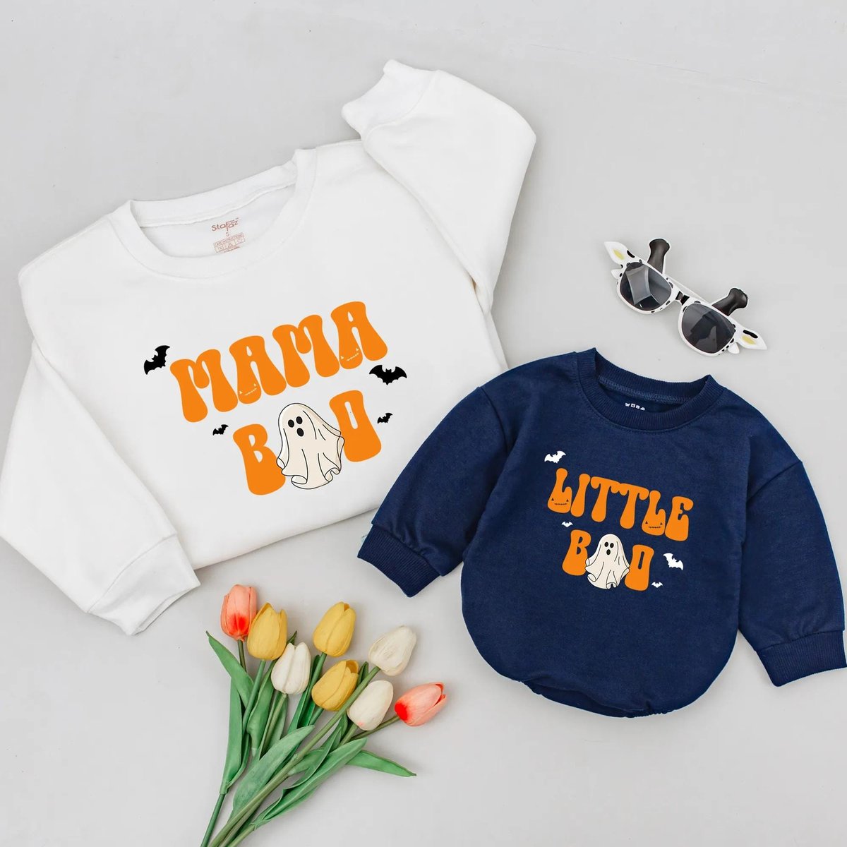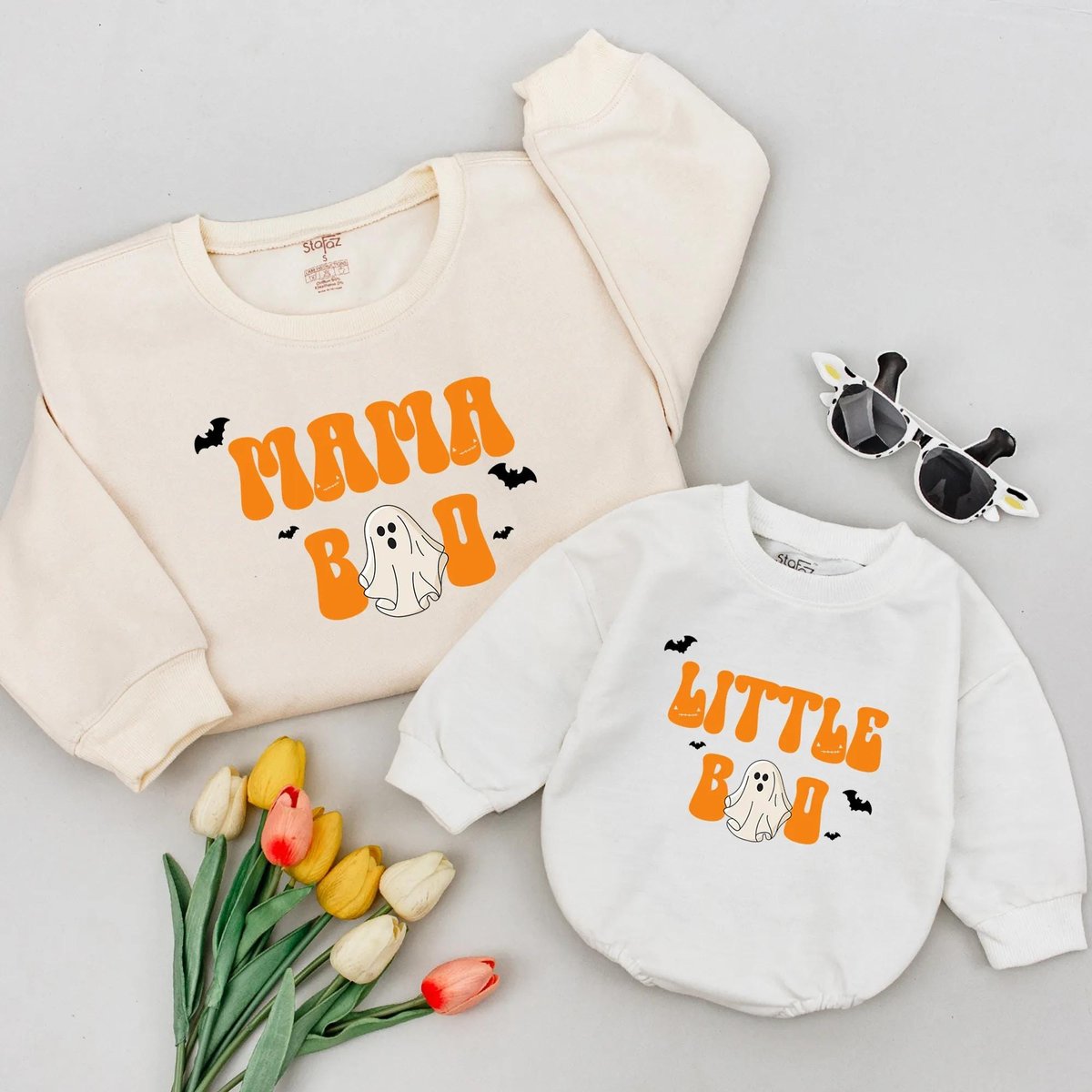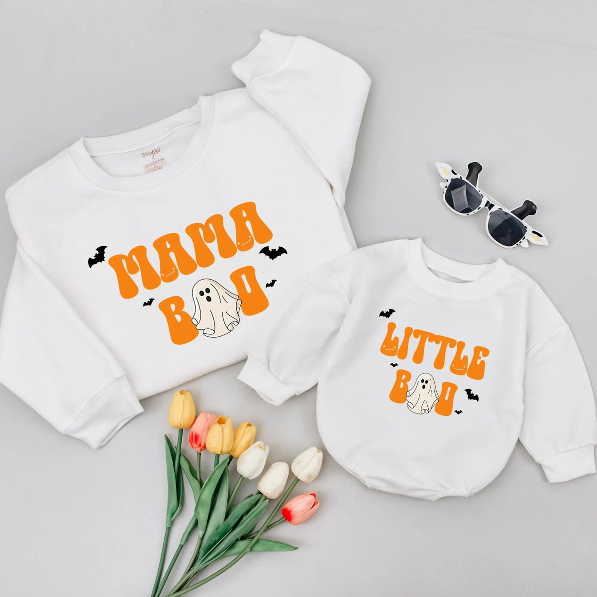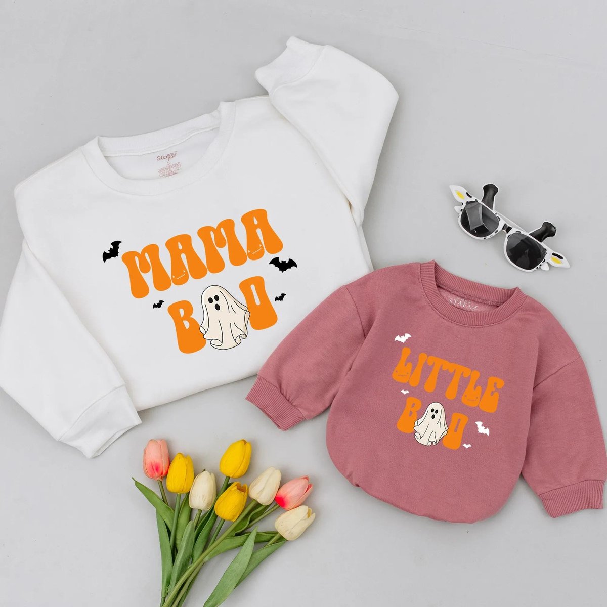 Mama Boo and Little Boo Fall Sweatshirt Mom And Me Halloween Sweatshirt Little Boo Baby Bubble Rompe 436