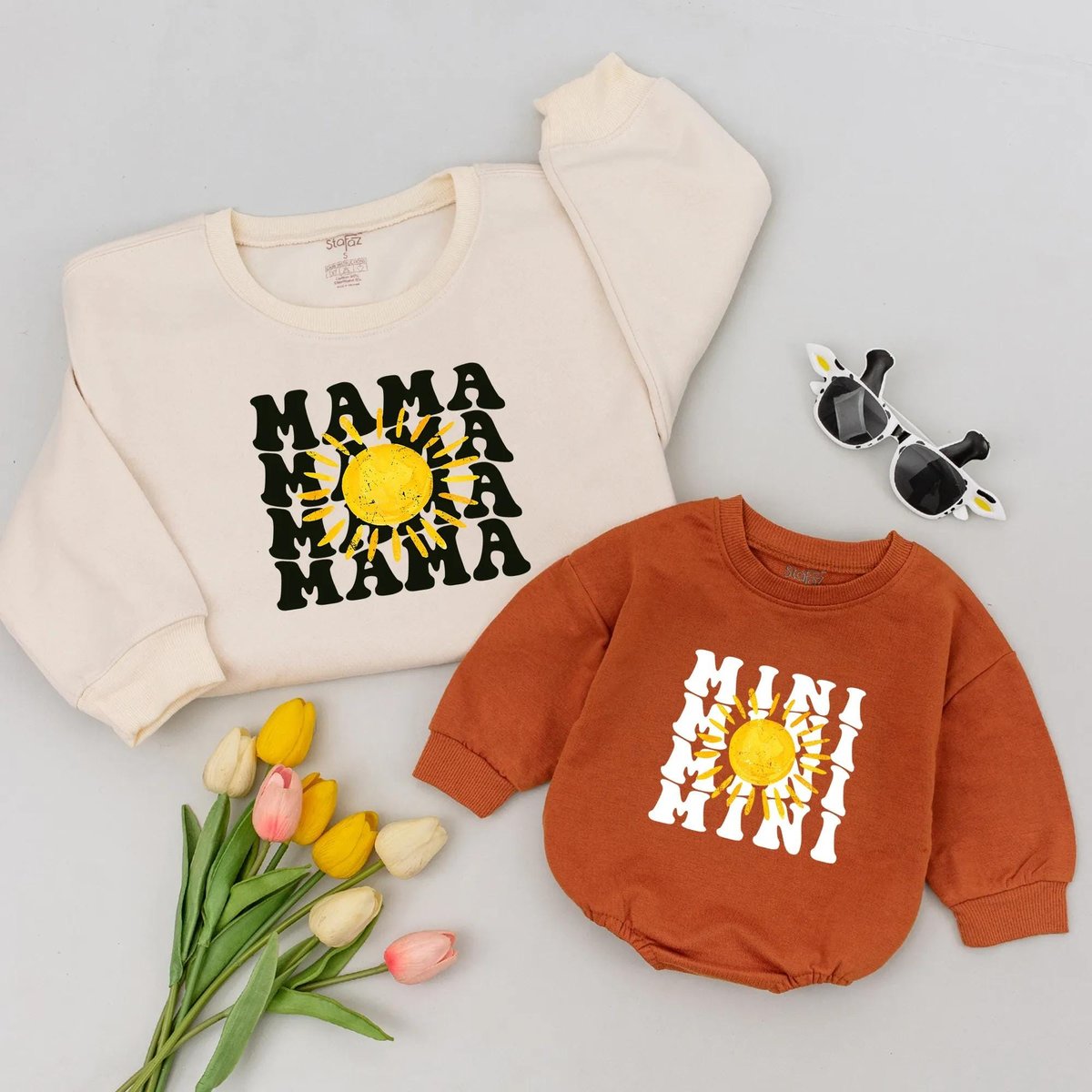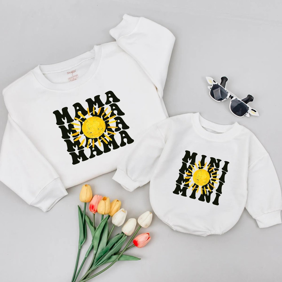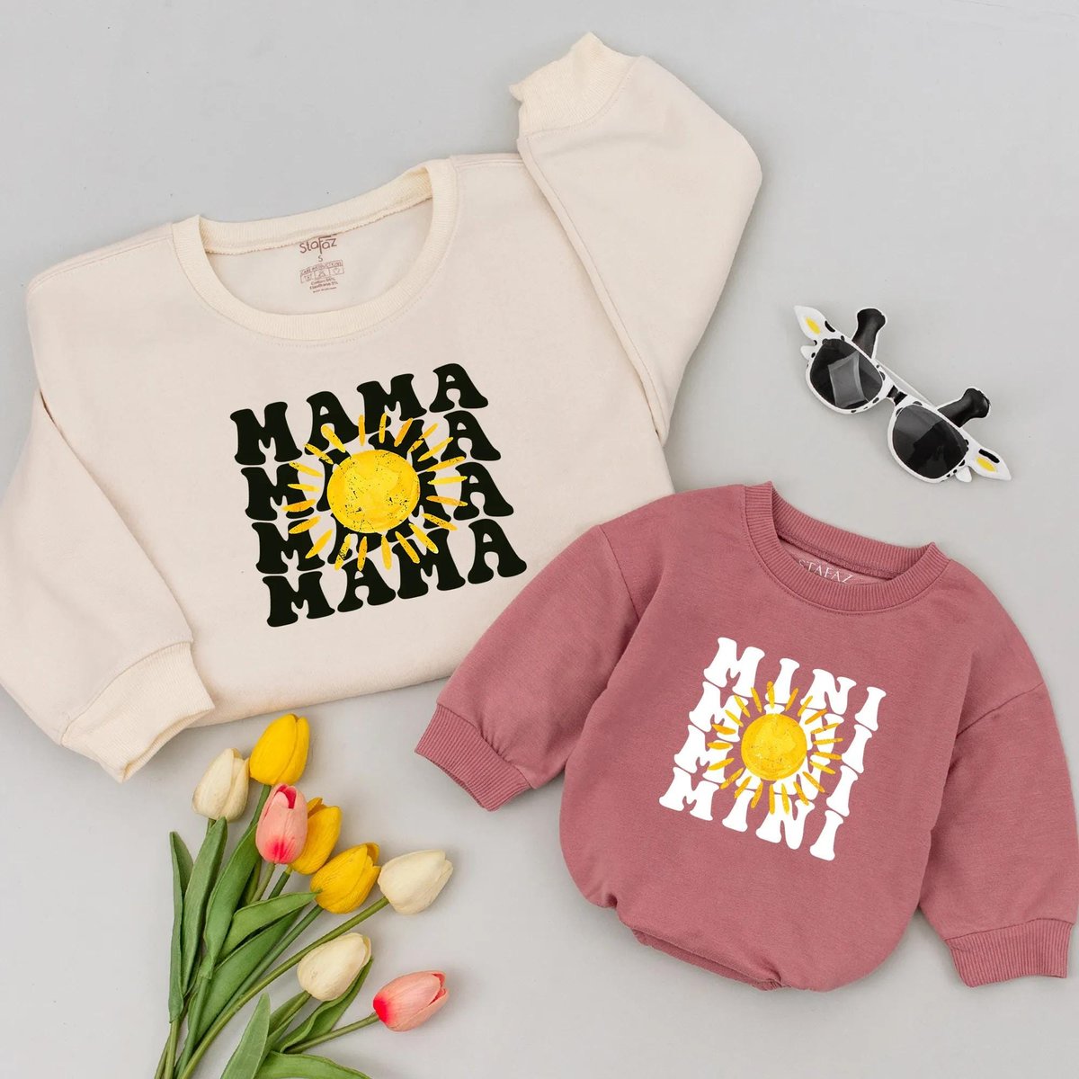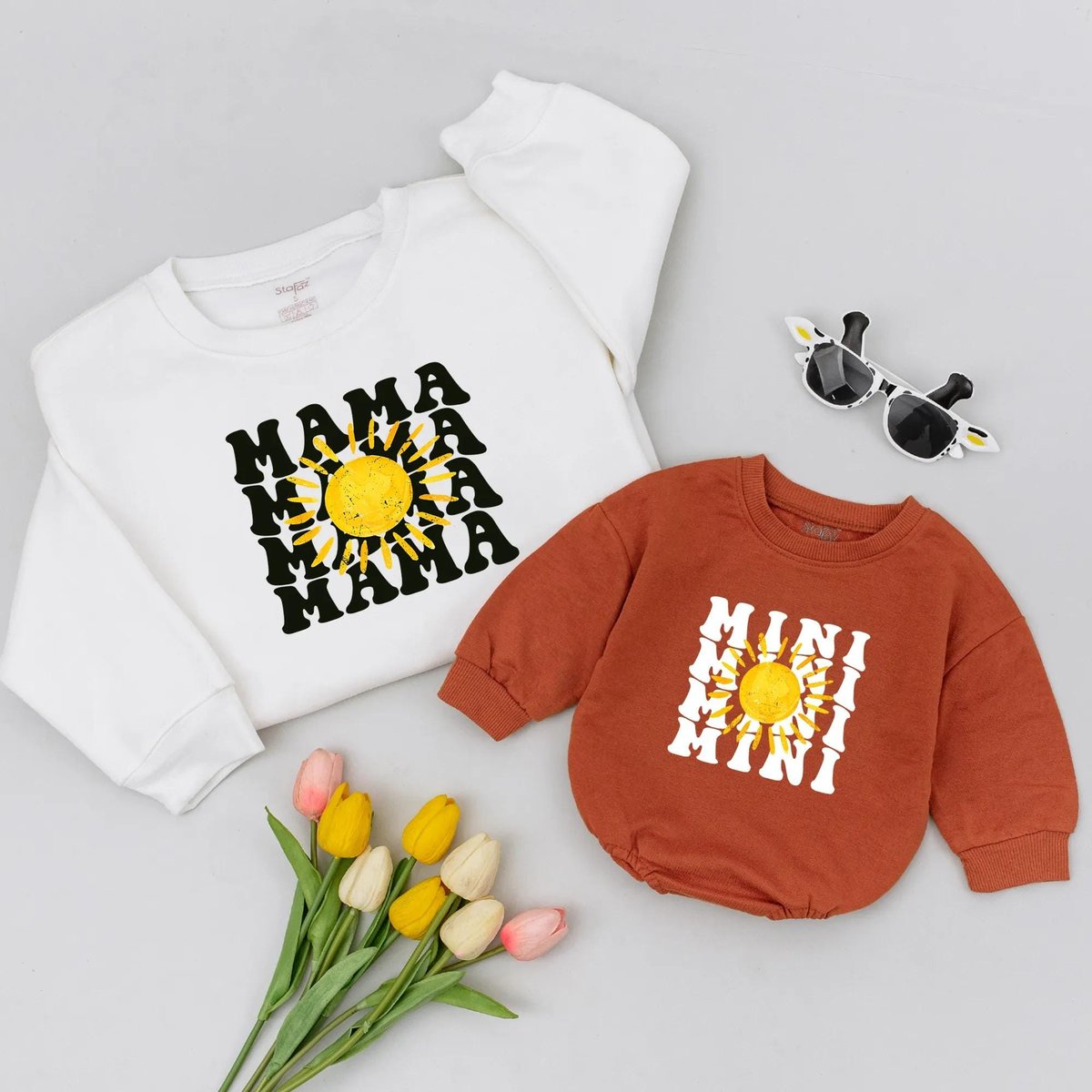 Mommy and Me Sun Sweatshirt Set Retro Matching Mother Daughter Shirts Cute Sunshine Outfits Mothers 436