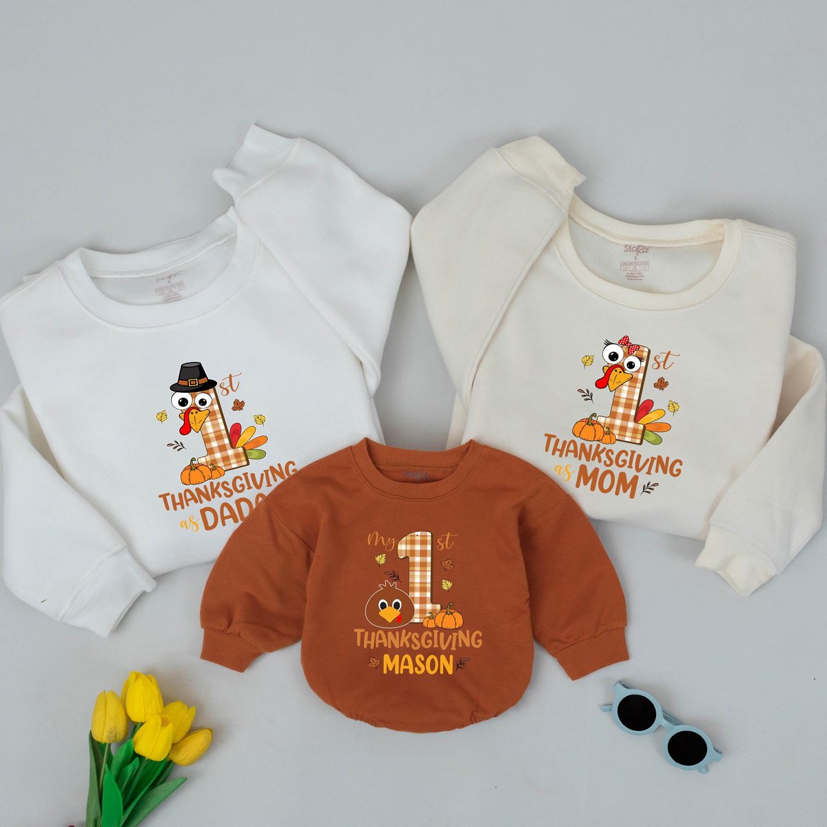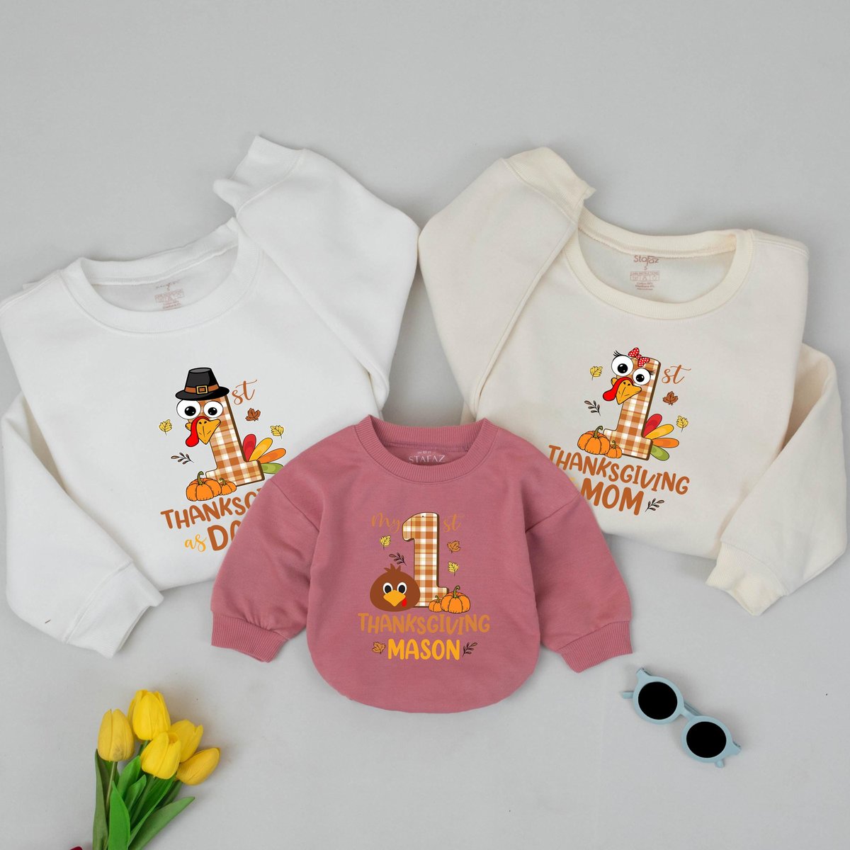 Personalized Thanksgiving Family Matching Sweatshirt My First Thanksgiving Baby Shirts Mom Dad Kids 436