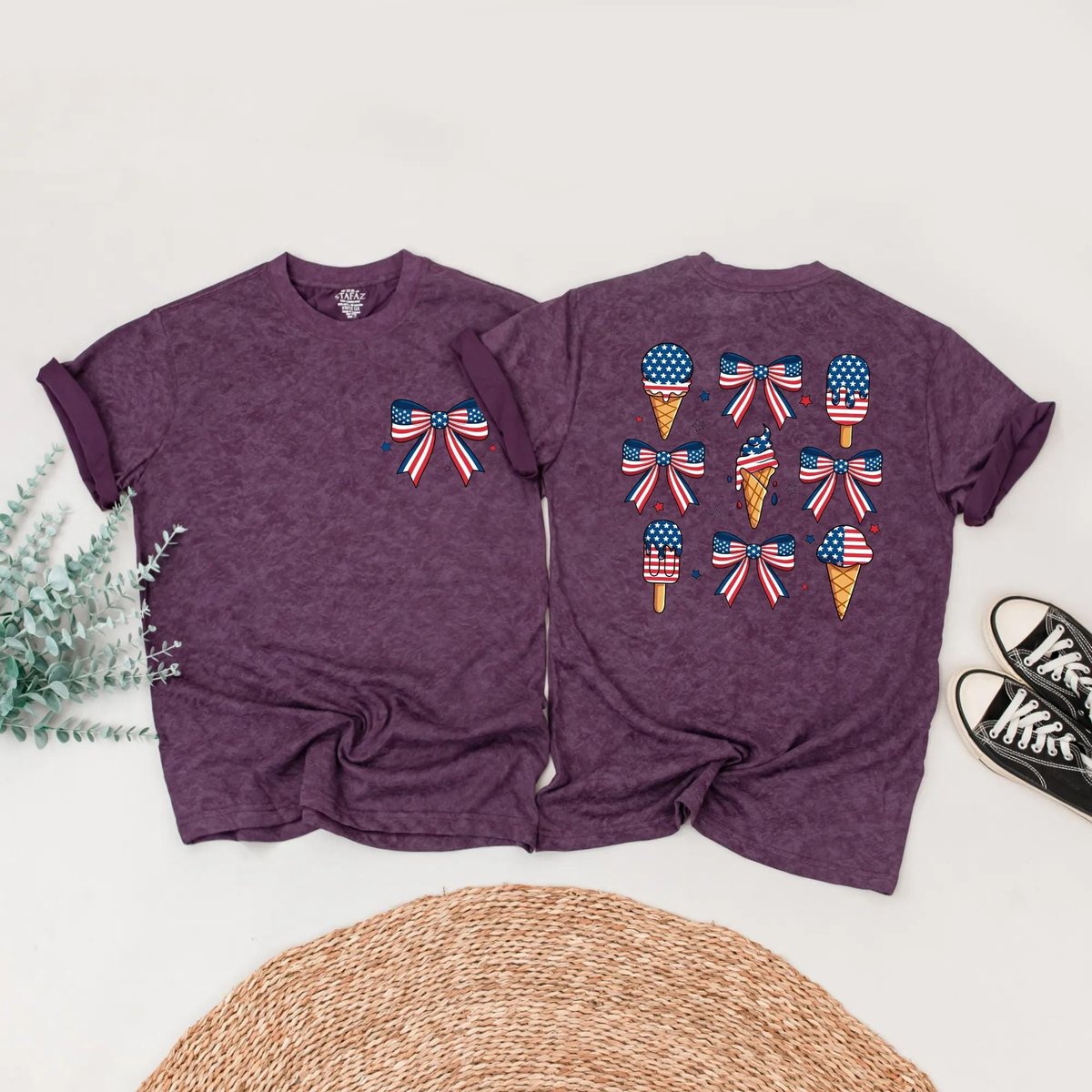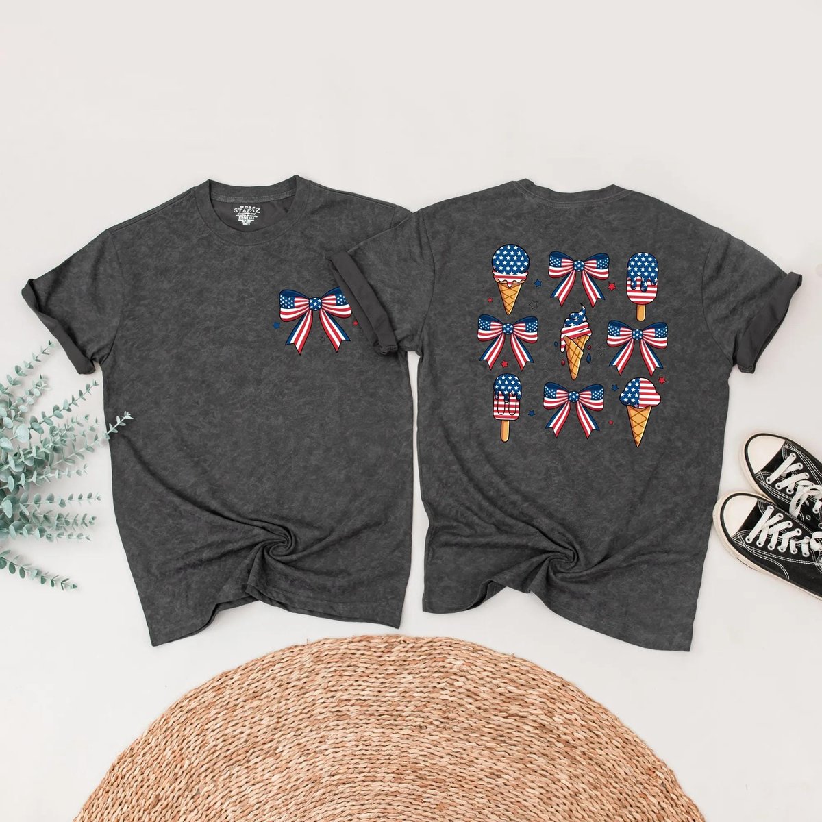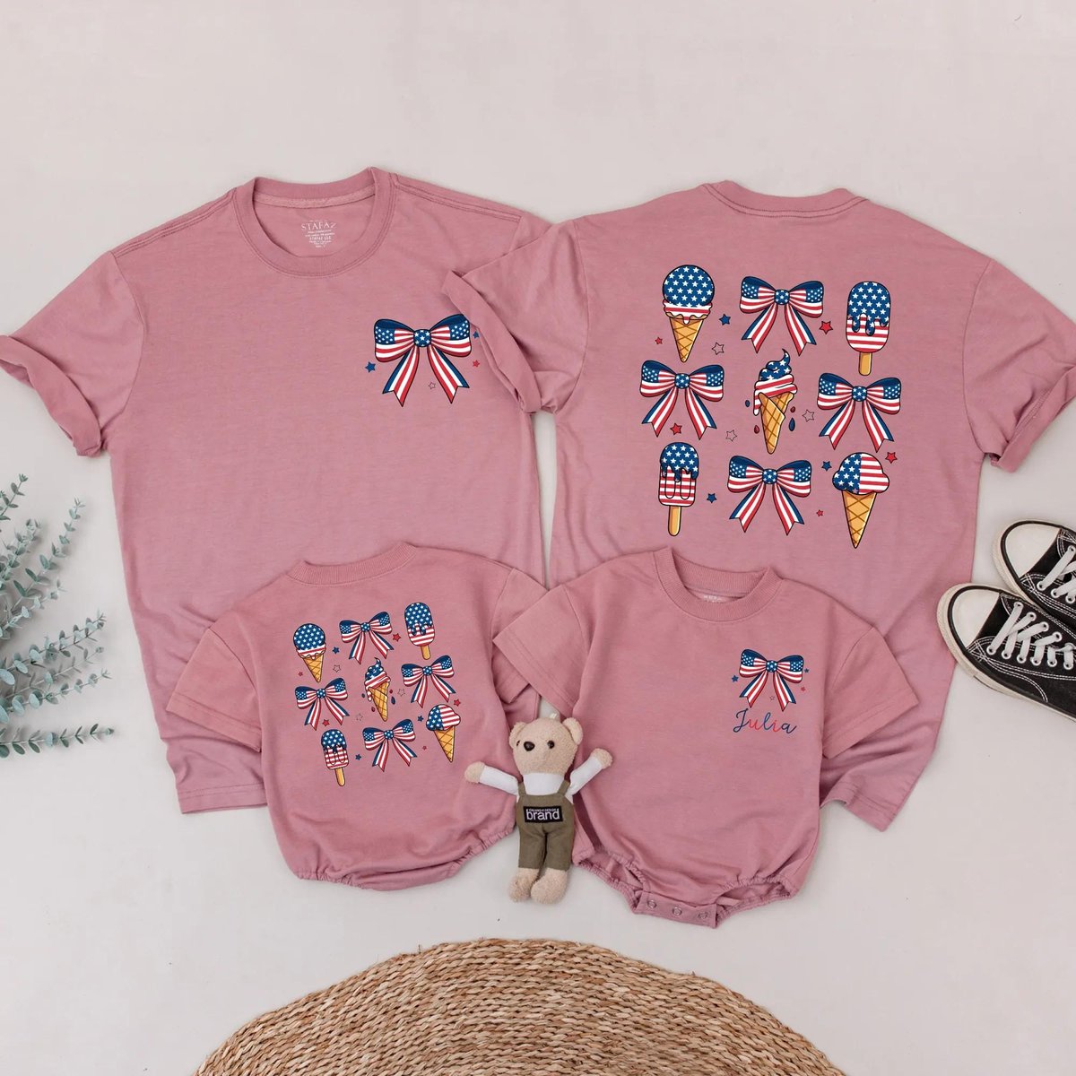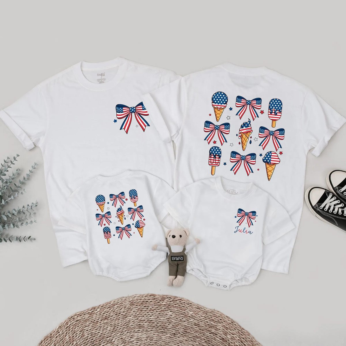 4th of July Matching Family Shirts Patriotic USA Ice Cream Bow Romper Mommy and Me July 4th Tees Cus 430