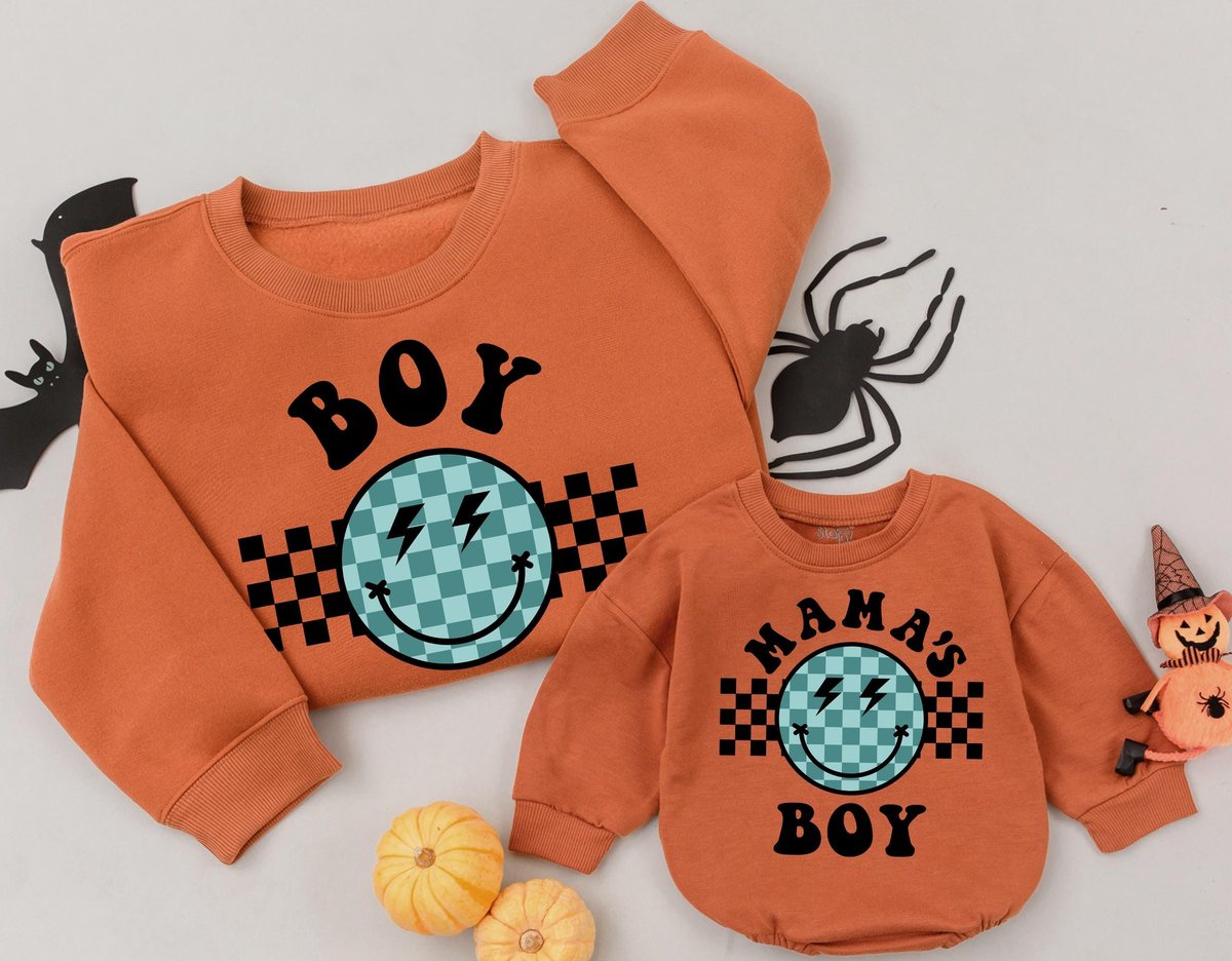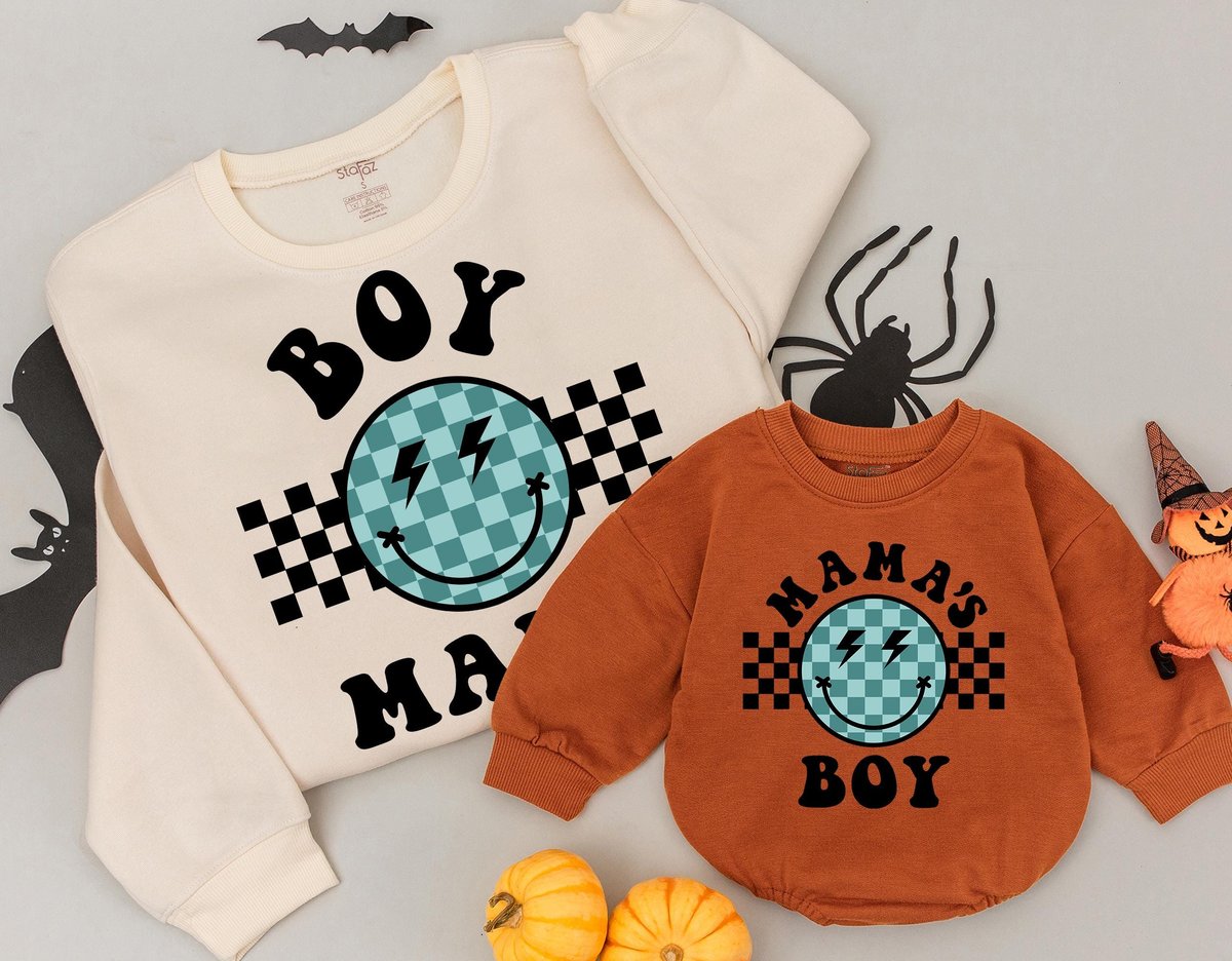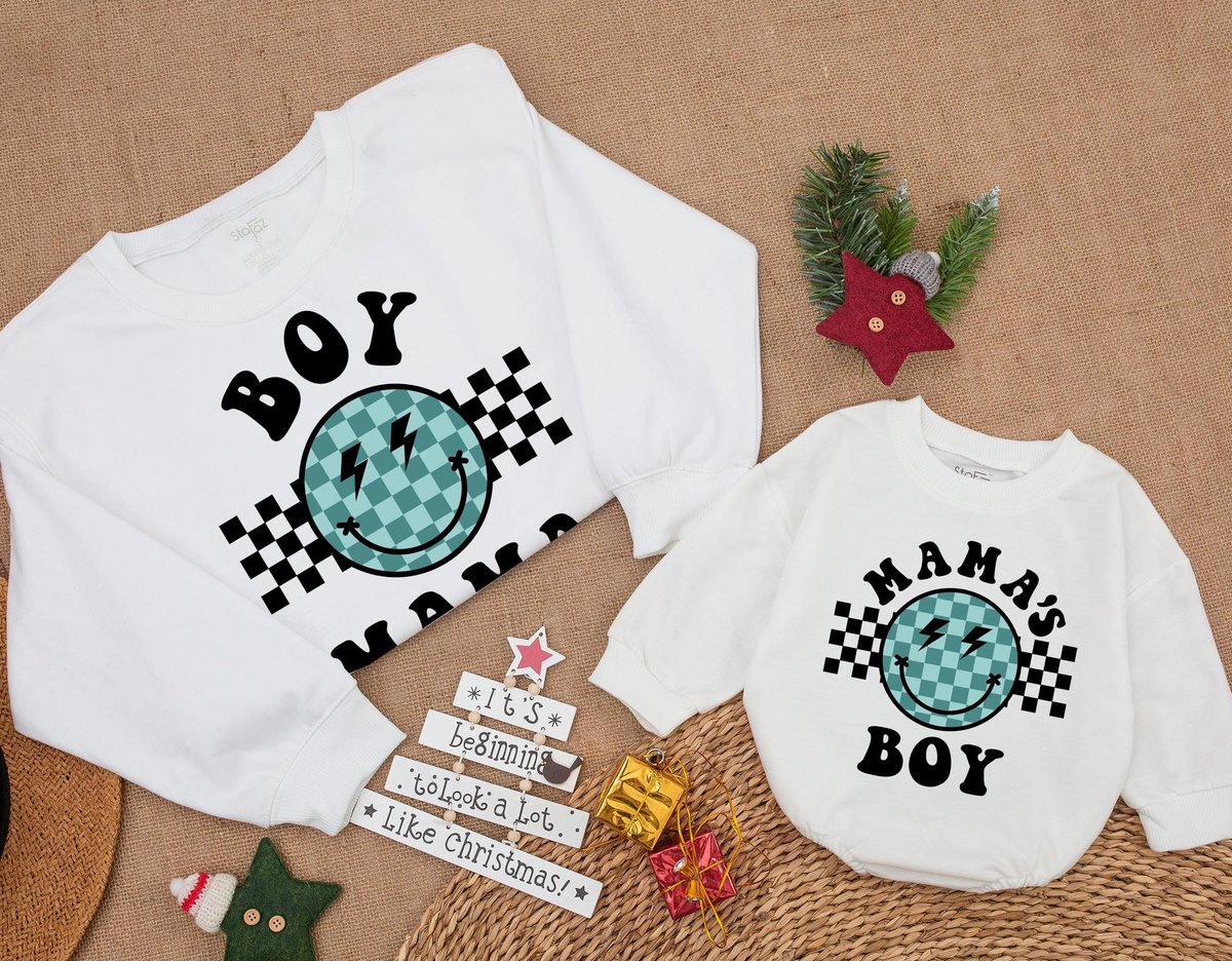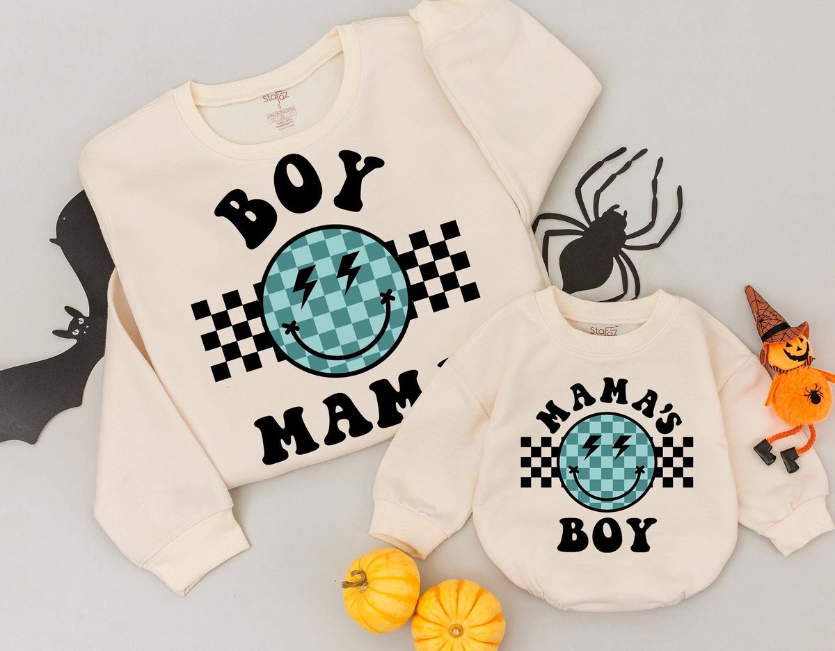 Custom boy mama and mama’s boy smiley Sweatshirt Baby romper kids Retro outfit Mama Sweatshirt Gift 182