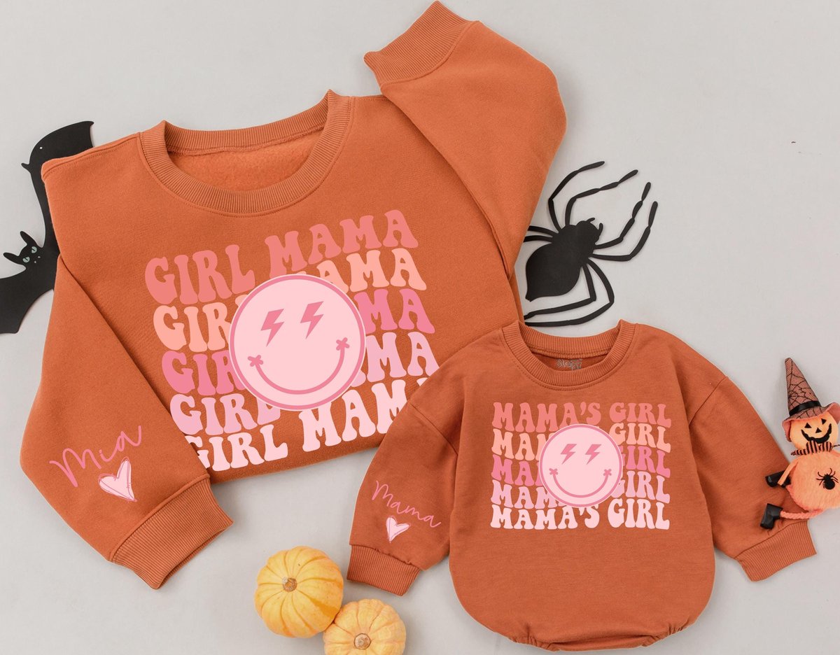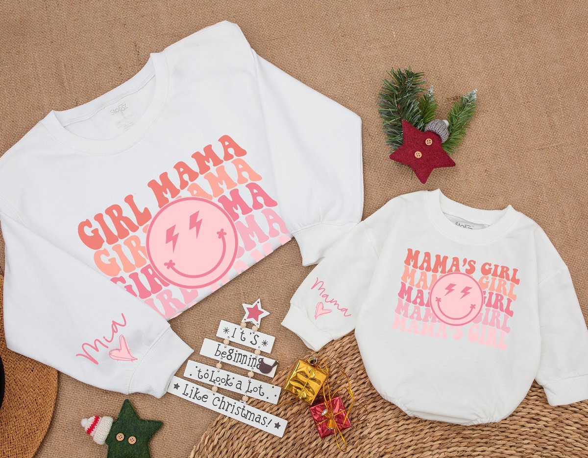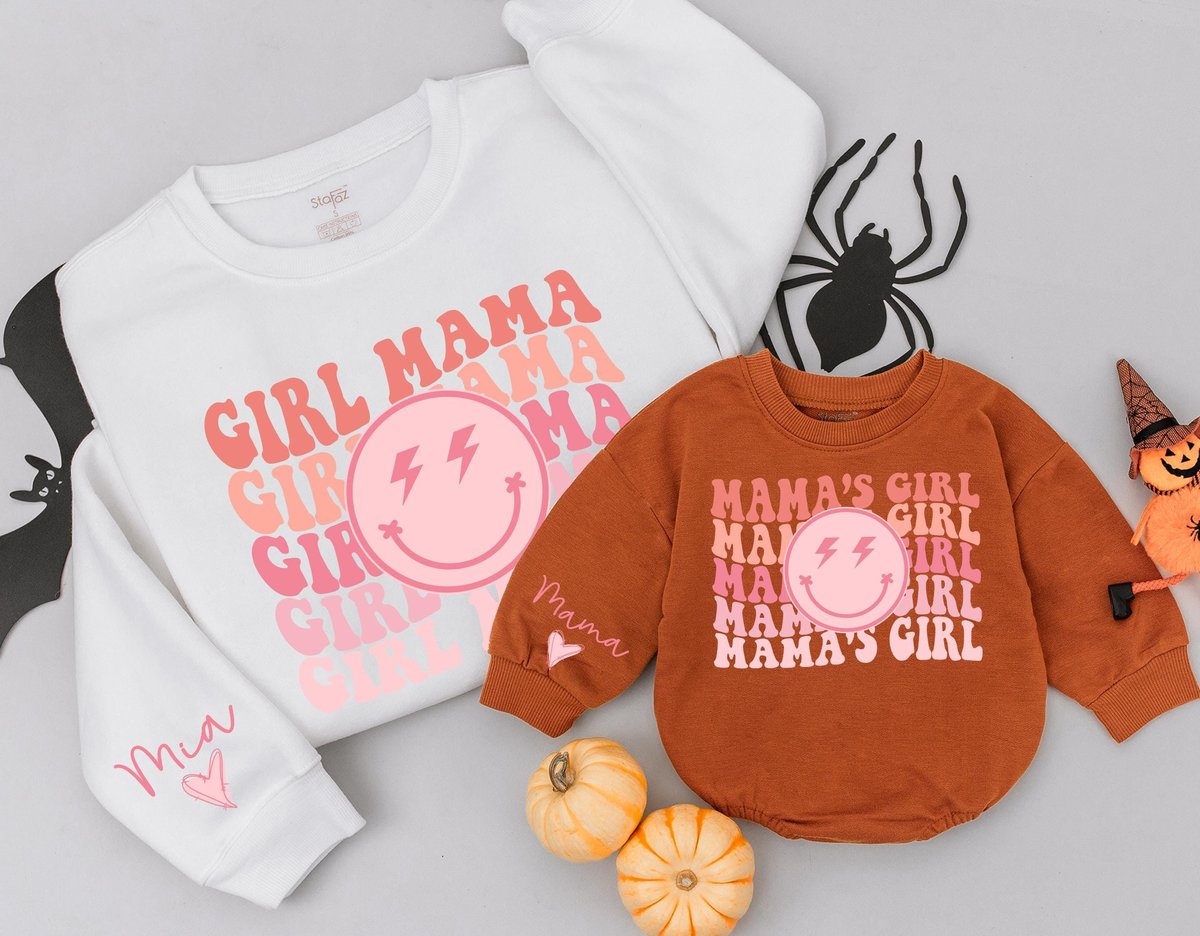 Custom Girl mama and mama’s girl Sweatshirt Baby romper kid Smiley face Mama Sweatshirt Gift for He 182