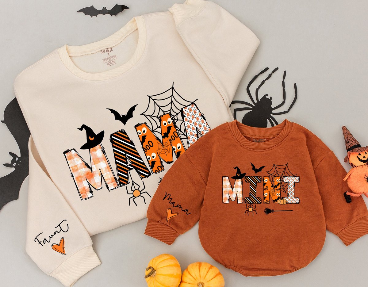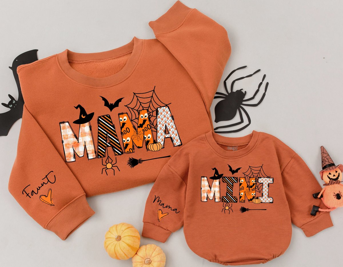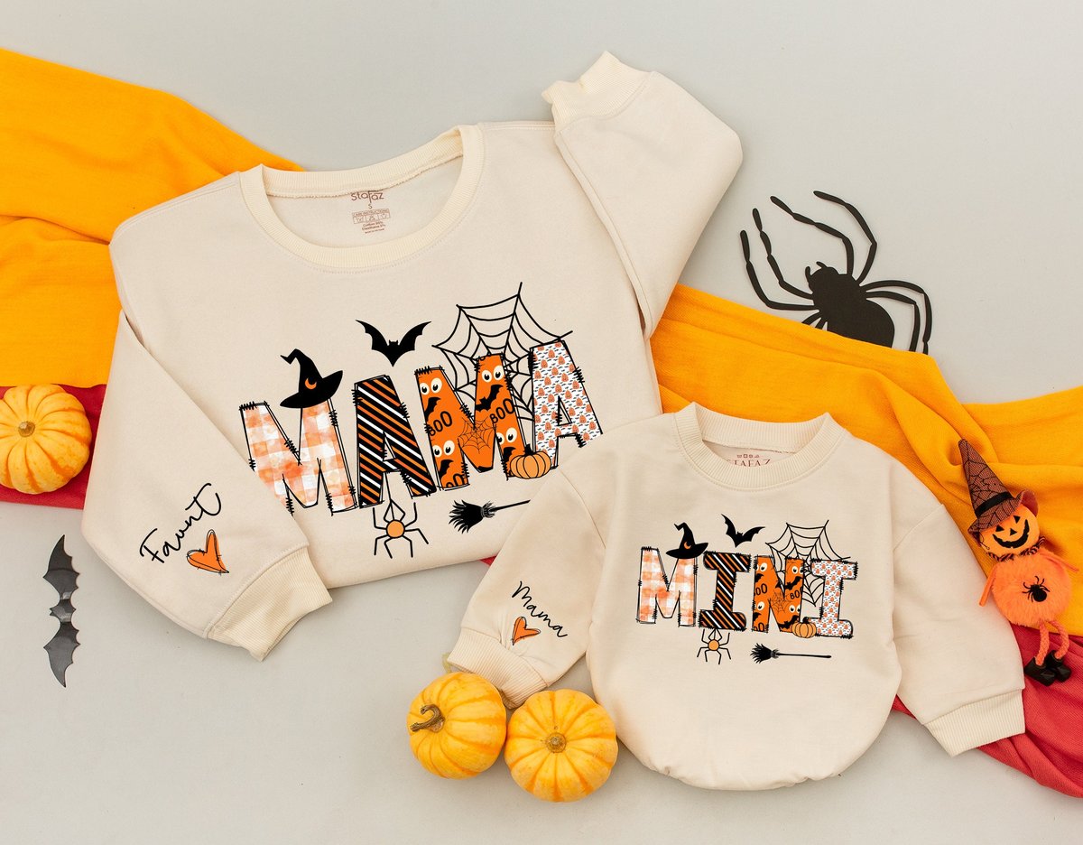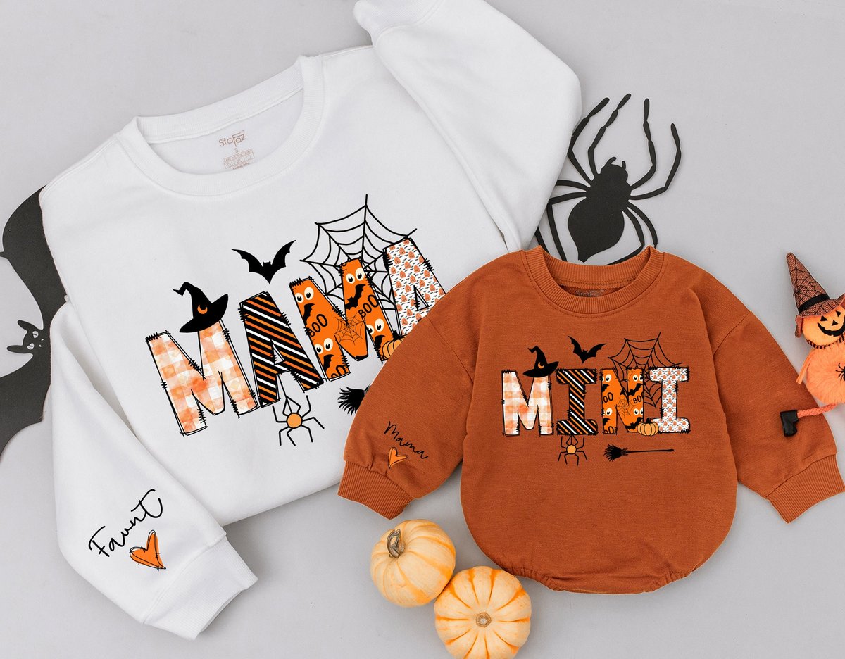 Custom Mama and Mini Halloween Sweatshirts Baby romper gift Matching Family Outfits Best Gifts for H 174