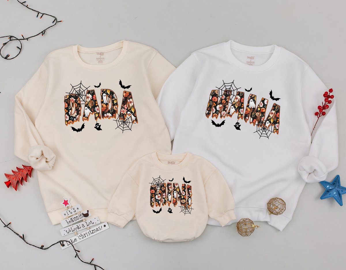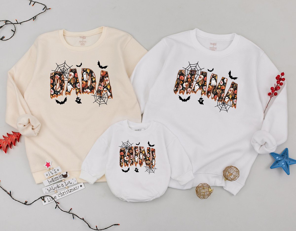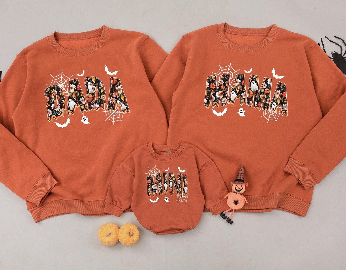 Halloween Family Matching Sweatshirts Mommy and Me Fall Sweaters Retro Pumpkin Season Outfits Babys 437