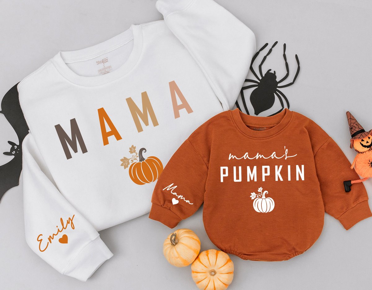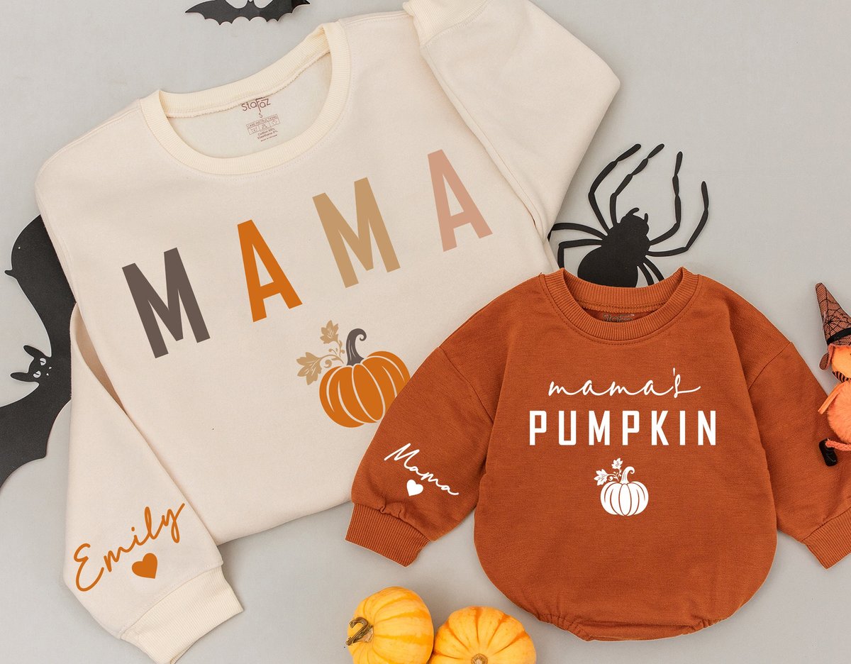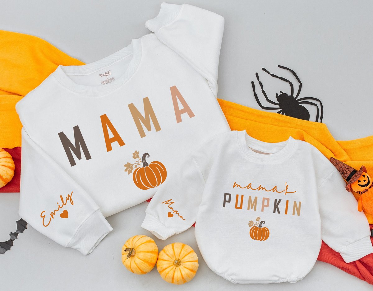 Mama and Mamas Pumpkin Fall Sweatshirts Mommy and Me Sweaters Mom Baby Outfit Matching Outfits Kids 174