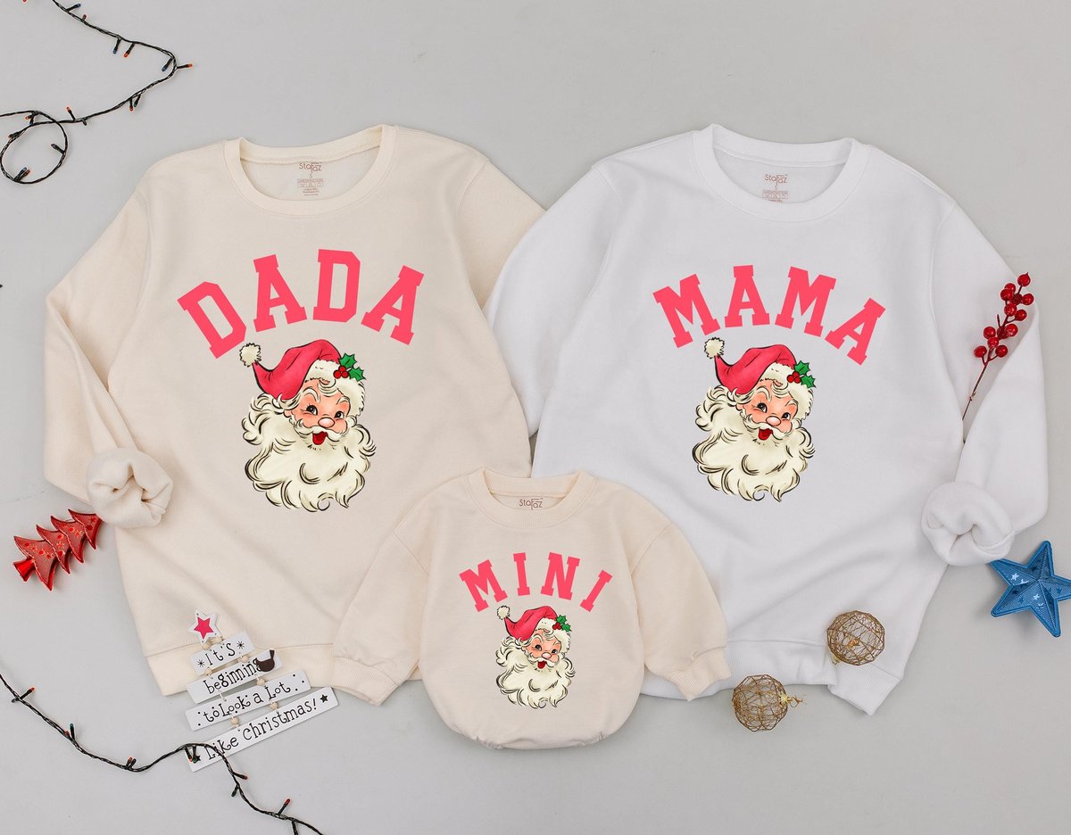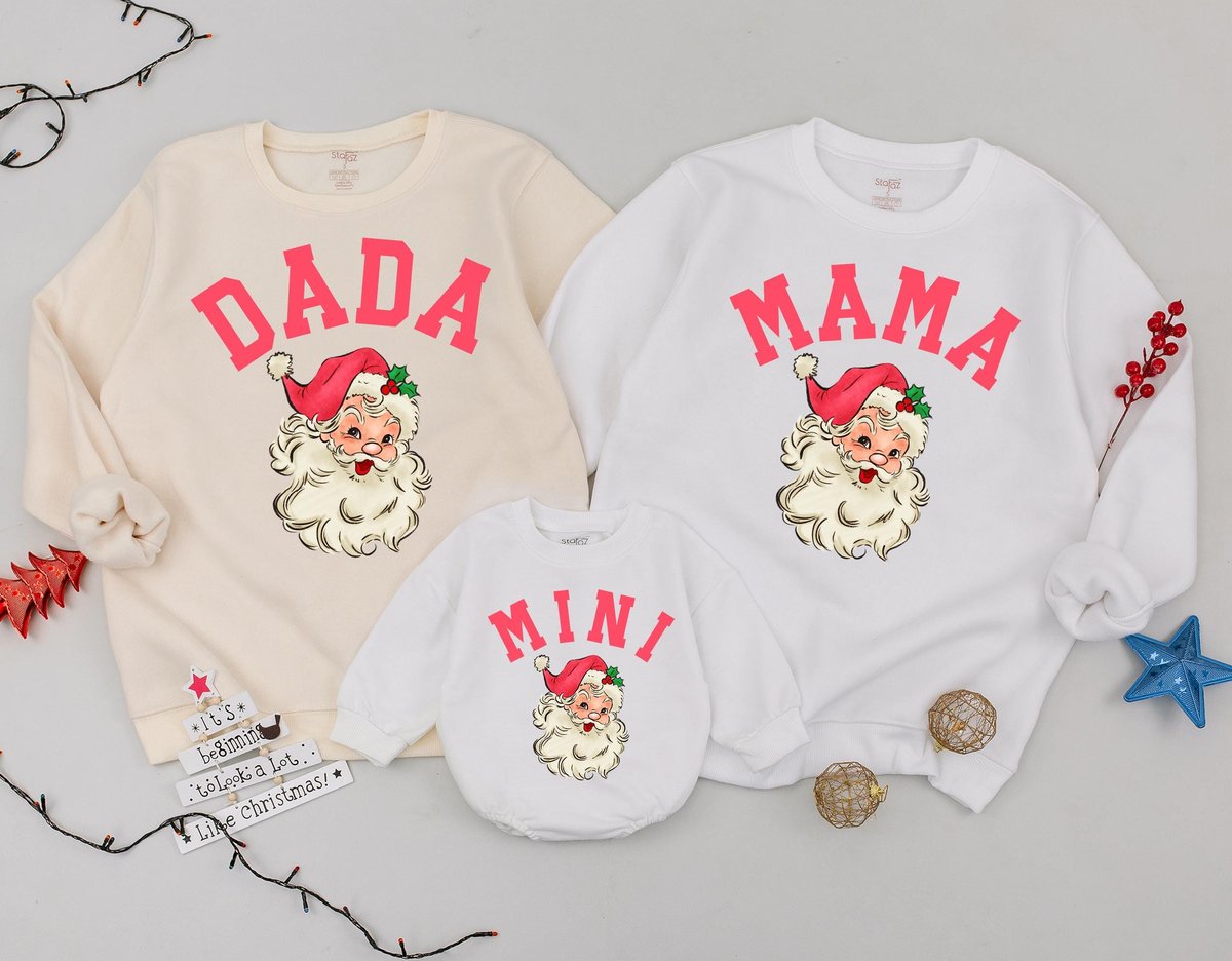 Mama Dada Mini Christmas Sweatshirts Retro Pink Santa Mom Toddler Mother Daughter Outfit Toddler Chr 181
