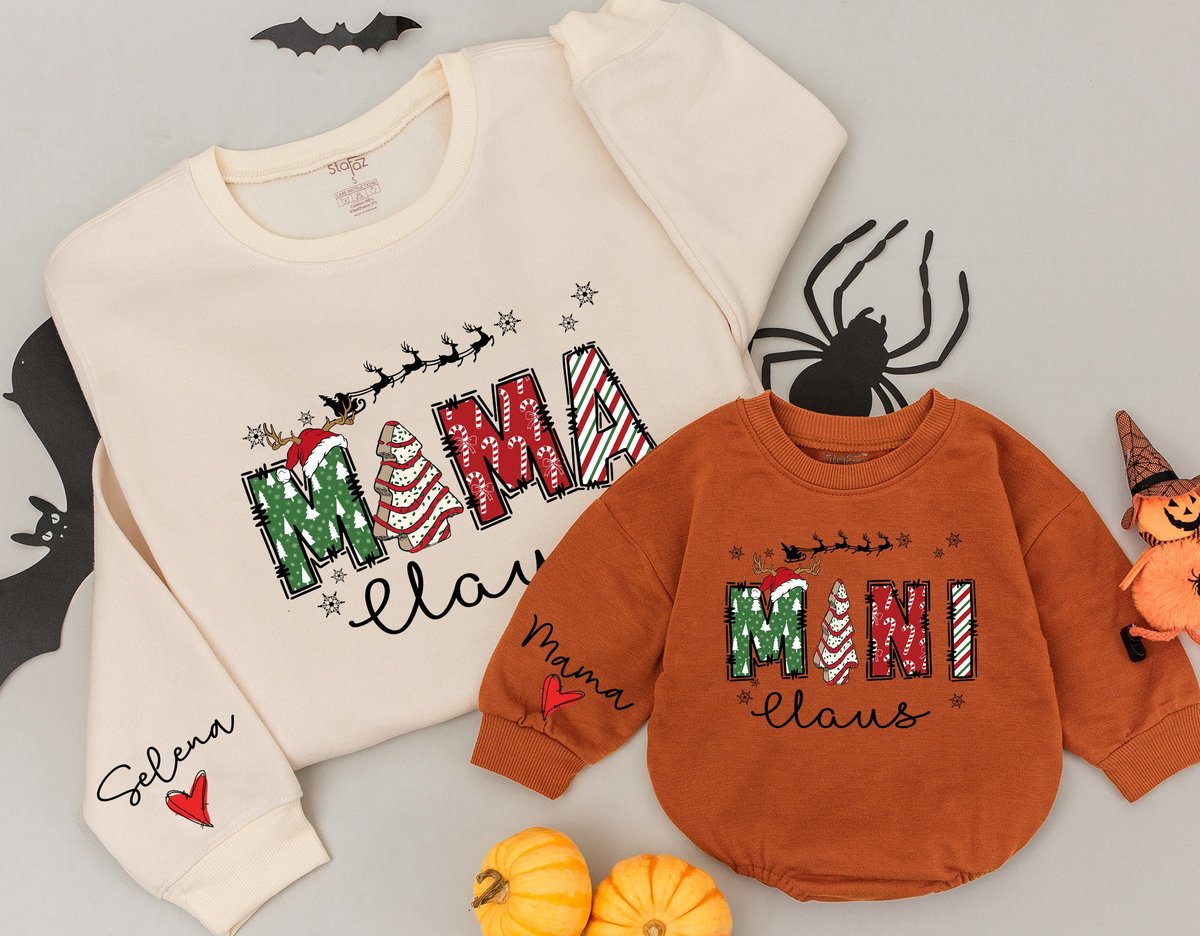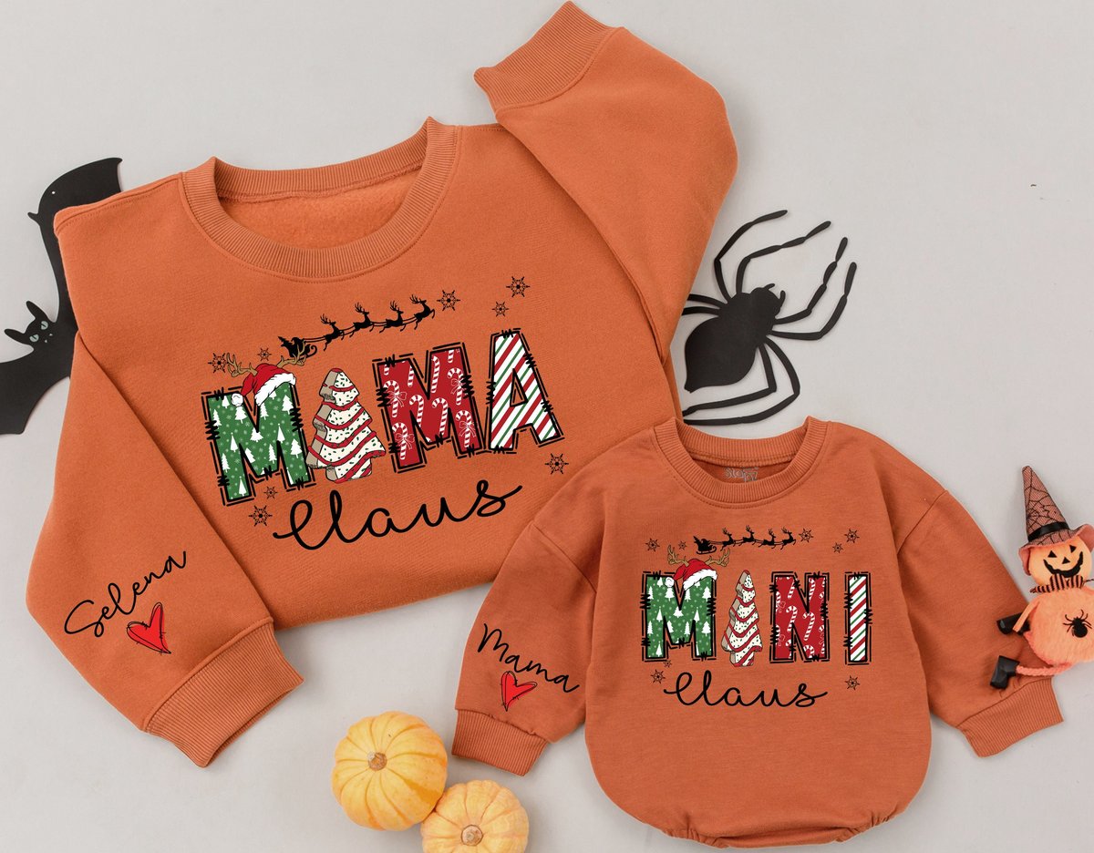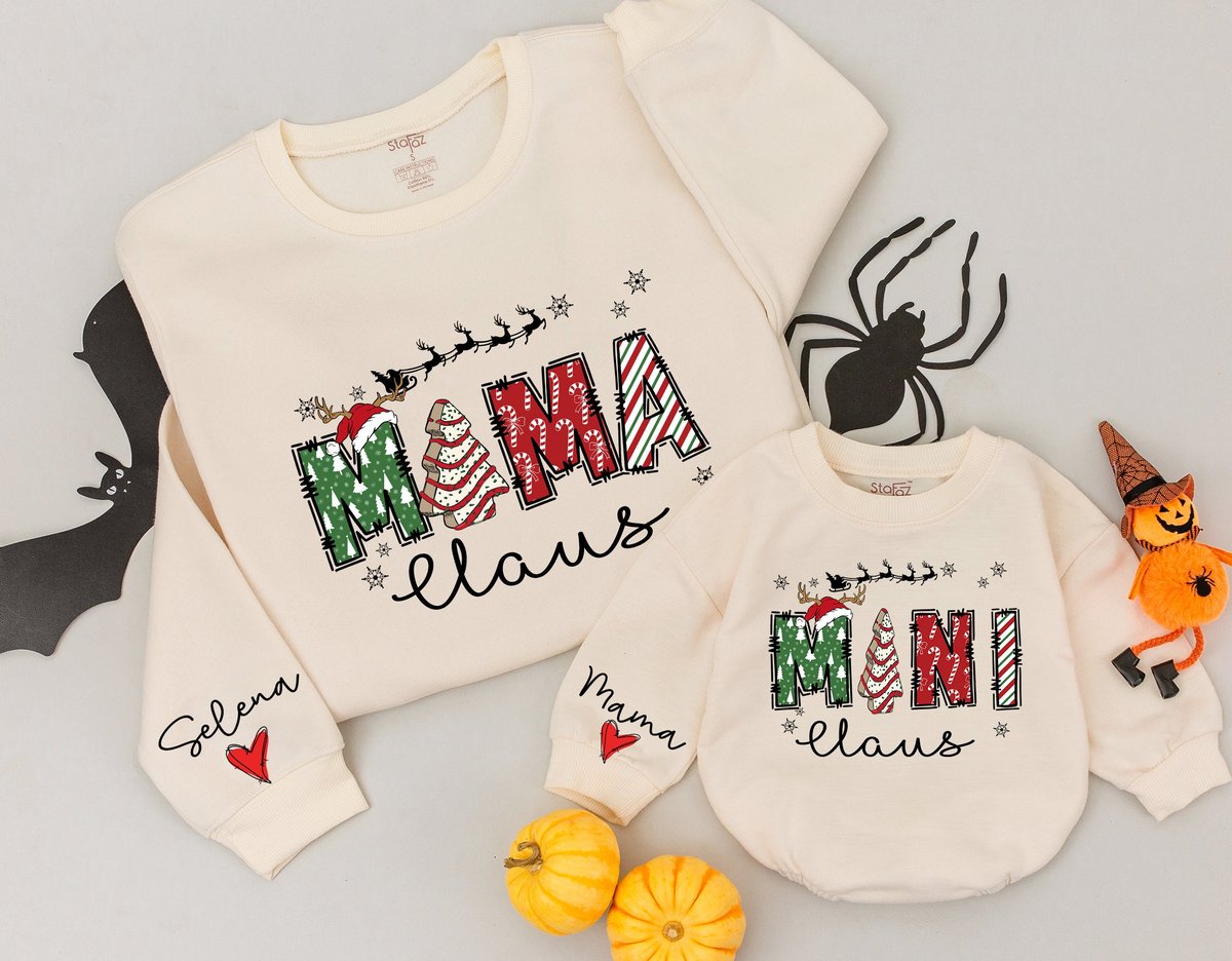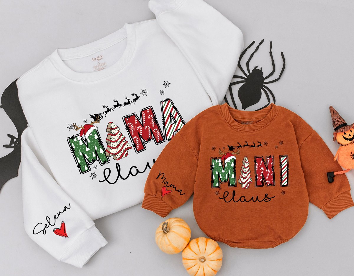 Mama claus and Mini claus Sweatshirt Mom and Baby Matching Family Shirt Daughter Kid Sweatshirt Chri 178