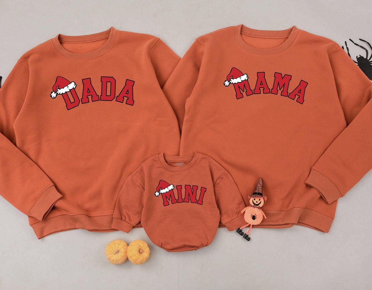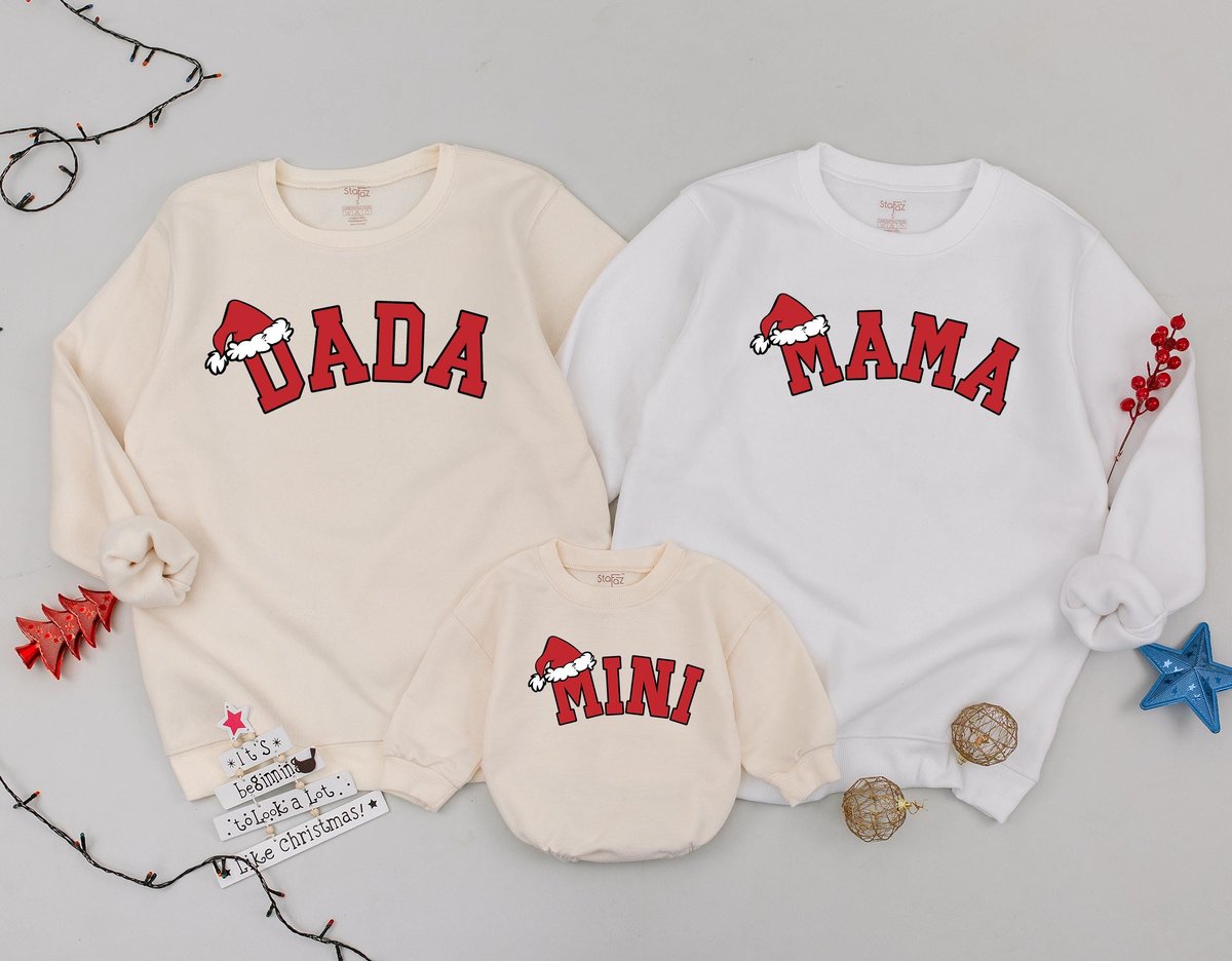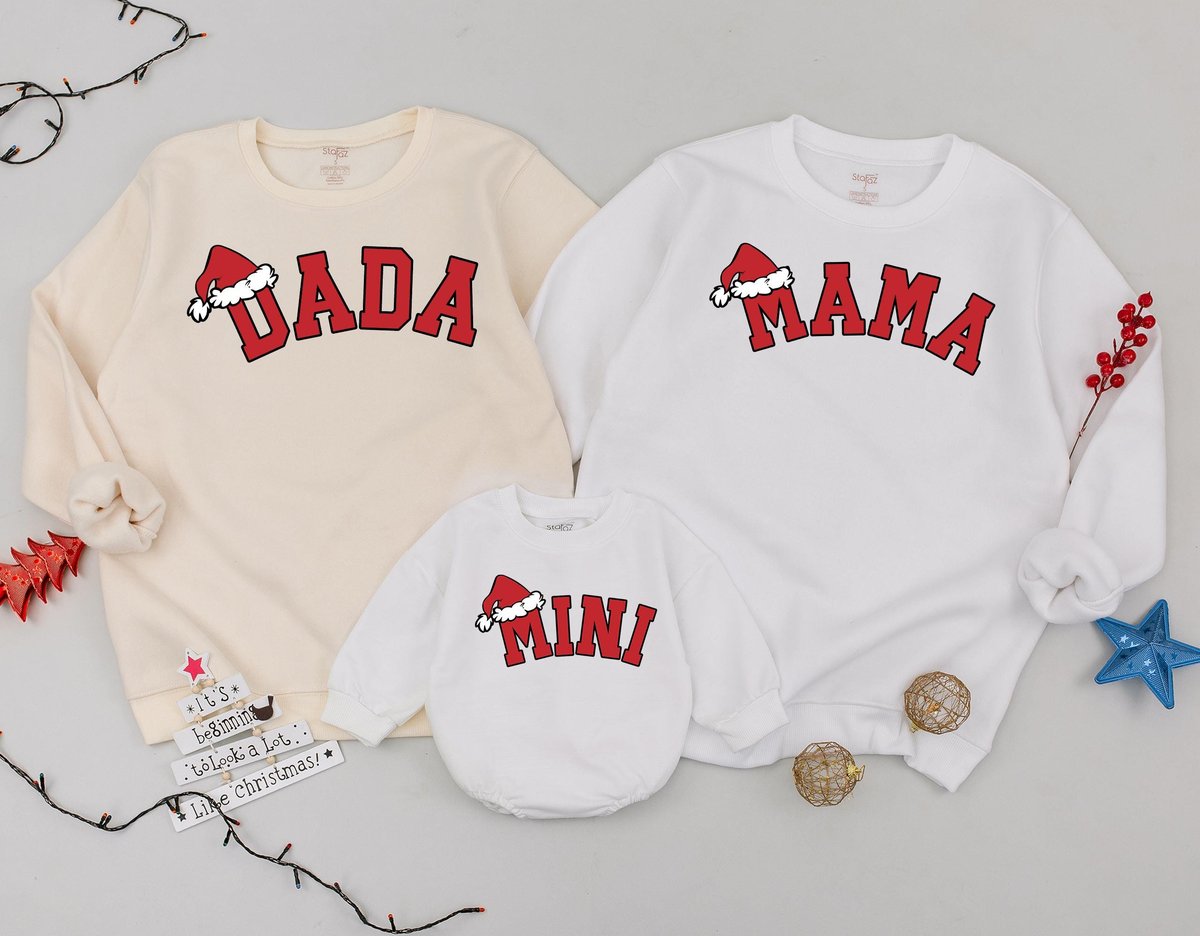 Mama Dada Mini Christmas Sweatshirts Retro Santa hat Mom Toddler Mother Daughter Outfit Toddler Chri 181