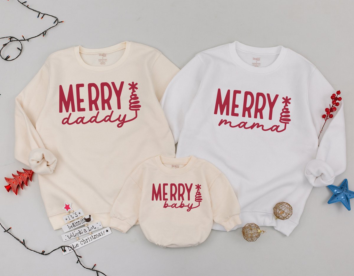 Merry Family Sweatshirts Mommy and Me Christmas Sweaters Matching Christmas Sweaters Christmas Outfi 181