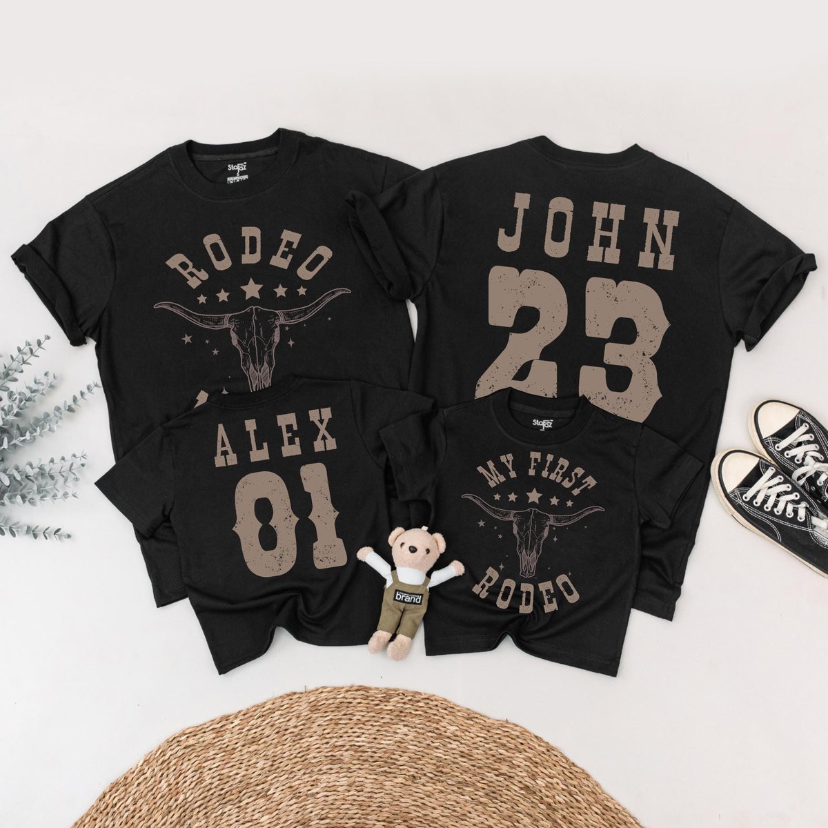 My First Rodeo Birthday Family Matching Shirt 1st Rodeo Western Farm Theme Birthday Party Tshirt Cow 185