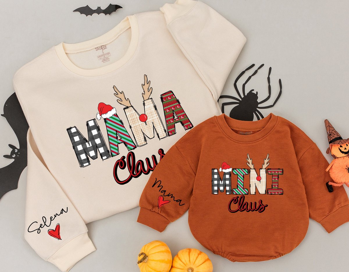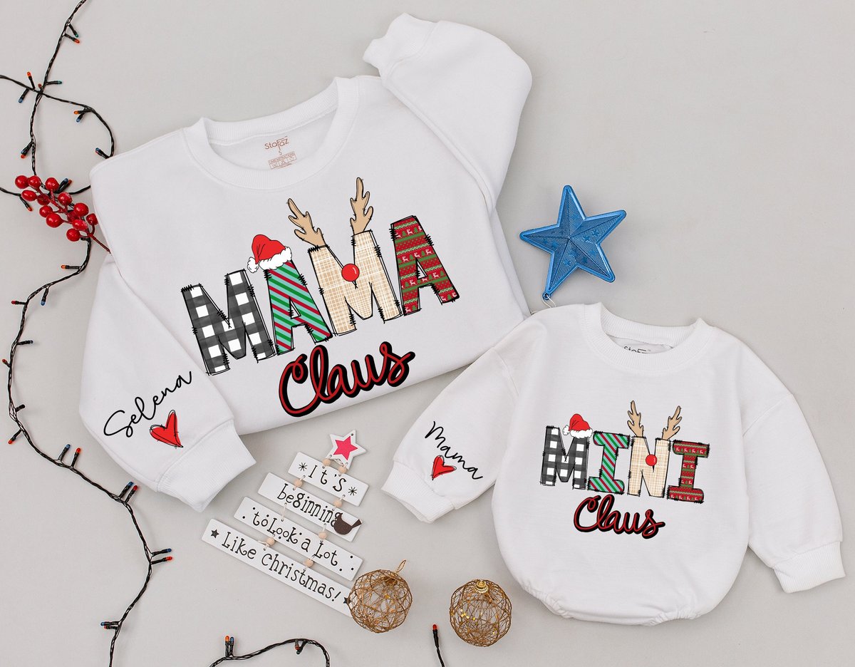 Personalized Mama And Mini claus Sweatshirt Mom And Baby Matching Family Daughter Kid Sweatshirt Chr 180