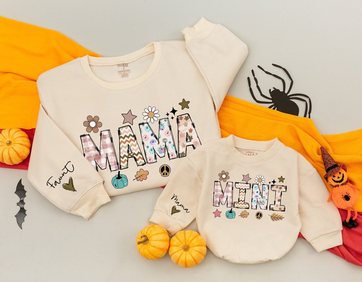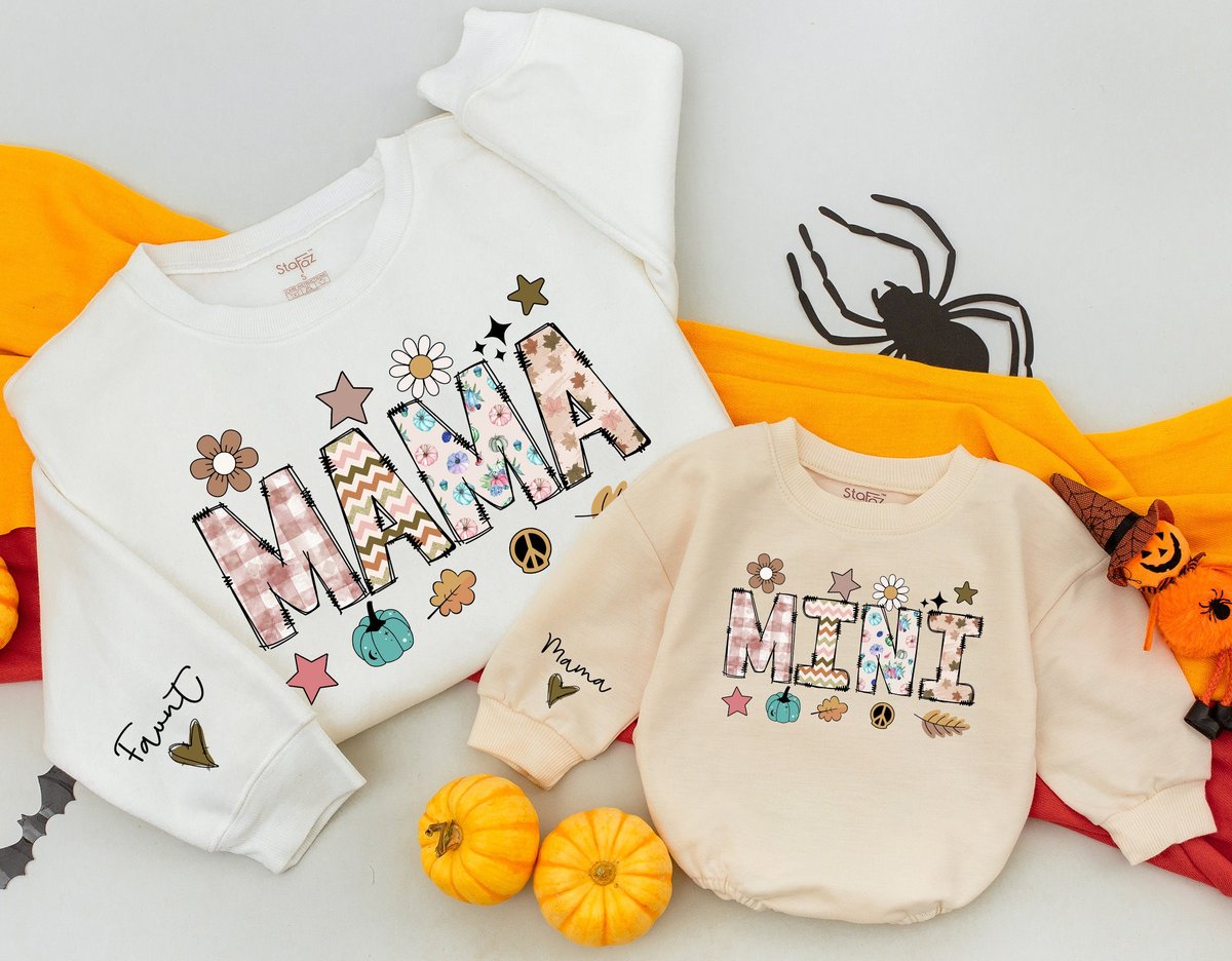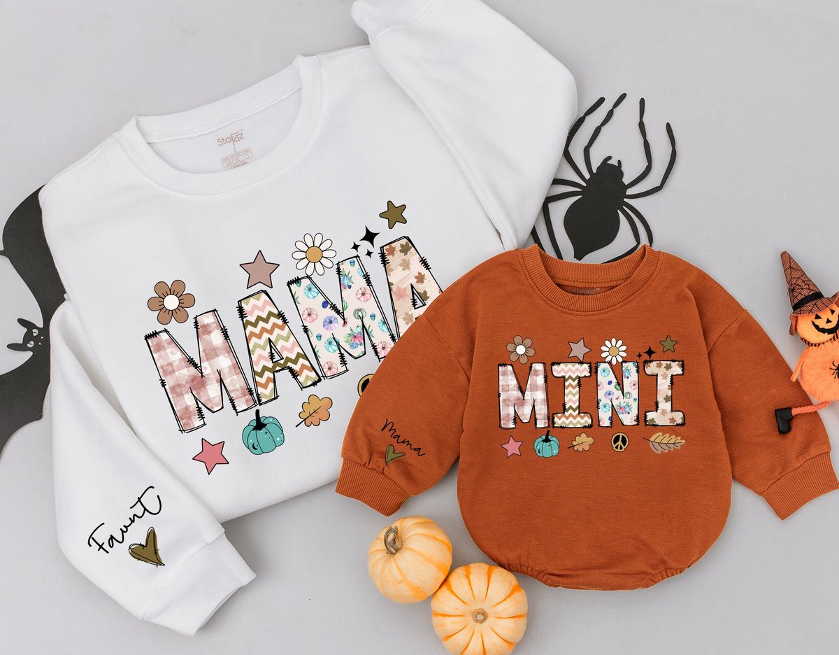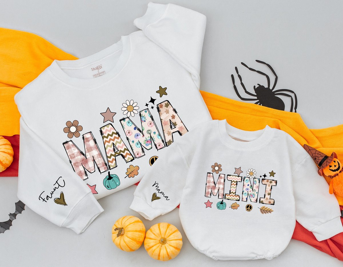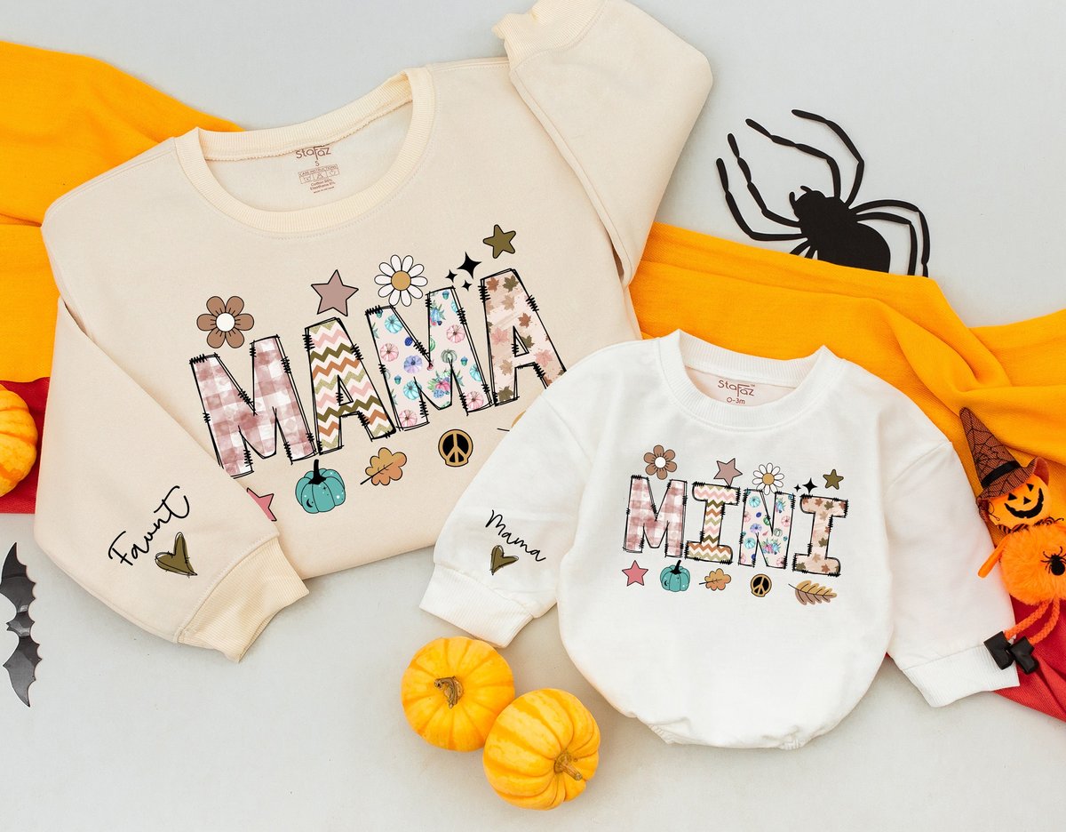 Personalized Mama and Mini Thanksgiving Sweatshirts Baby romper gift Matching Family Outfit Best Gif 176