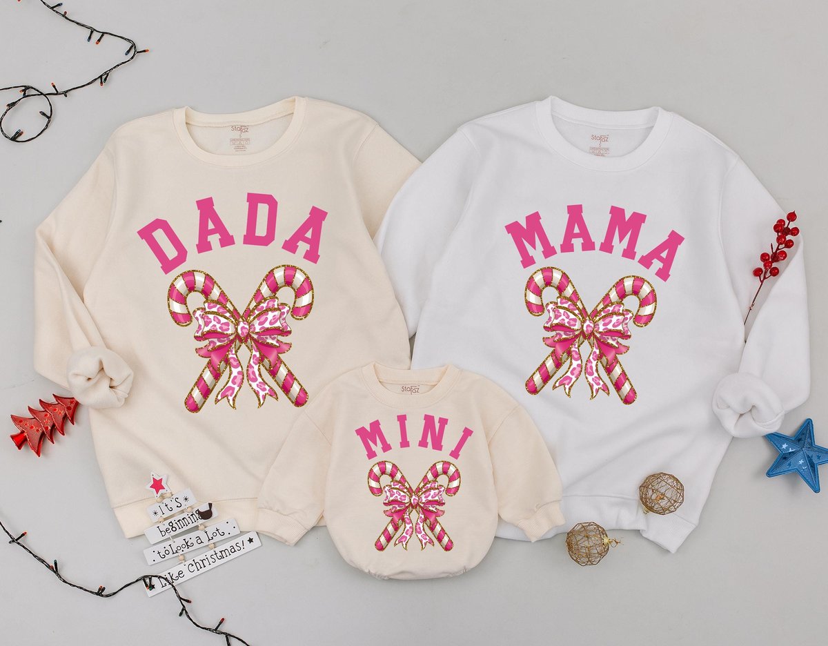 Personalized Mama Dada And Mini Sweatshirt Dada And Baby Matching Family Candy cane Christmas Christ 182