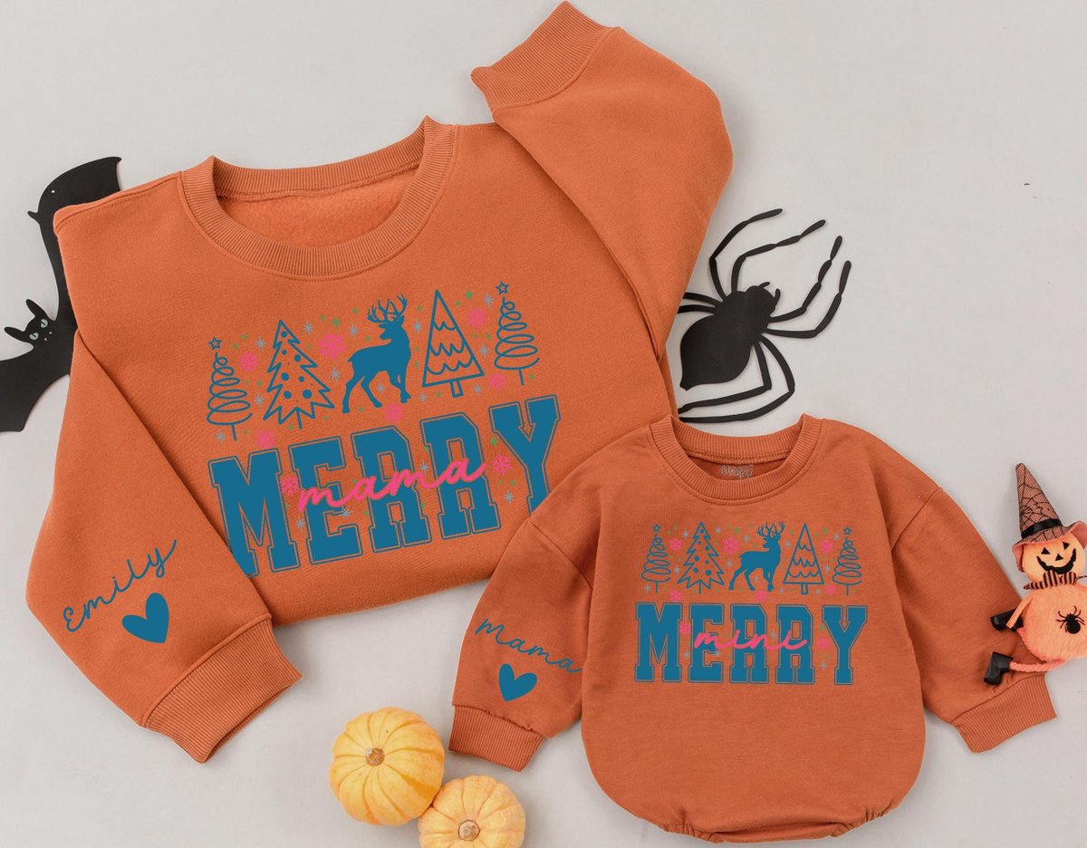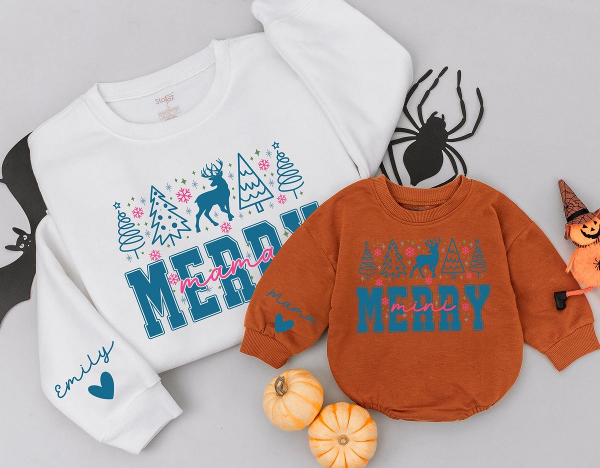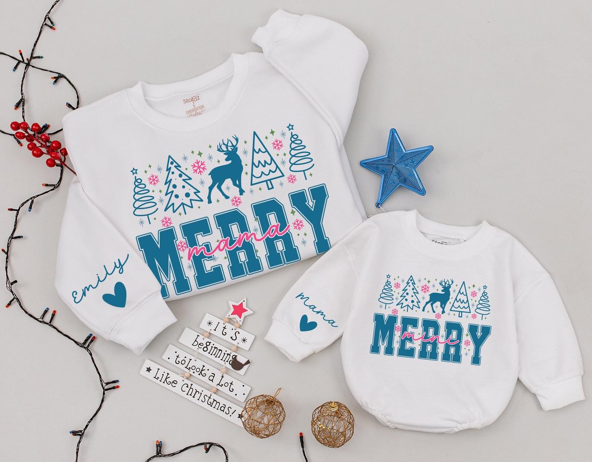 Personalized Merry mama And mini Sweatshirt Mom And Baby Matching Shirt Daughter Kid Sweatshirt Chri 180