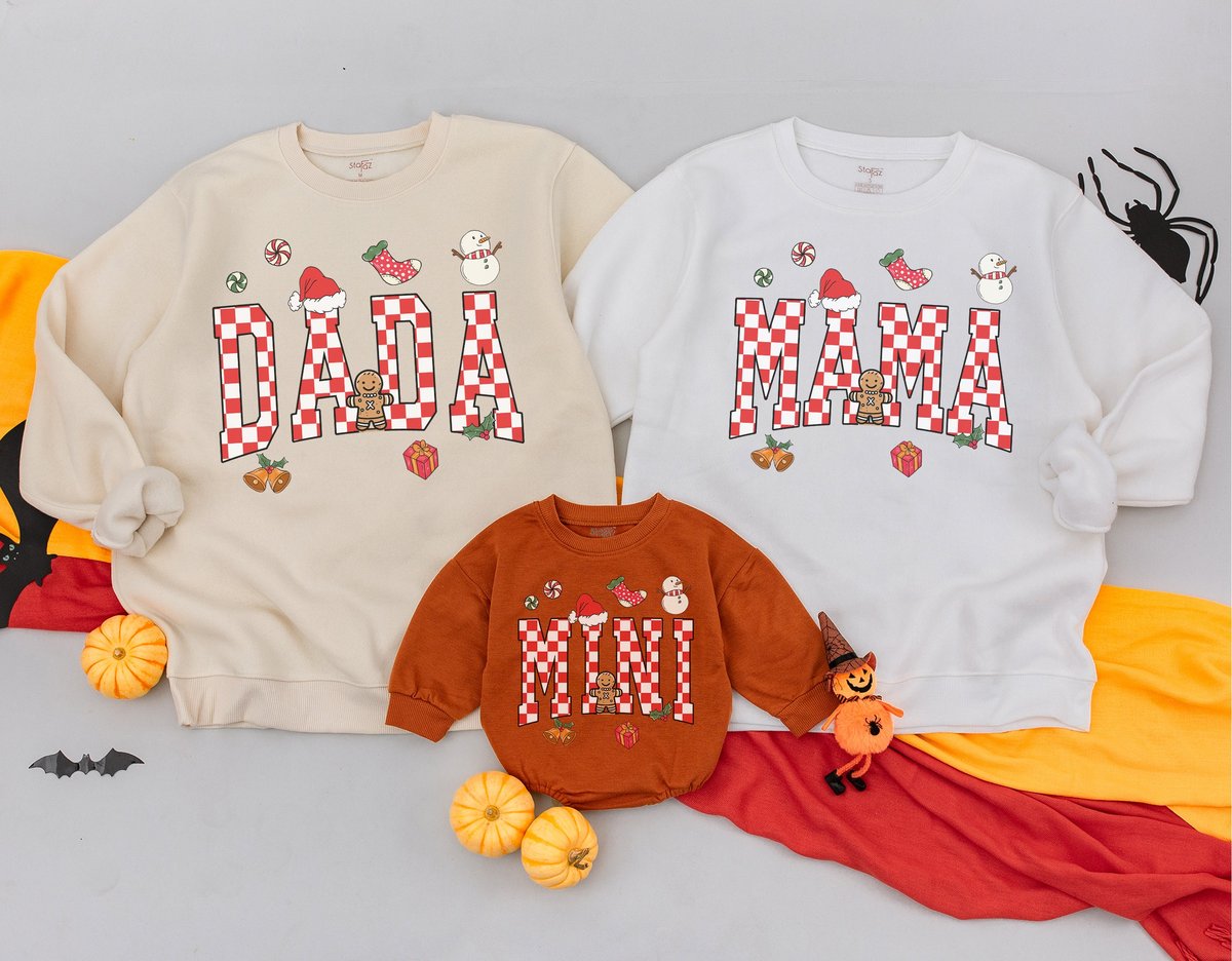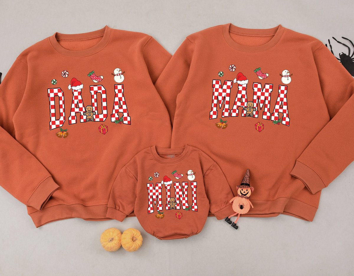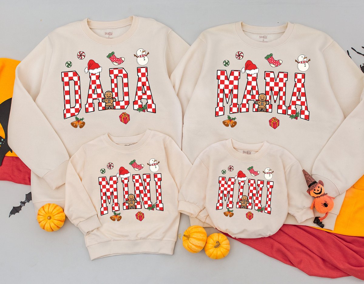 Retro Family Christmas Sweatshirt Mama Dada and Mini Holiday Sweater Matching Family Outfits cute Mo 178