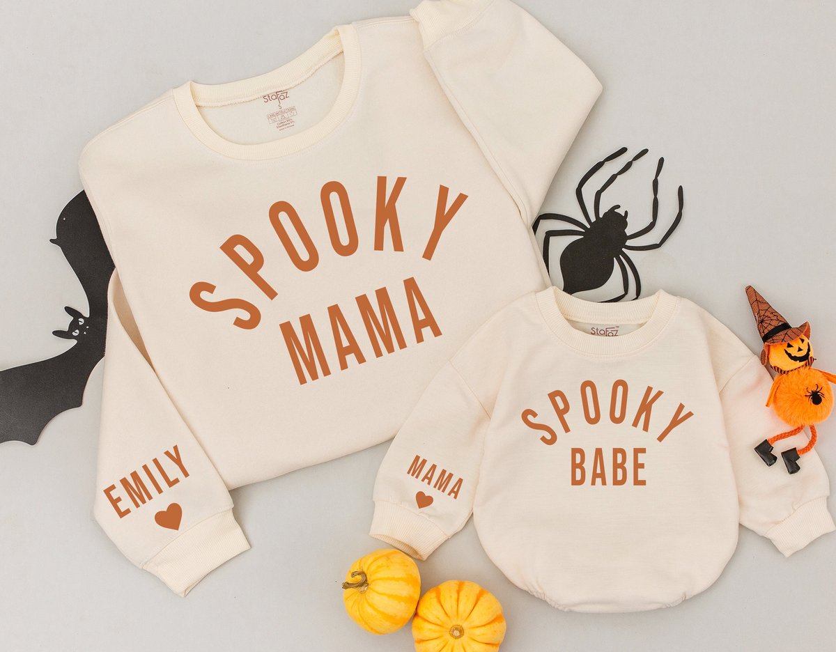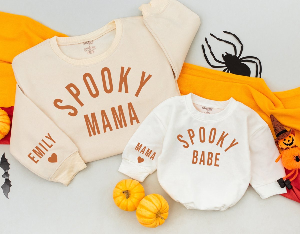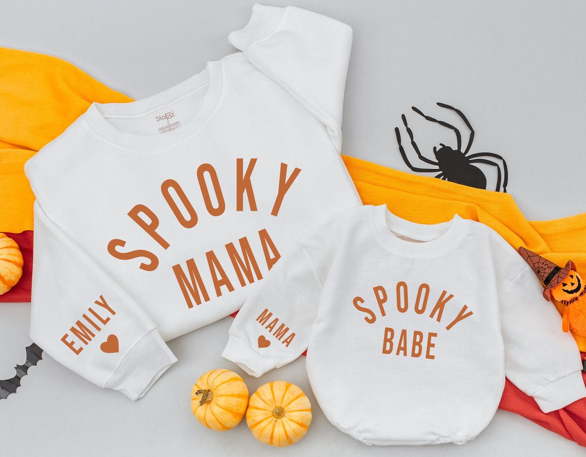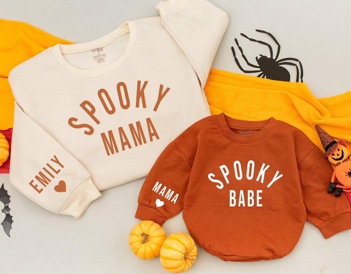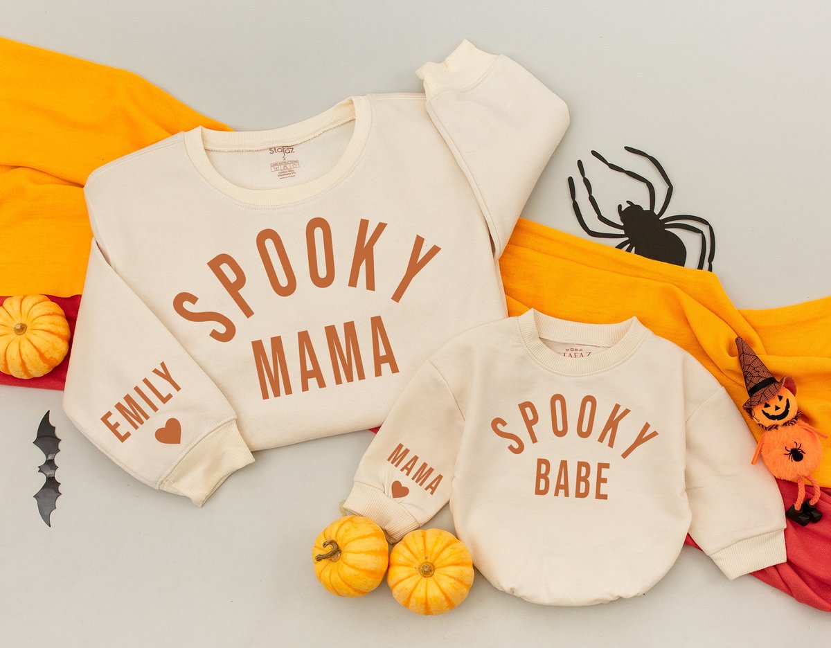 Spooky Mama and babe fall Sweatshirts Mama Sweatshirt Matching Family pumpkin Outfit Best Gifts for 176