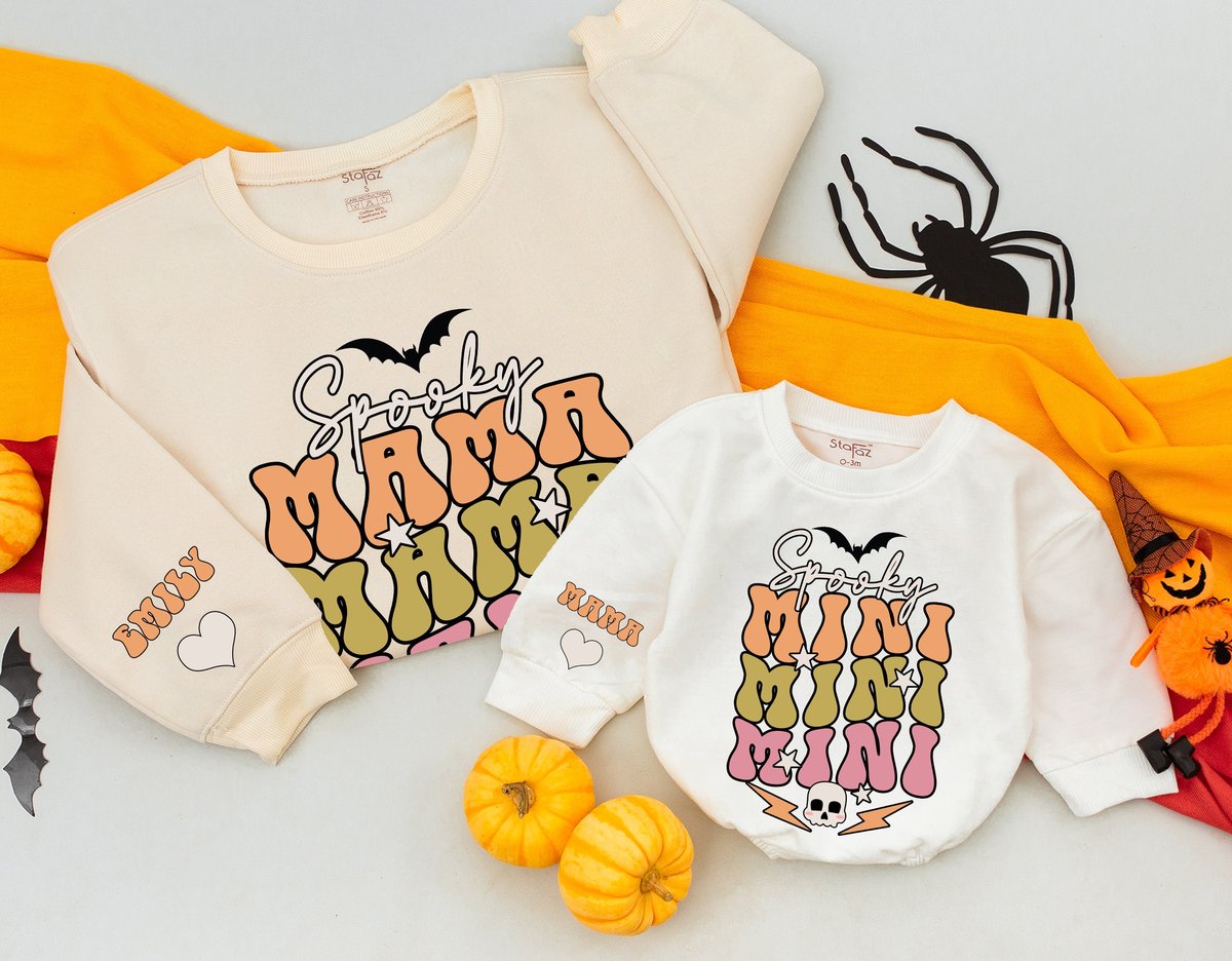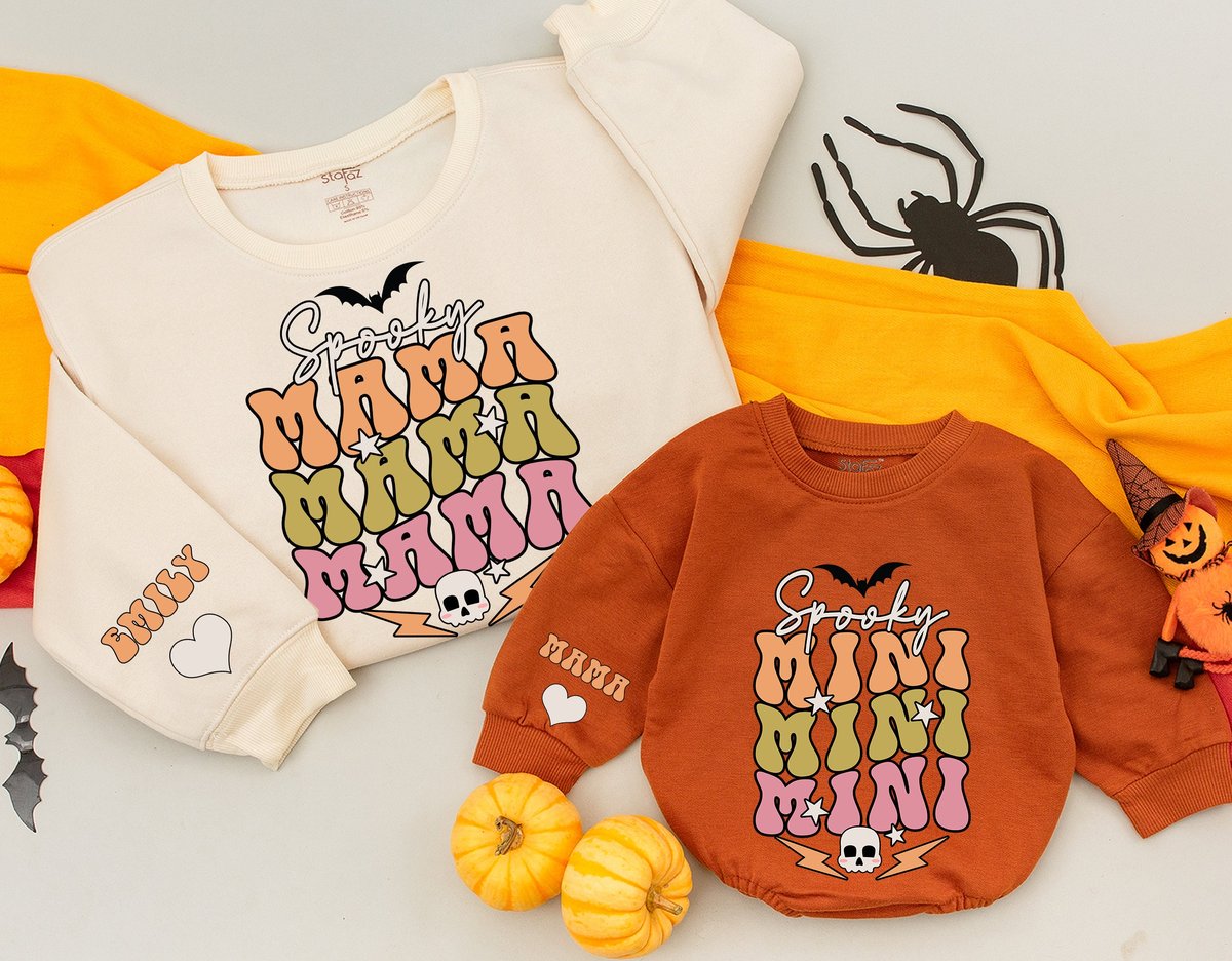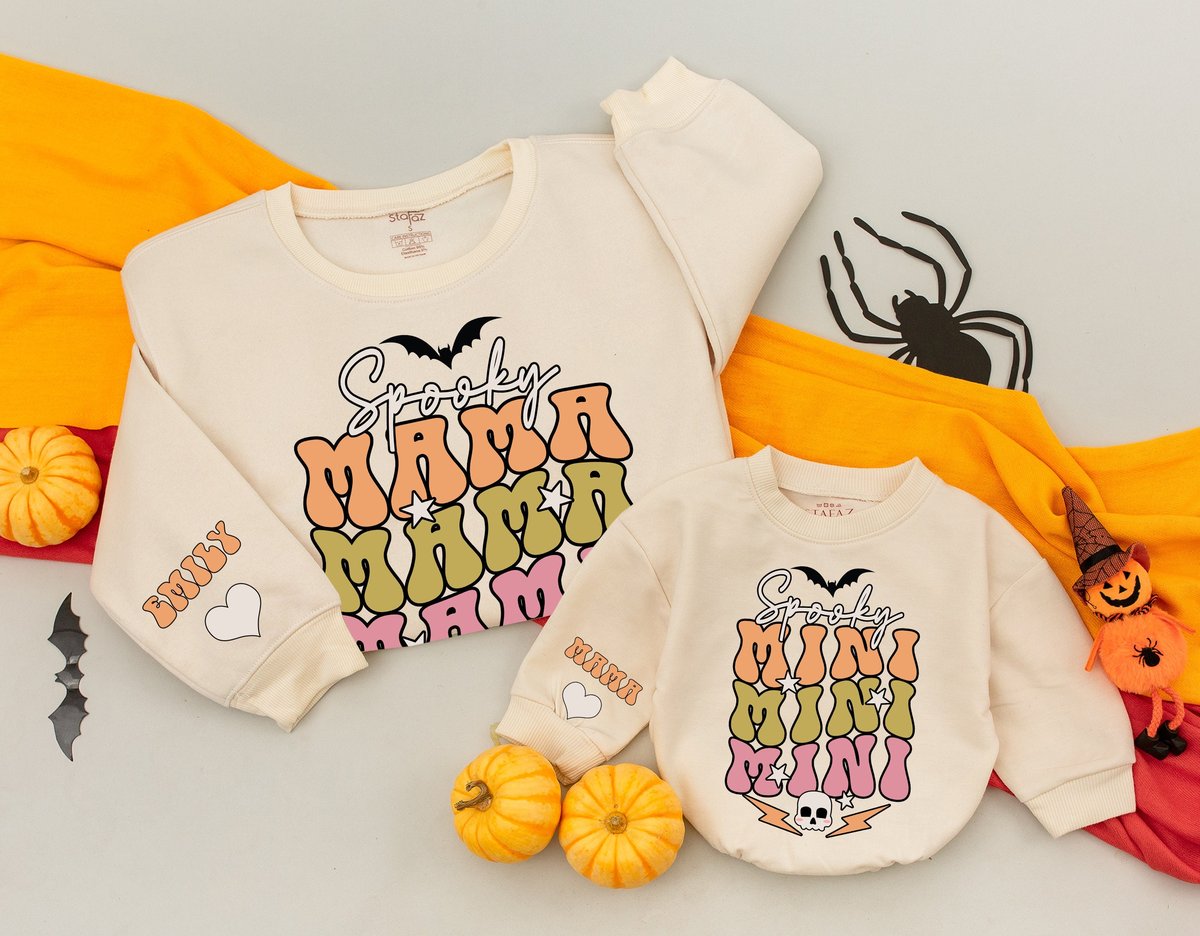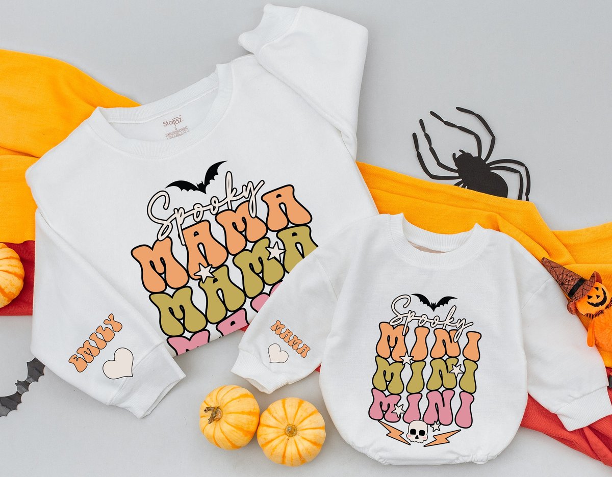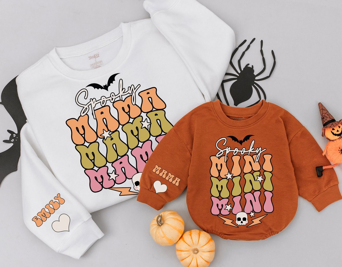 Spooky Mama Spooky Mini Retro Halloween Matching Mom Kids Halloween Sweatshirts Mommy and Me Hallowe 177