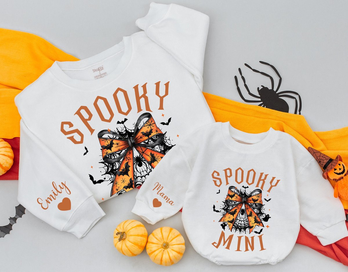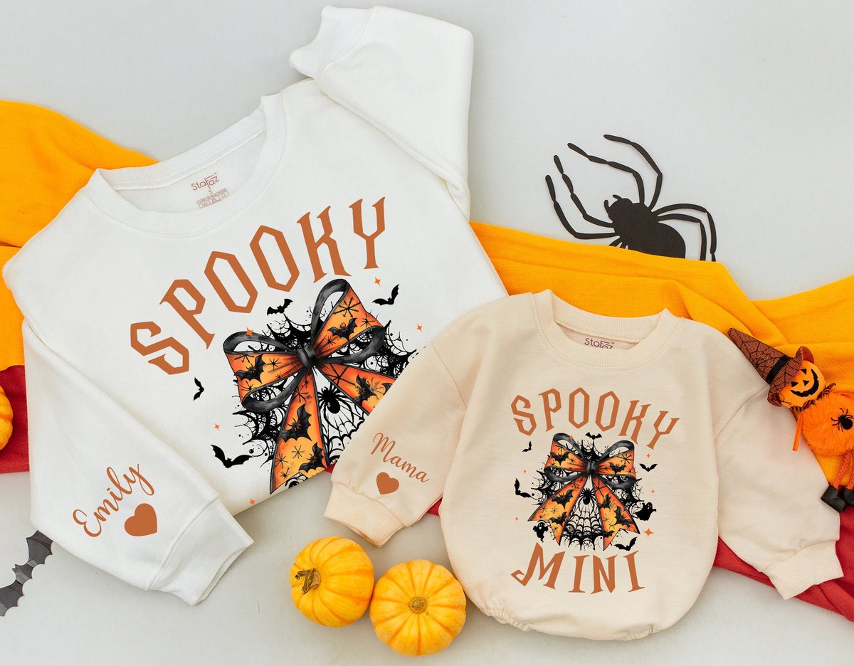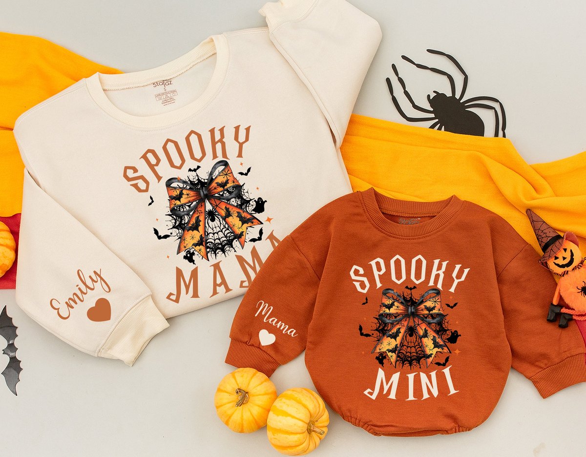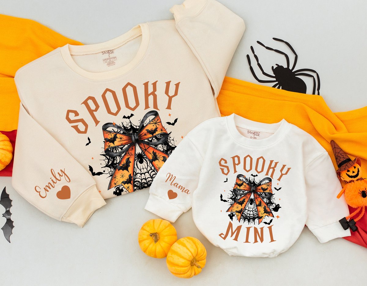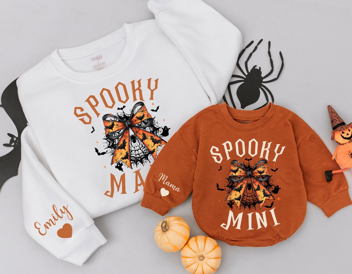 Spooky Mama and Mini Halloween Sweatshirt Cute Spooky Season baby romper gift Retro fall clothes Mat 174