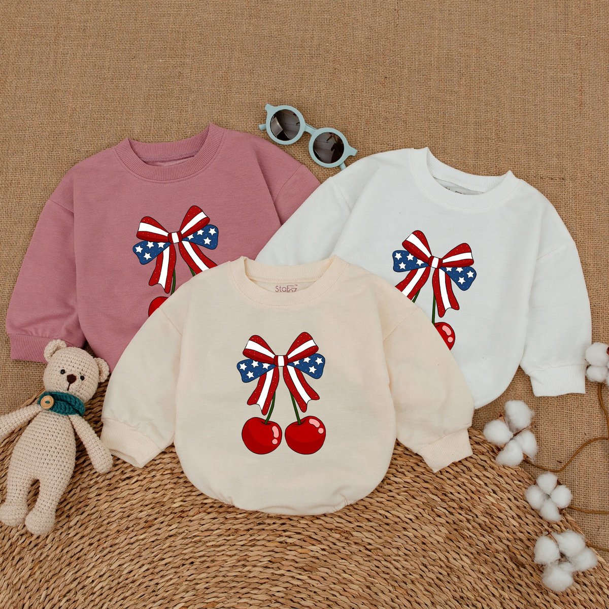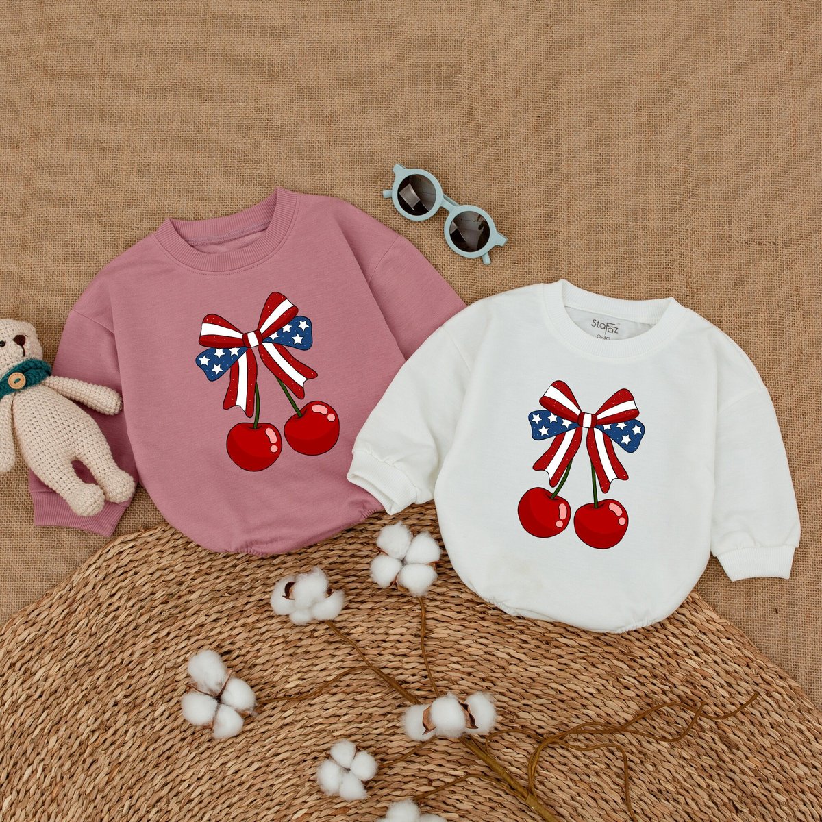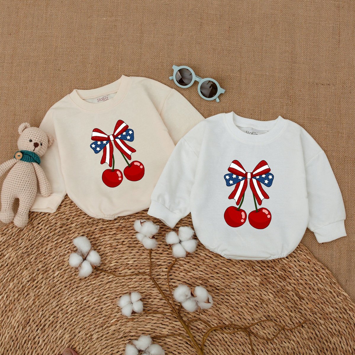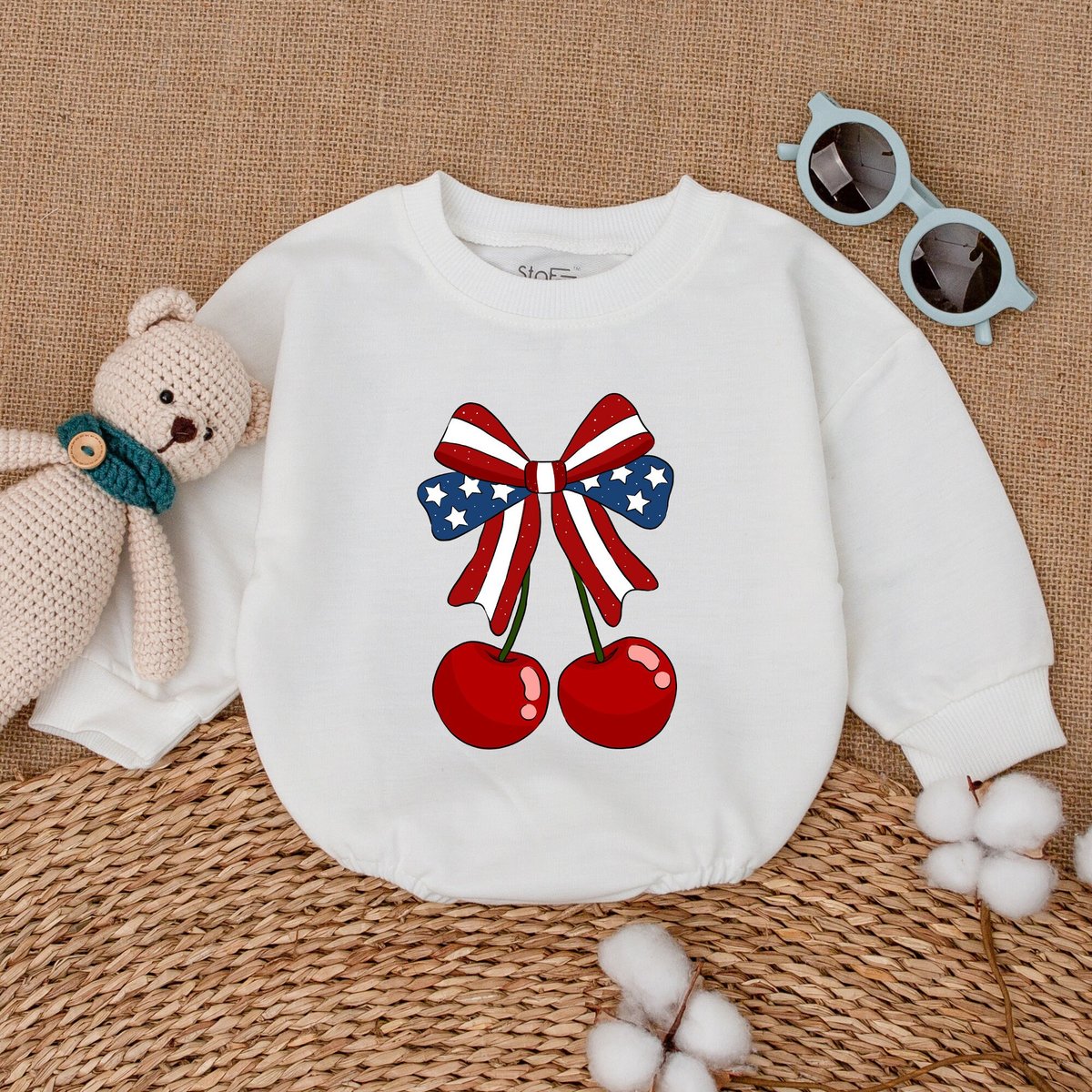 America Cherry Baby Romper American Baby Bodysuit USA Flag With Cherry 4th of July Clothes Independe 171
