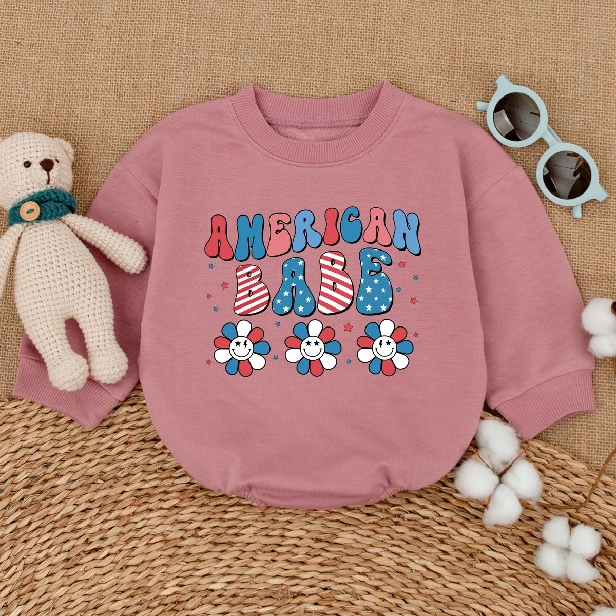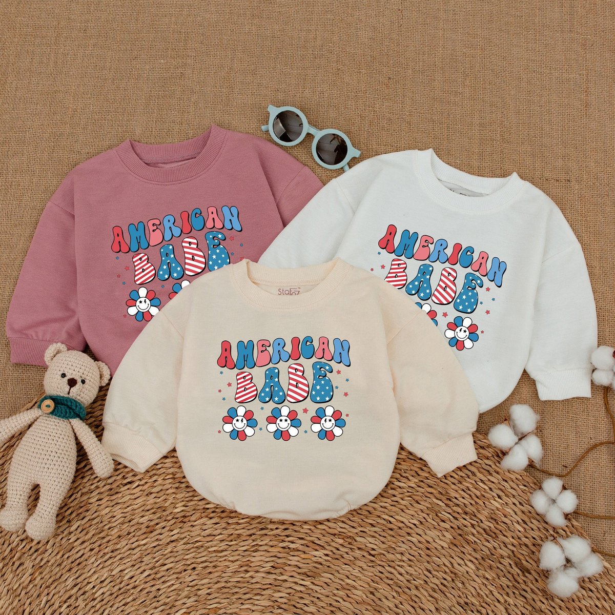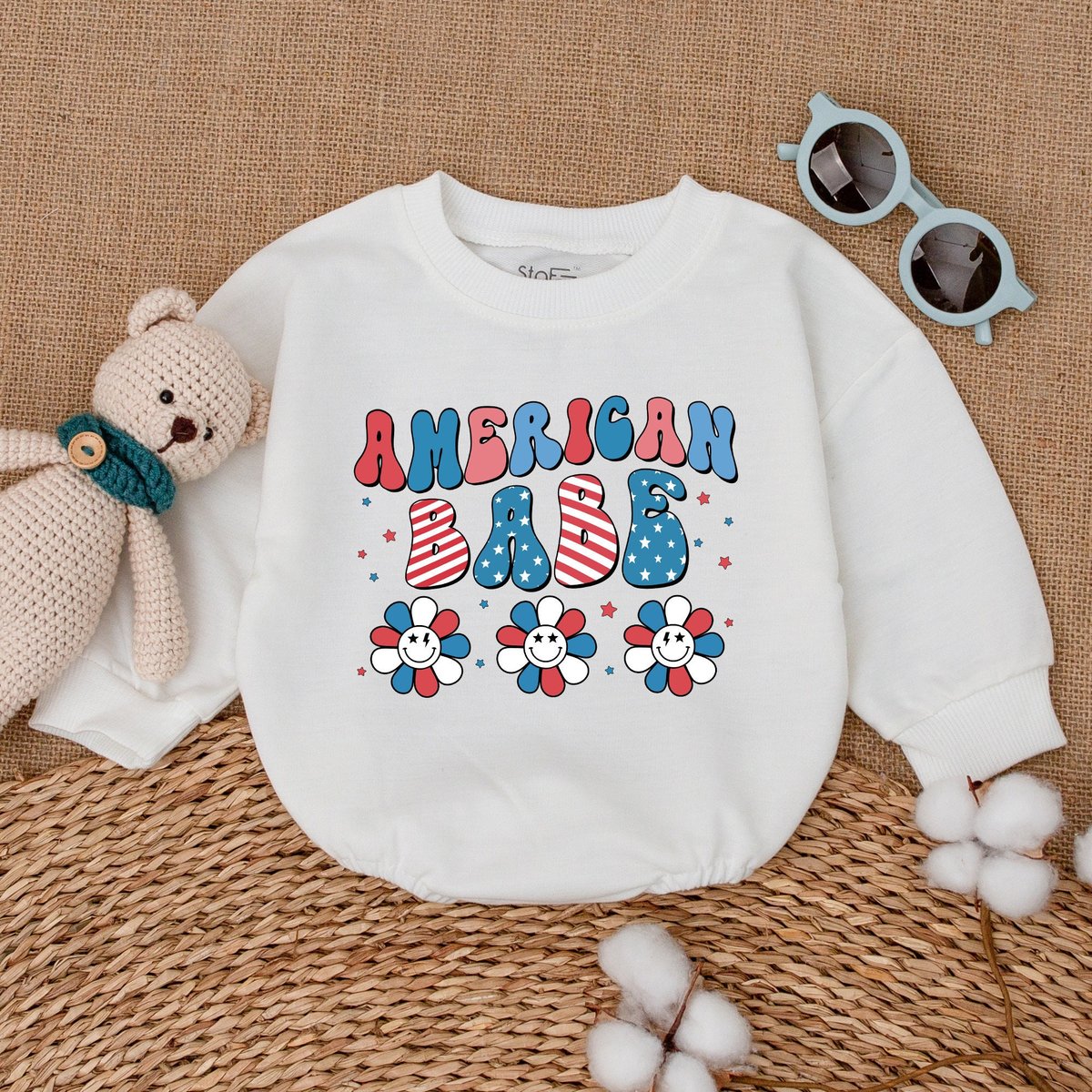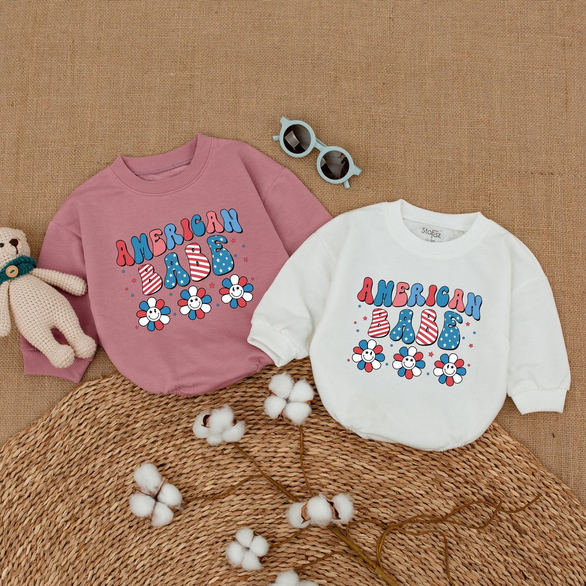 American Baby Romper American Smile Face Bodysuit 4th of July Clothes Patriotic One Piece Independen 170
