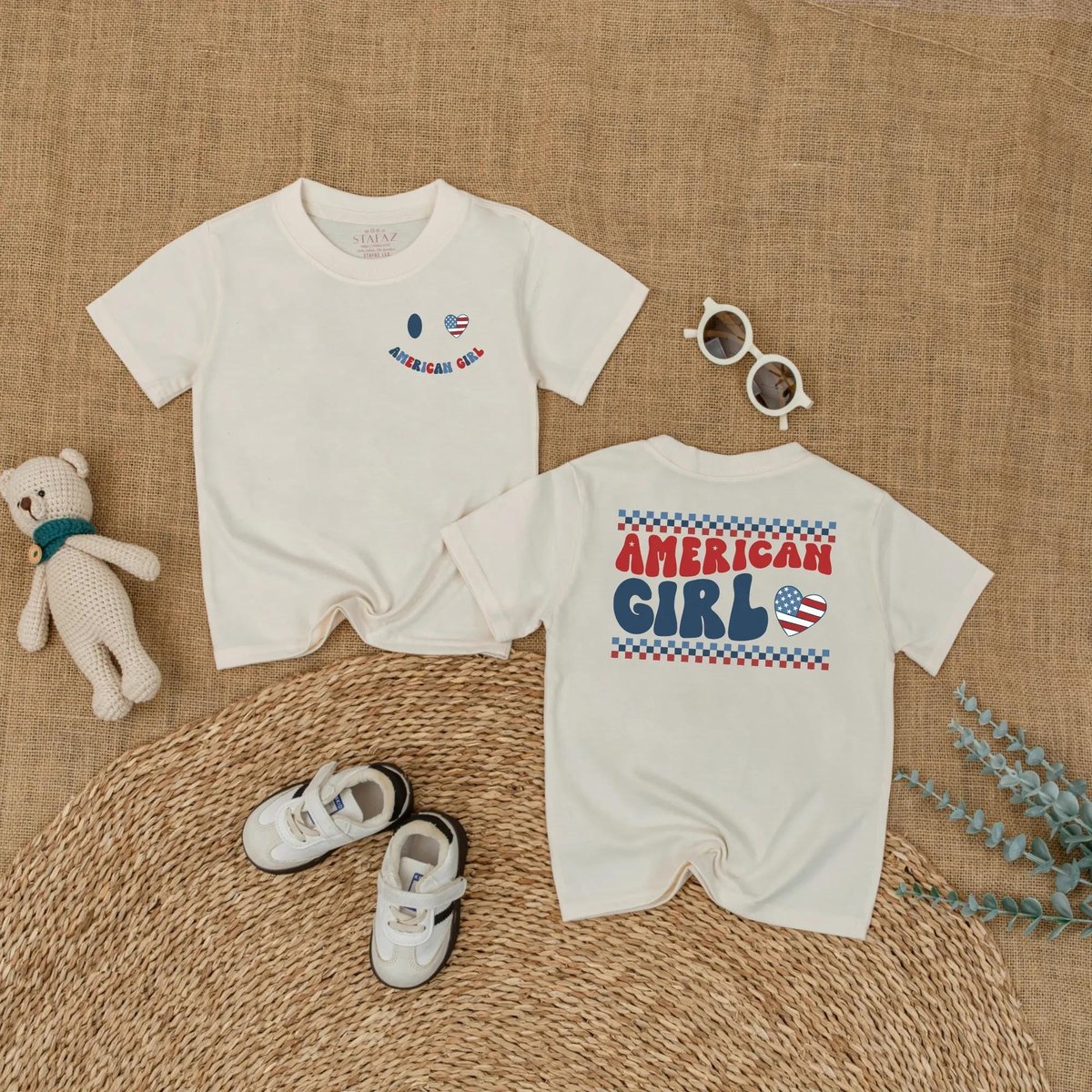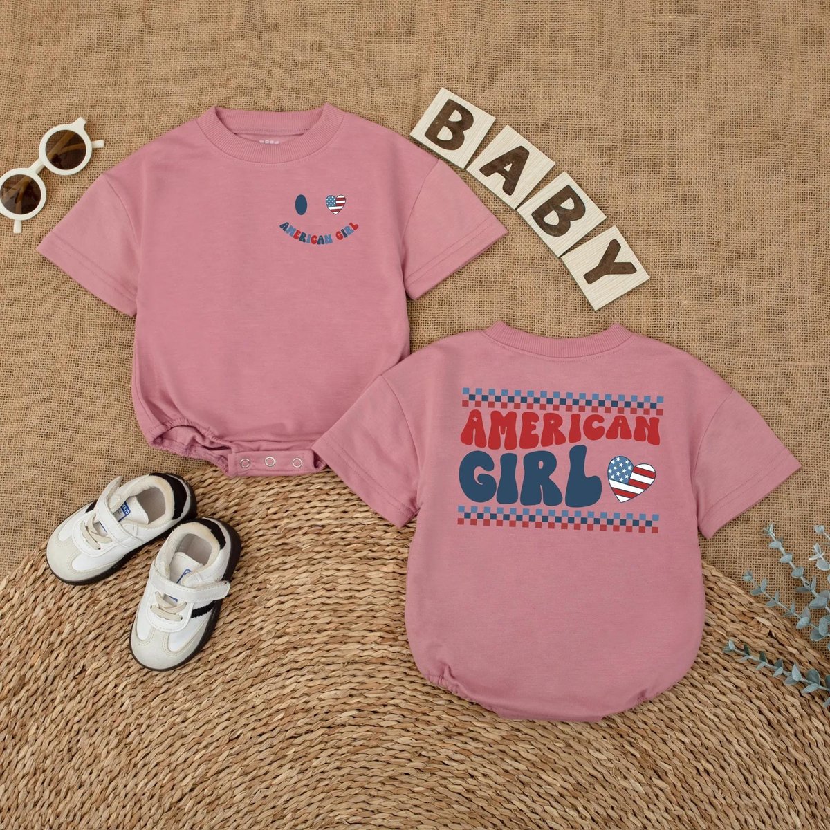 American Girl Baby Romper 4th of July Baby Bodysuit Patriotic Bubble Romper for Baby Girl Independen 430