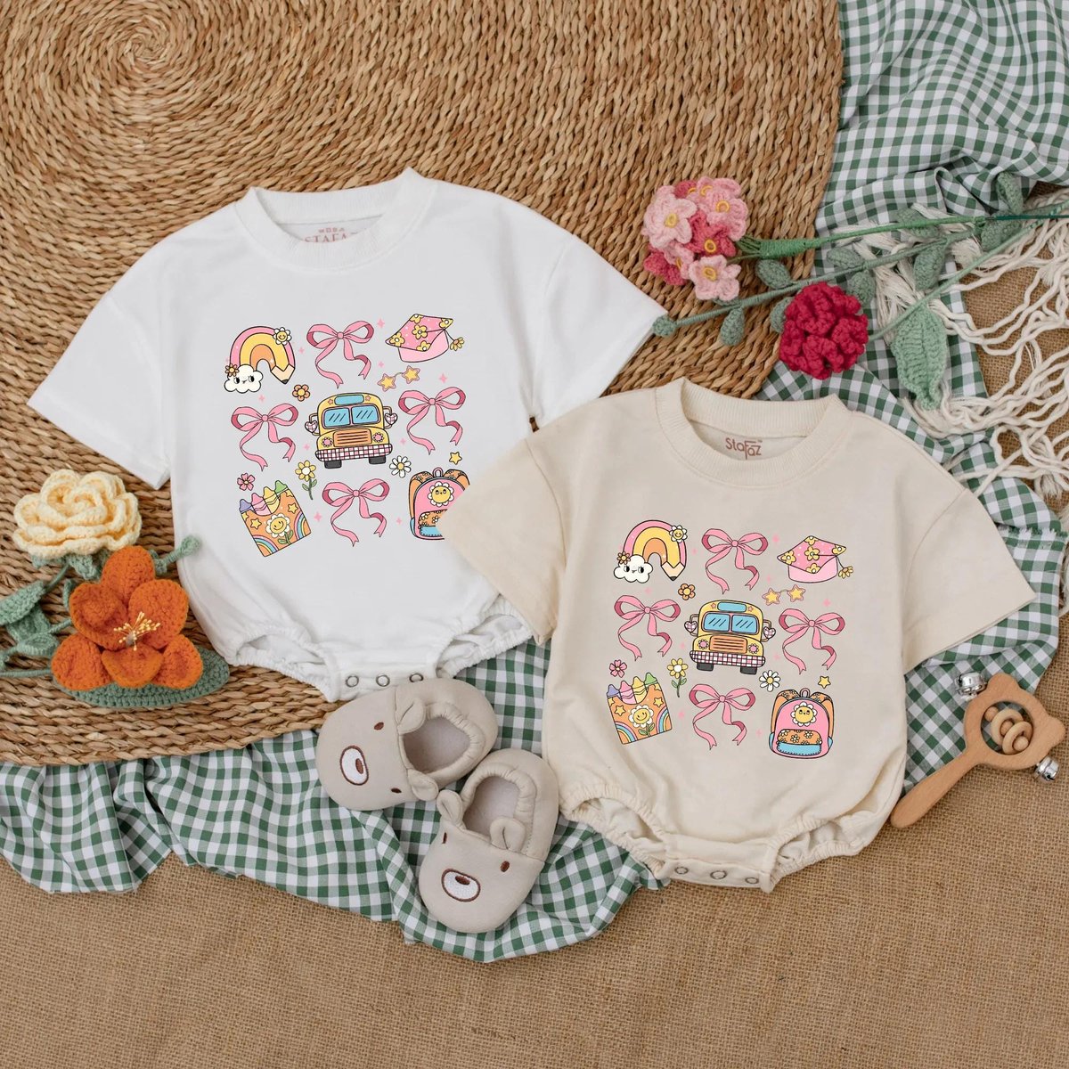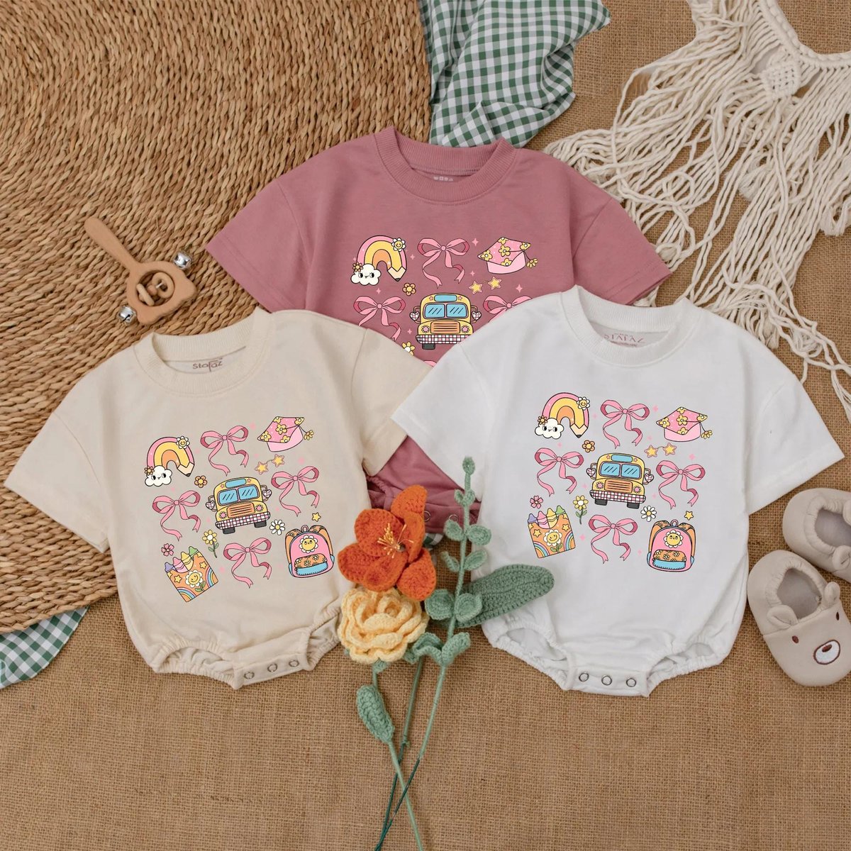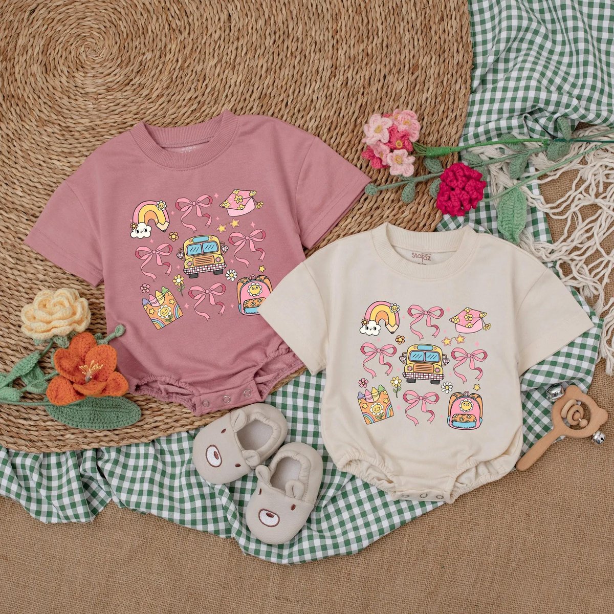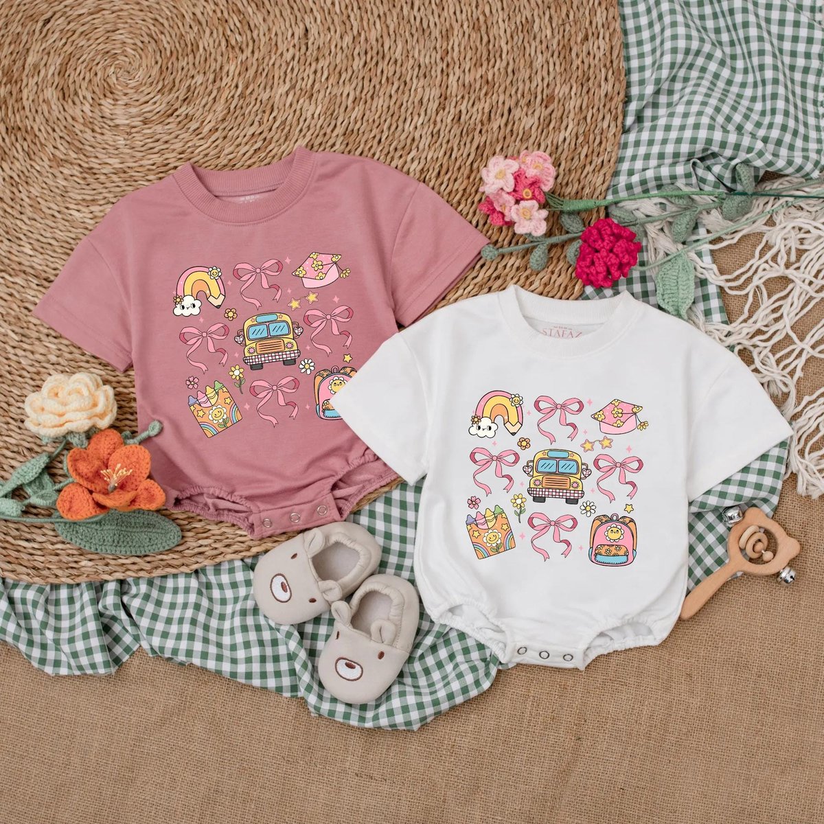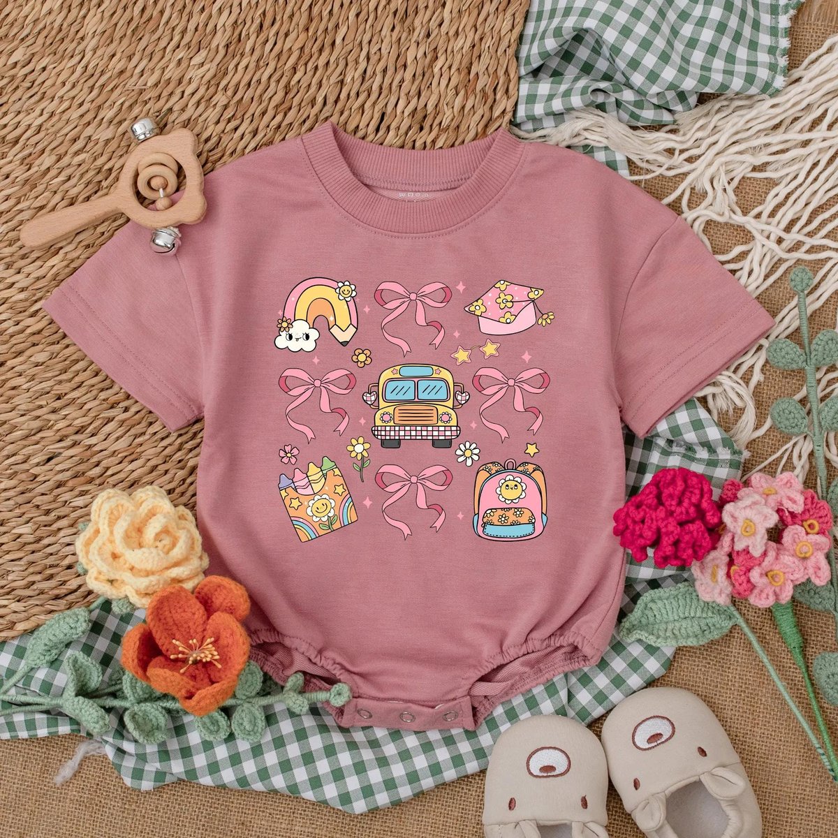Back to School Baby Girl Romper Crayon Rainbow Baby Bodysuit Cute Preschool Outfit for First Day Gif 190