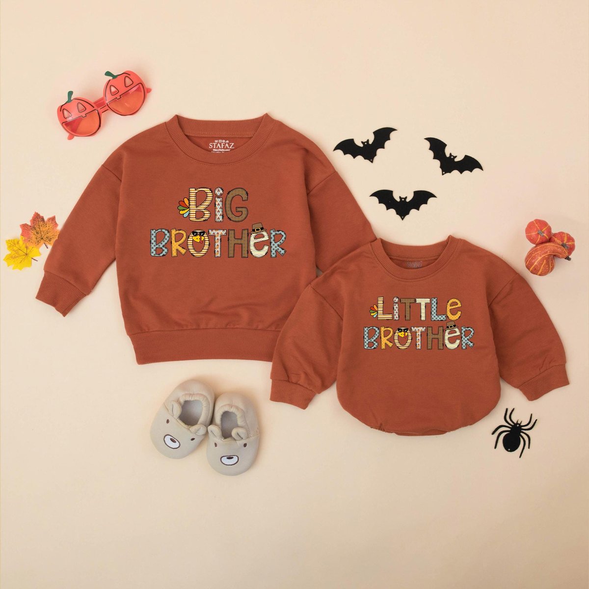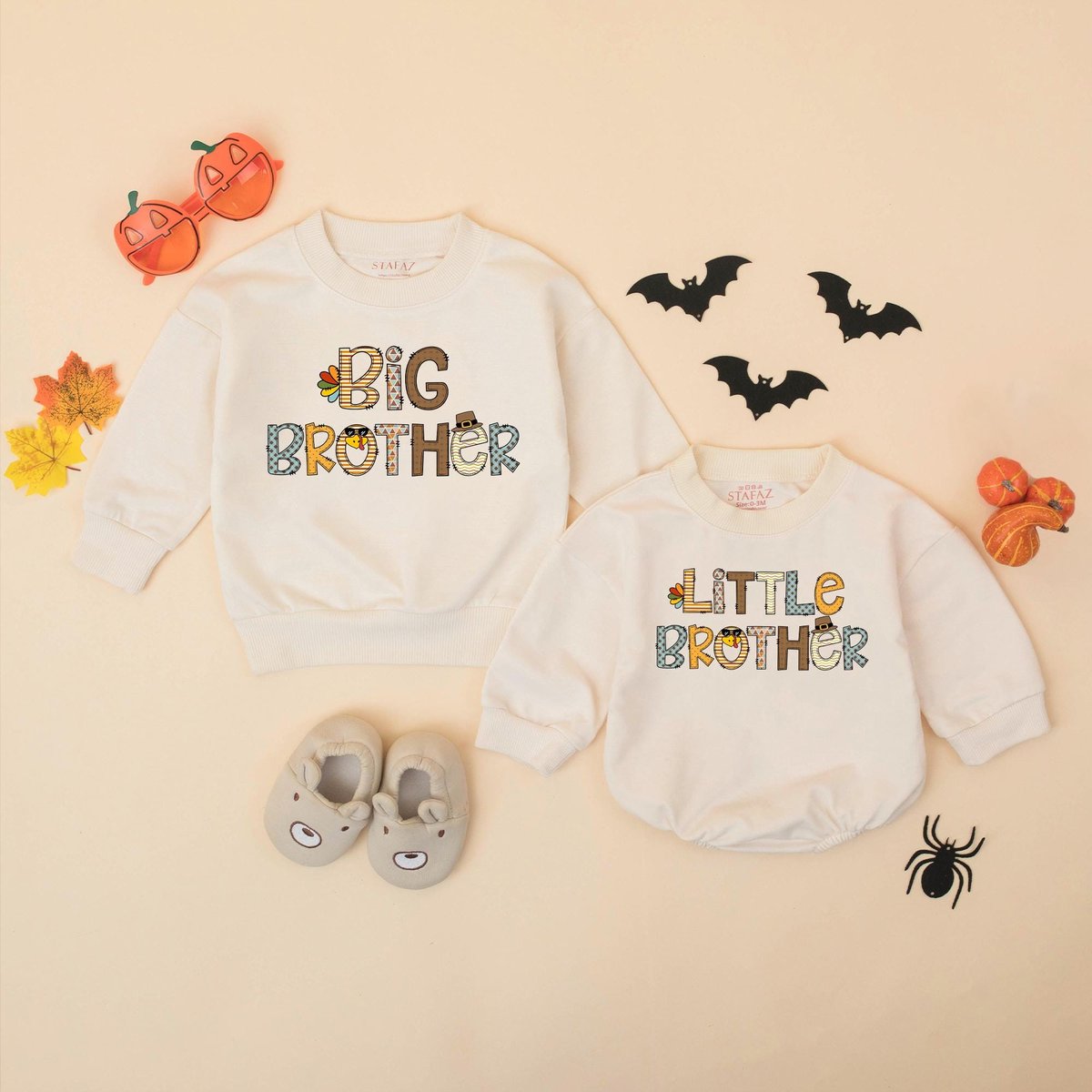 Big Brother Little Brother Thanksgiving Matching Shirts Fall Sibling Outfit Turkey Brother Matching 432