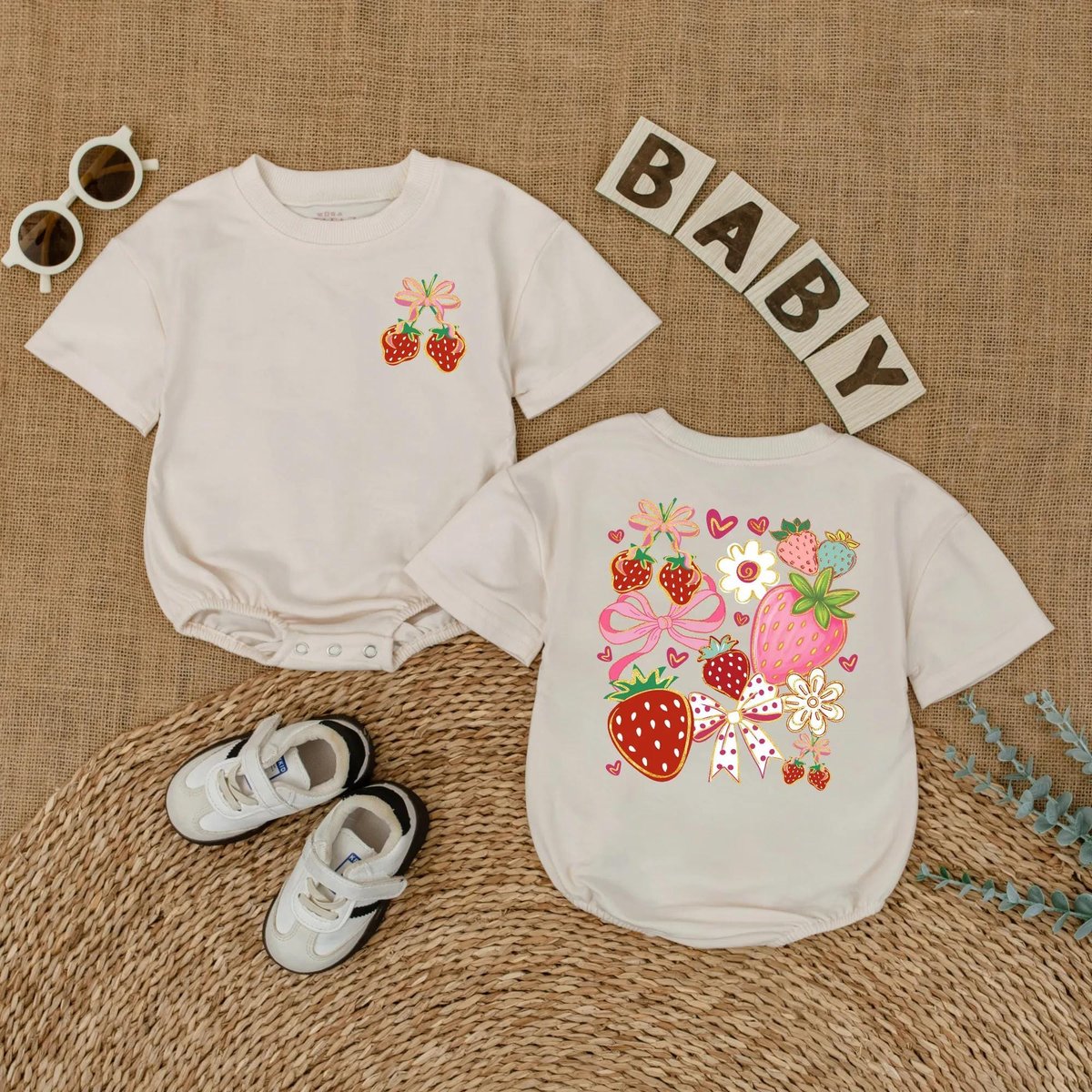 Boho Strawberry Bubble Romper Floral Strawberry Baby Bodysuit Cute Strawberries Baby Outfit Infant G 431