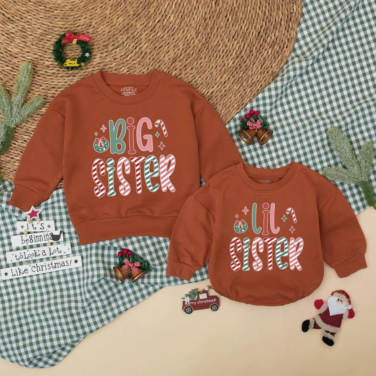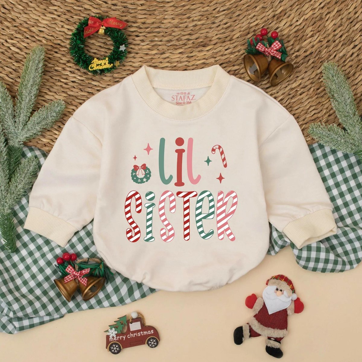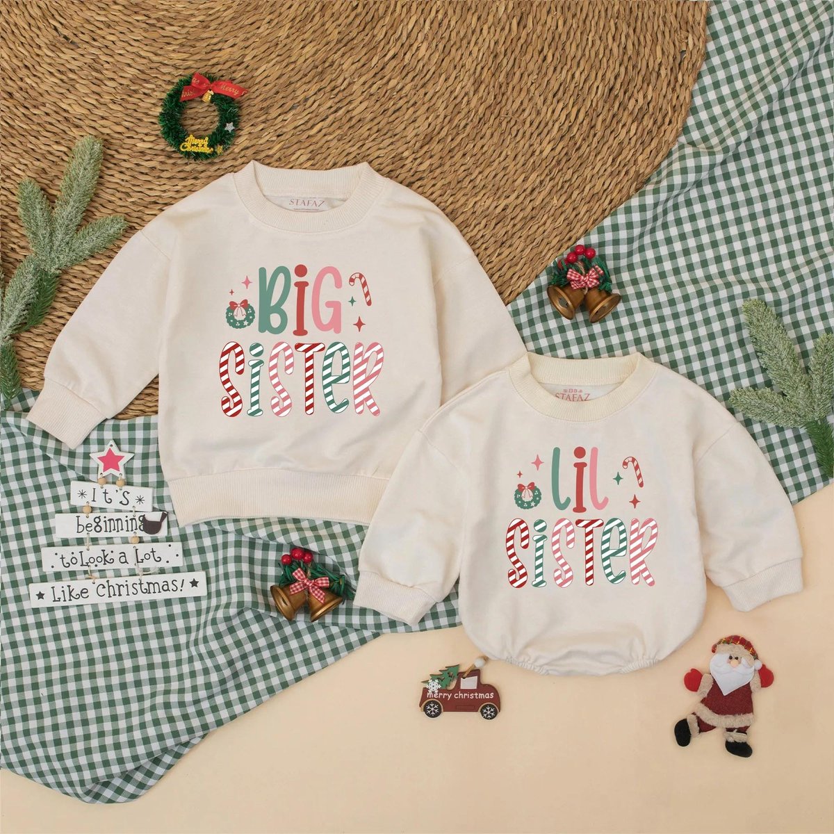 Christmas Big Sister Lil Sister Matching Sweatshirt Romper Sibling Christmas Outfit New Baby Announc 436