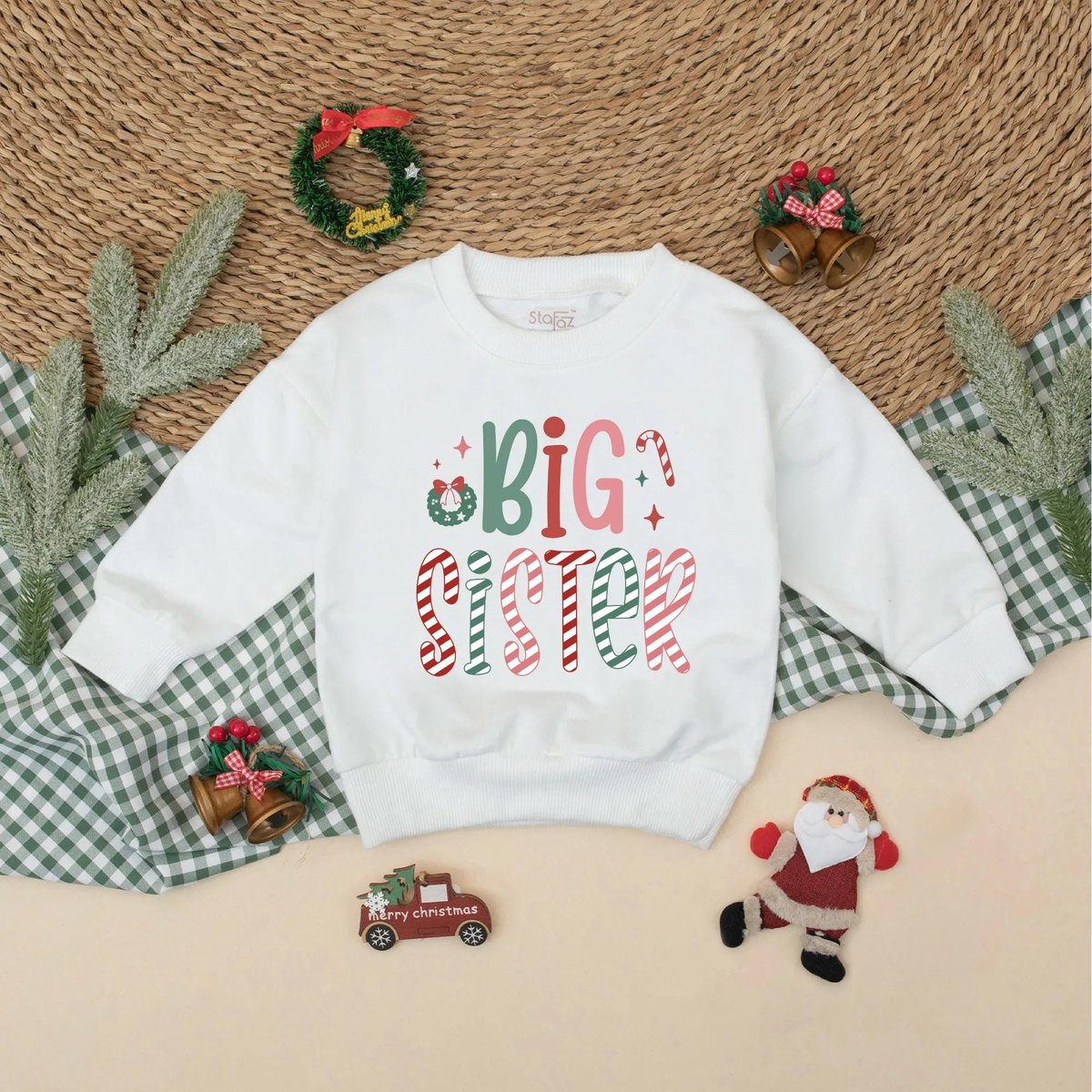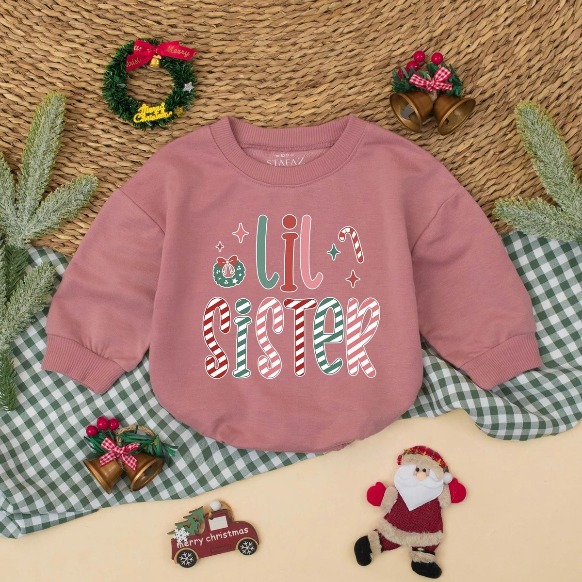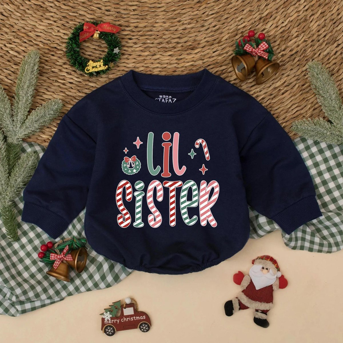 Christmas Big Sister Lil Sister Matching Sweatshirt Romper Sibling Christmas Outfit New Baby Announc 436