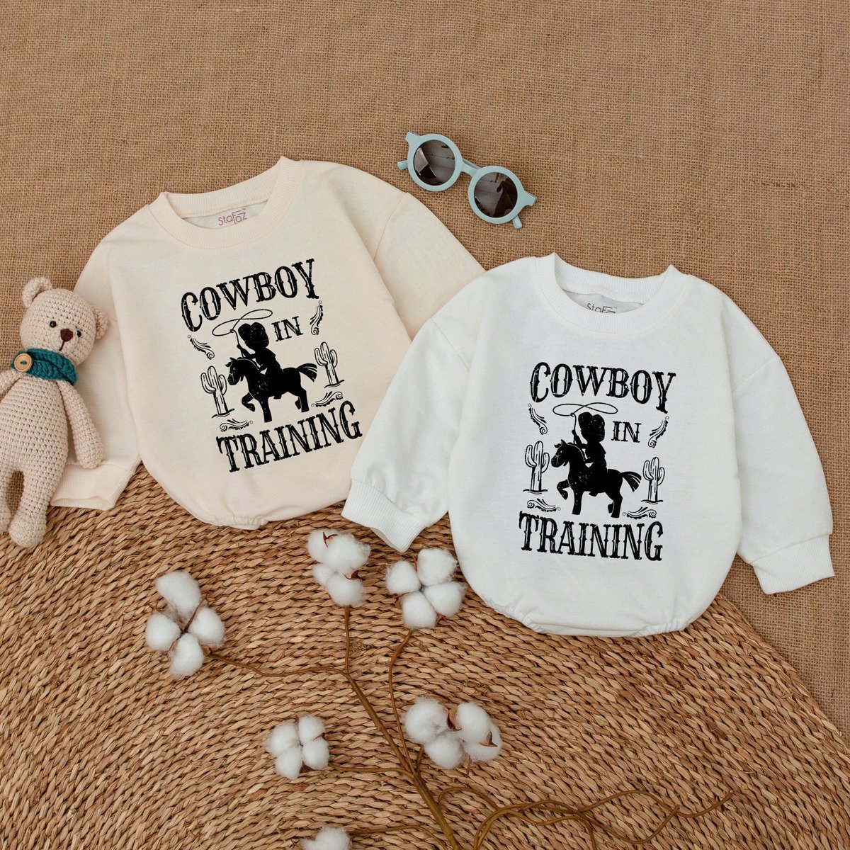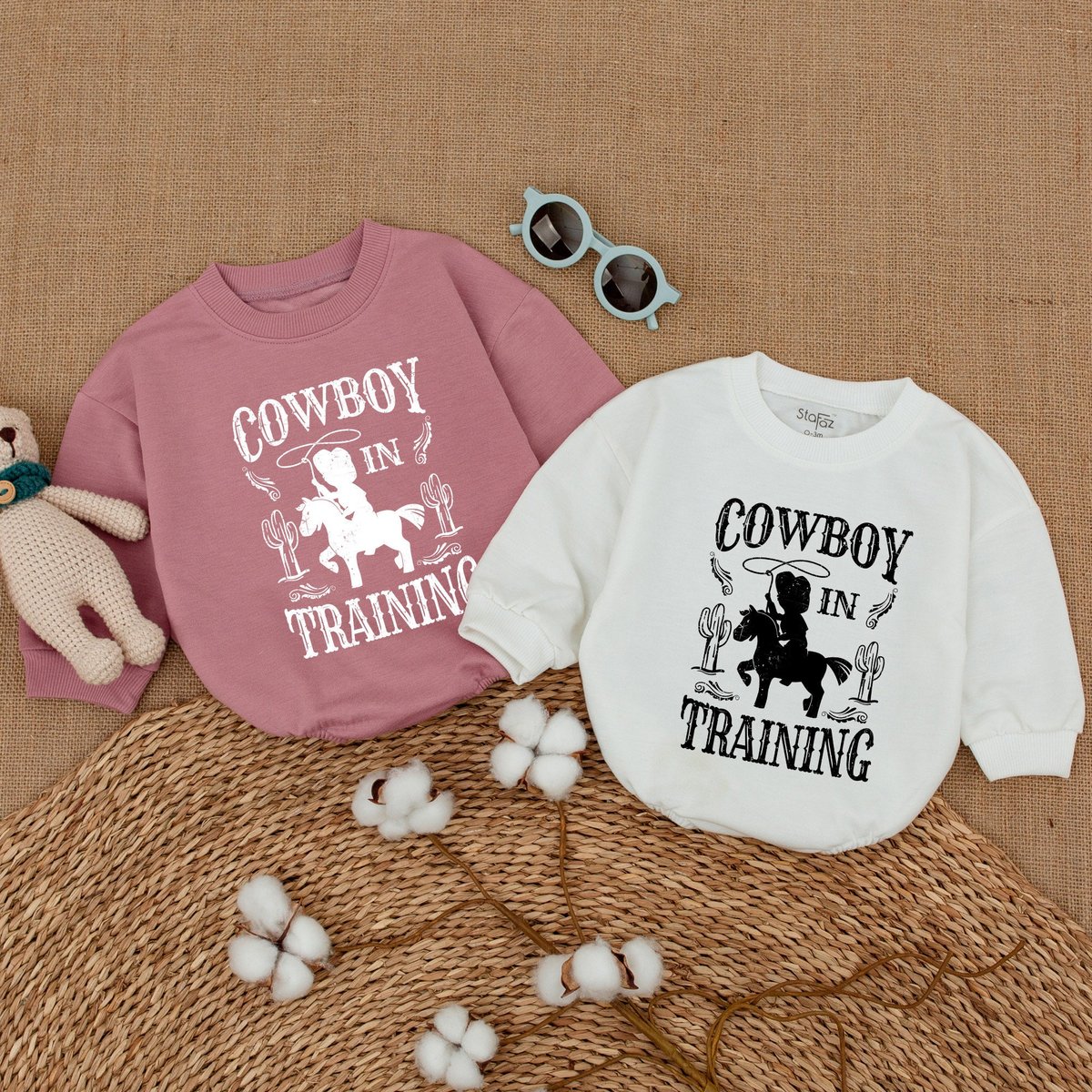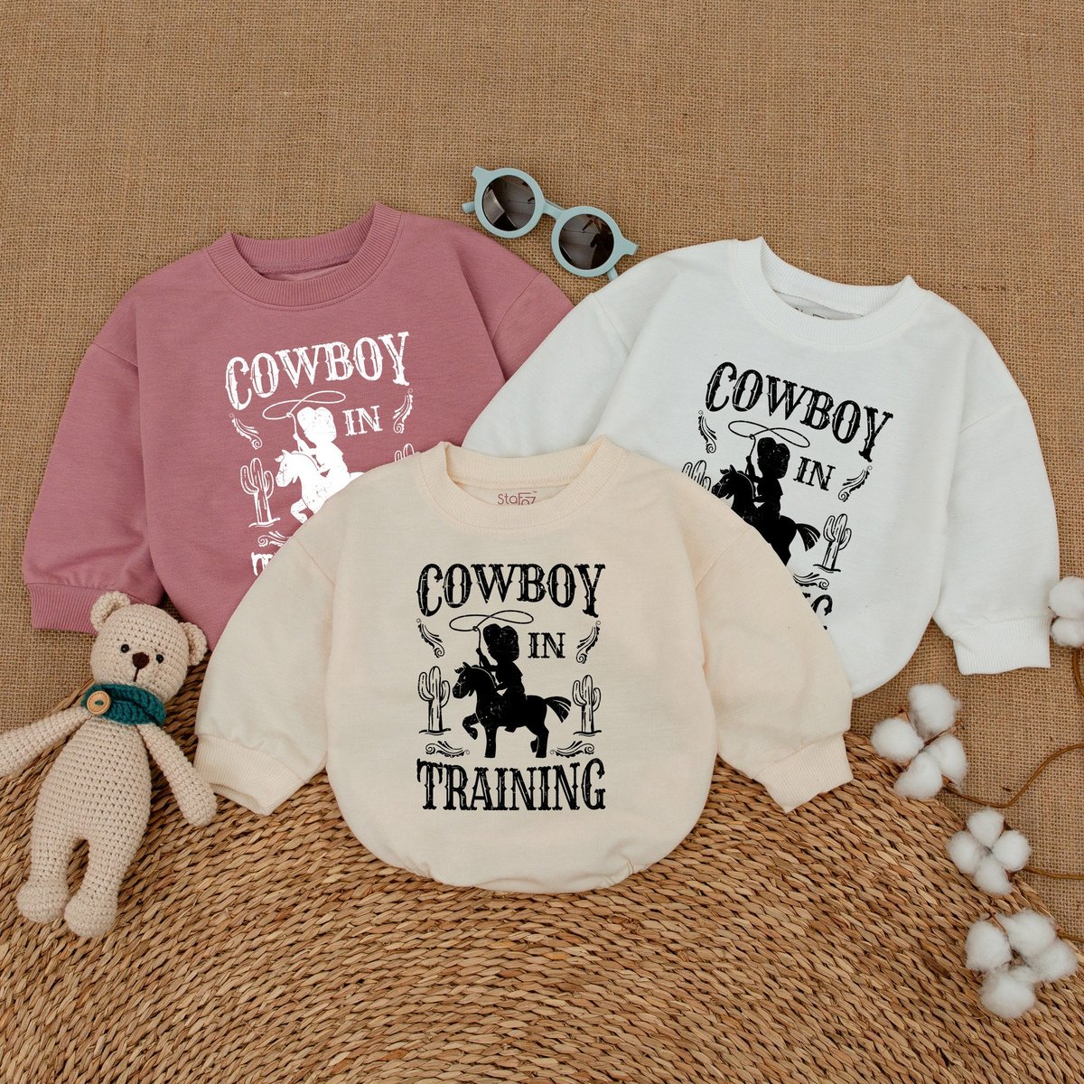 Cowboy in Training Baby Romper Boho Country Bodysuit Western Baby Gift Newborn Bubble Romper Gender 173