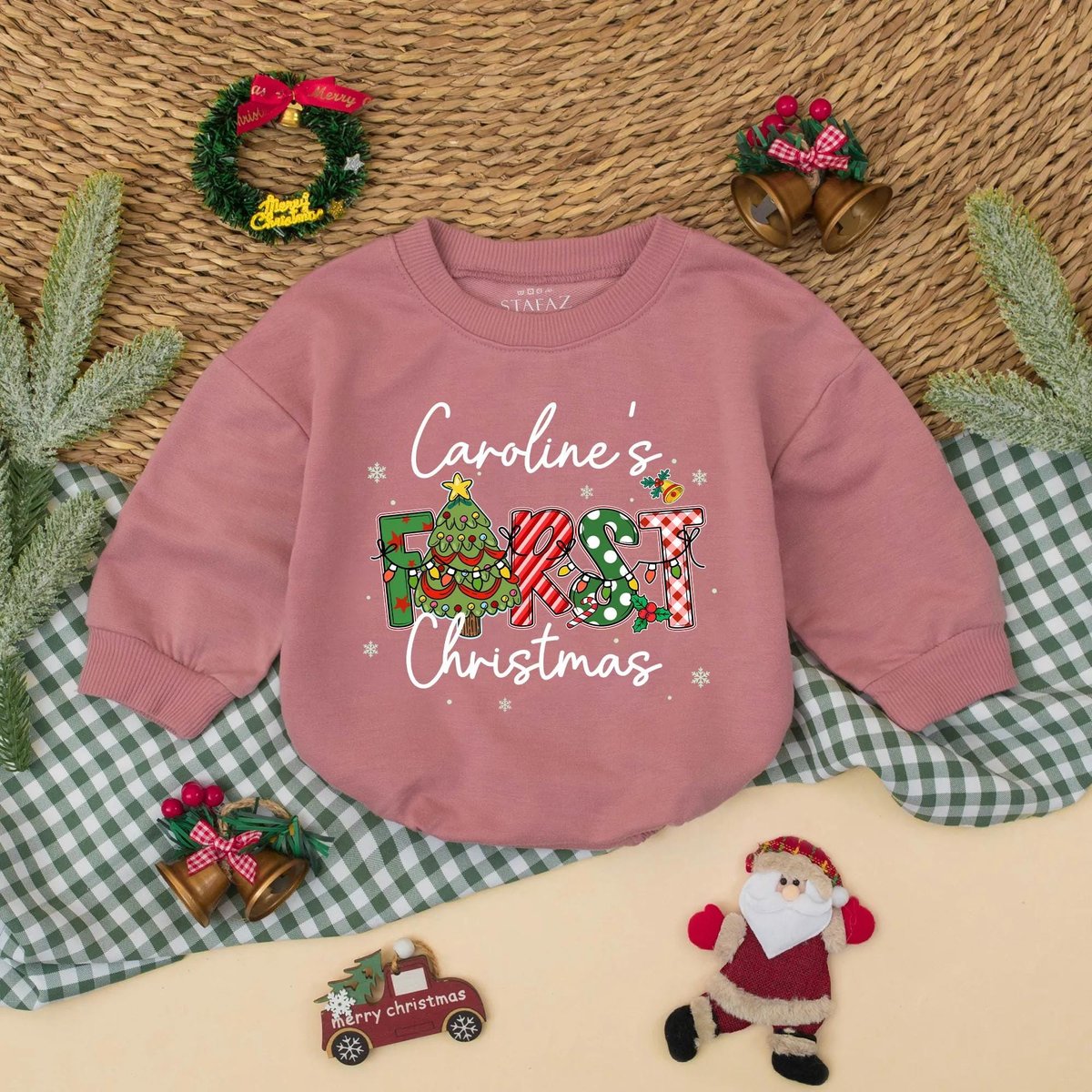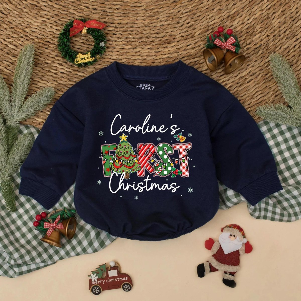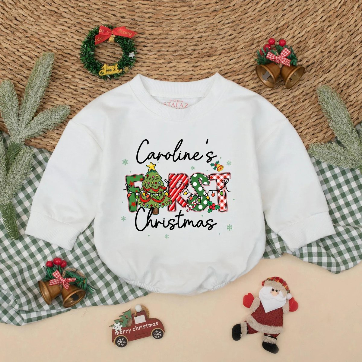 Custom First Christmas Bubble Romper Personalized Baby Xmas Outfit Holiday Romper with Name Babys 1s 436