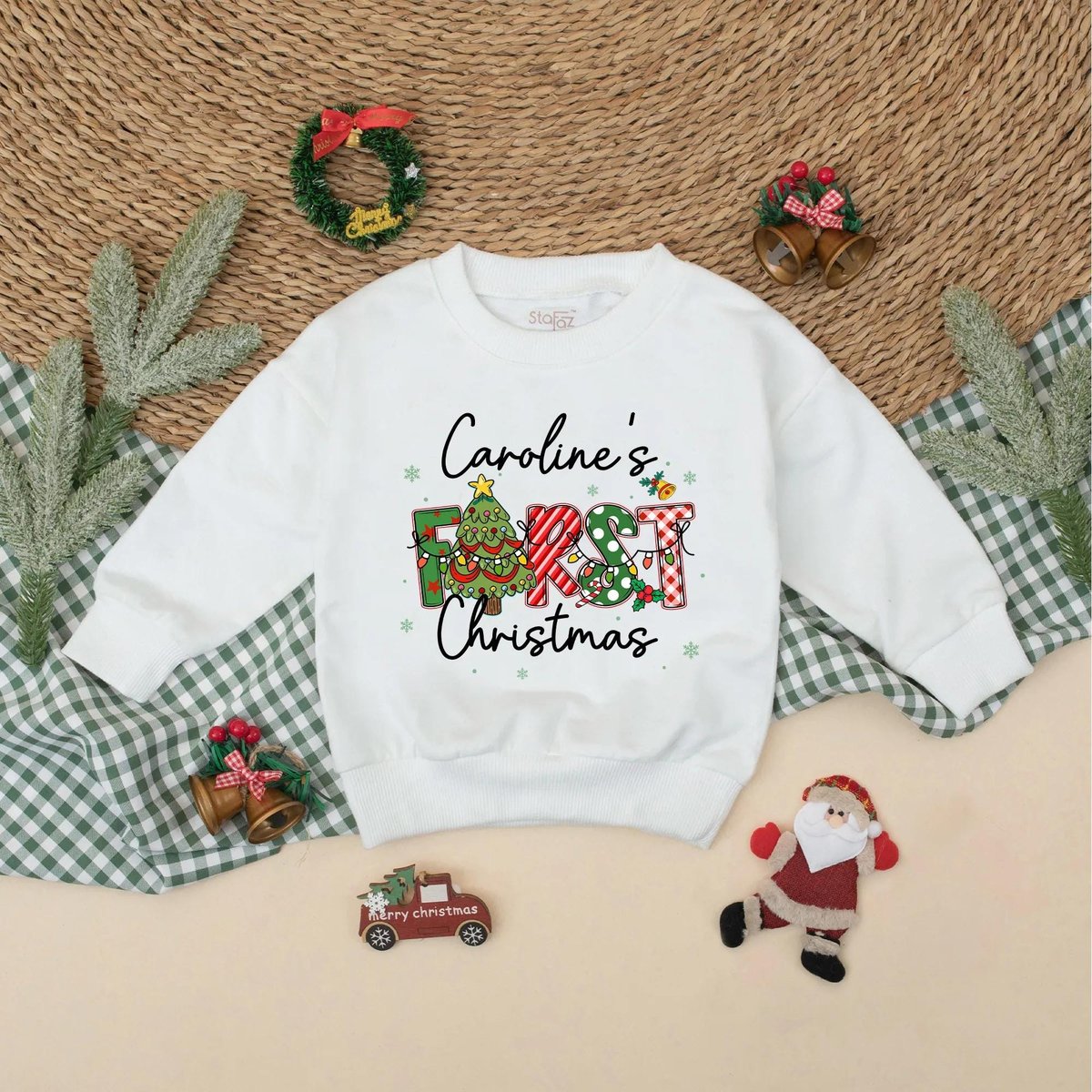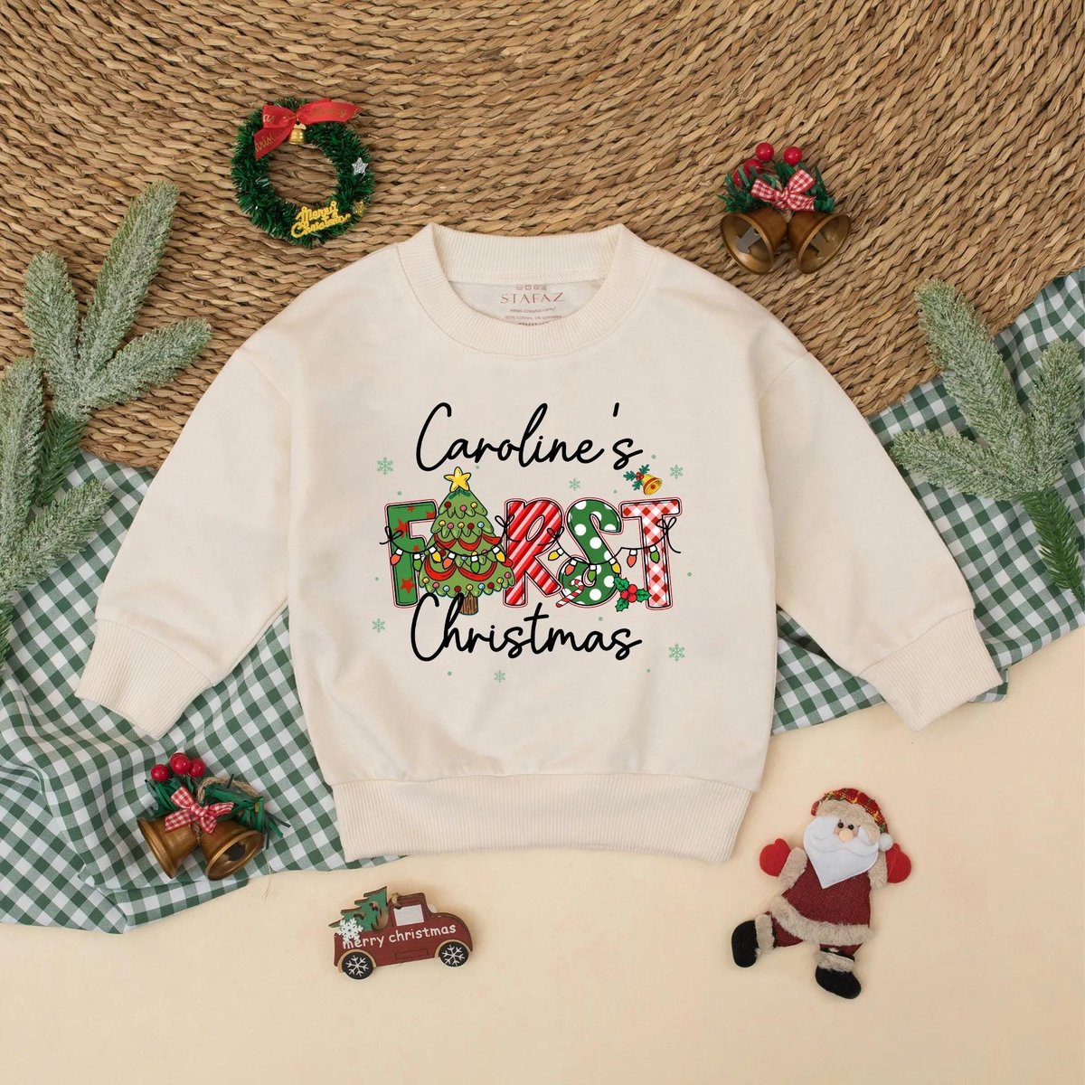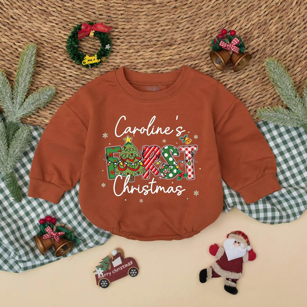 Custom First Christmas Bubble Romper Personalized Baby Xmas Outfit Holiday Romper with Name Babys 1s 436