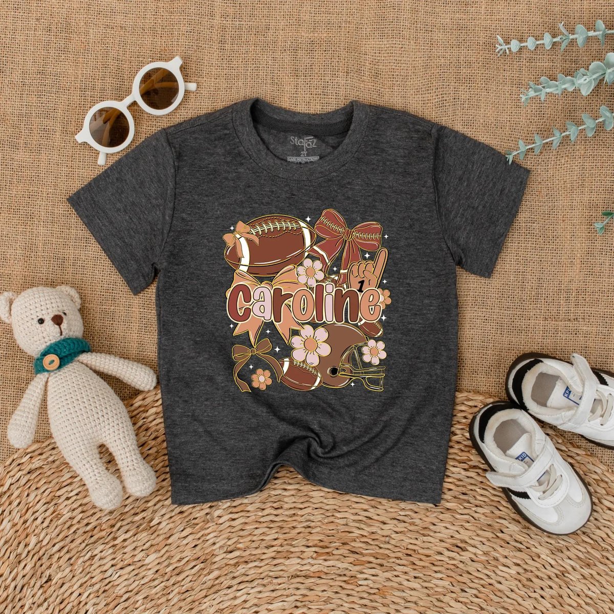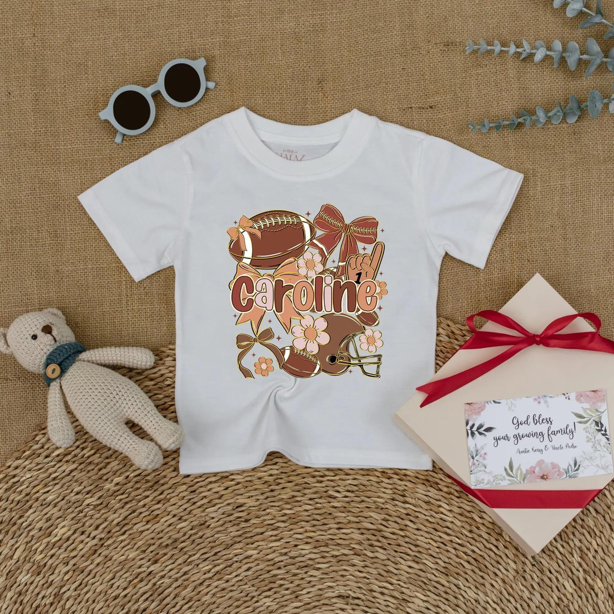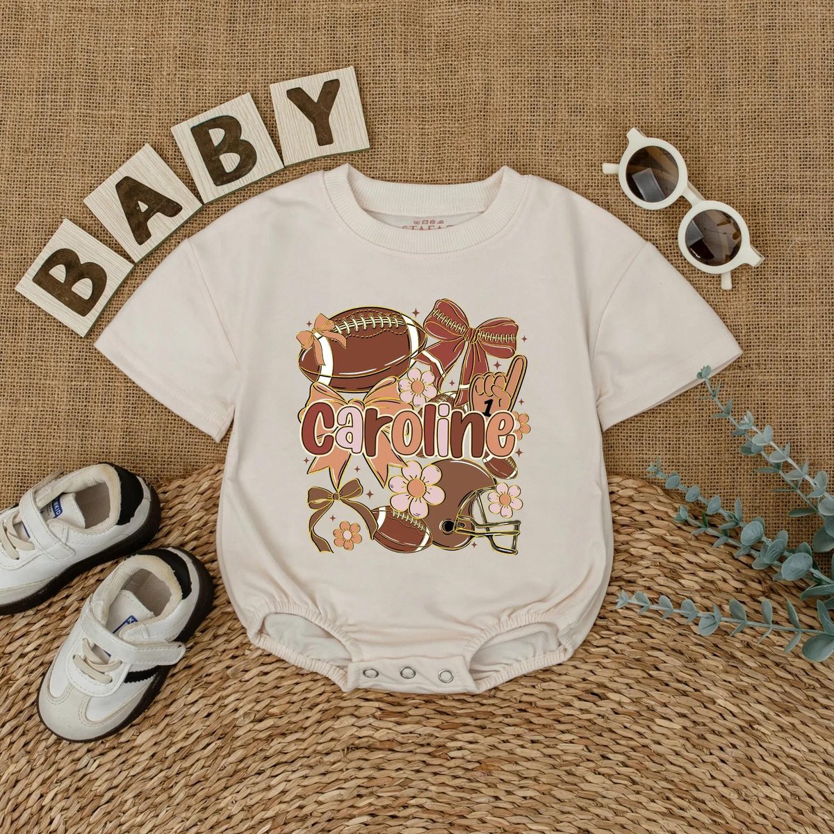 Custom Football Gameday Baby Romper Personalized Baby Bodysuit with Name Baby Girl Football Outfit W 436