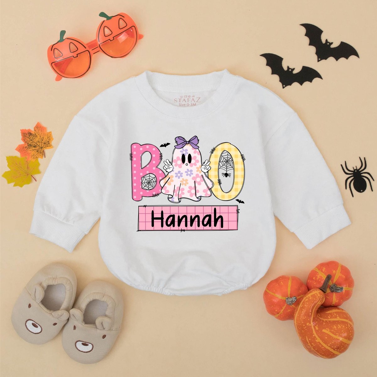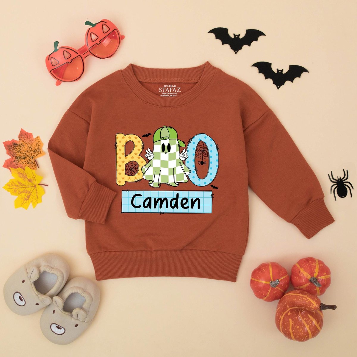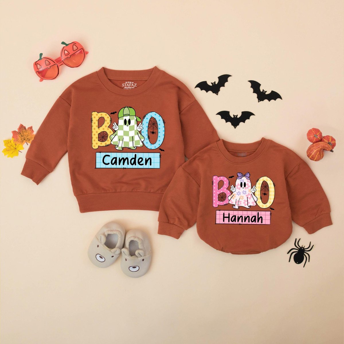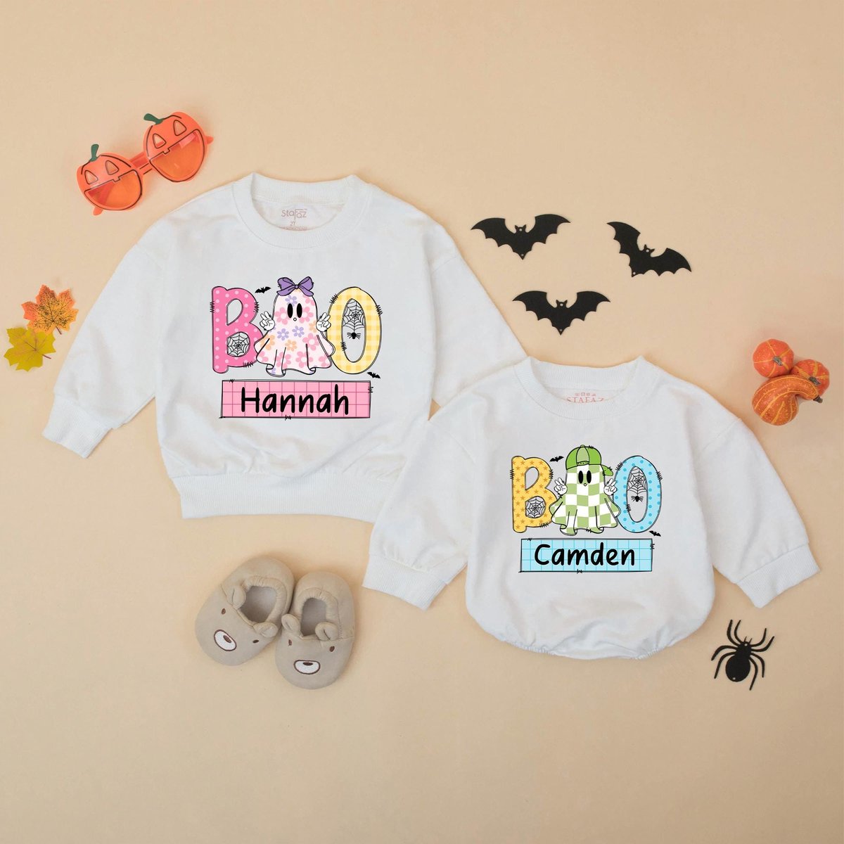 Custom Halloween Boo Ghost Matching Shirts for Siblings Personalized Boy Girl Fall Sweatshirt Romper 432