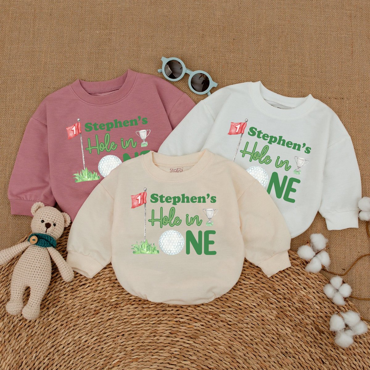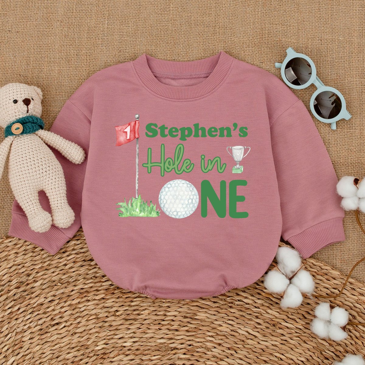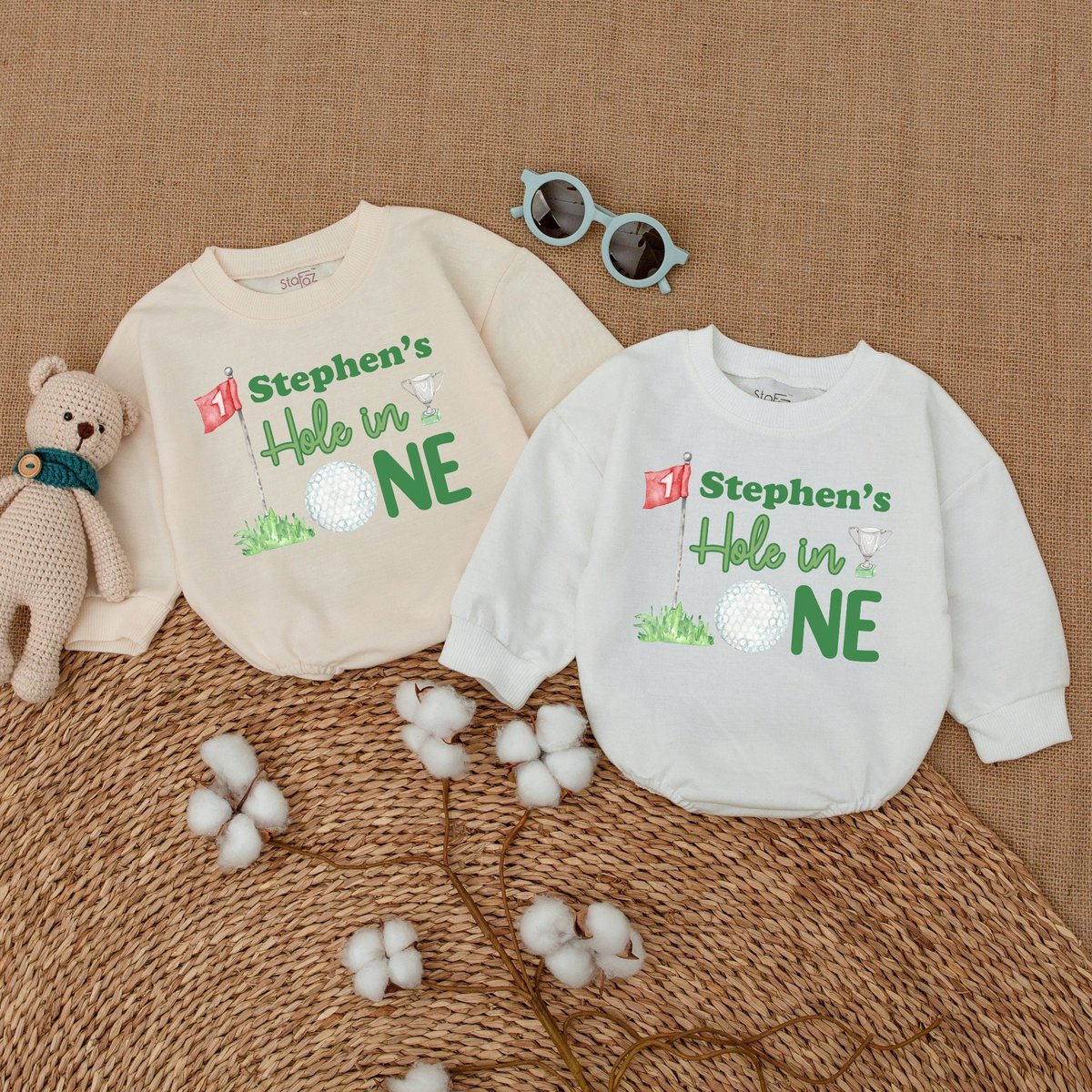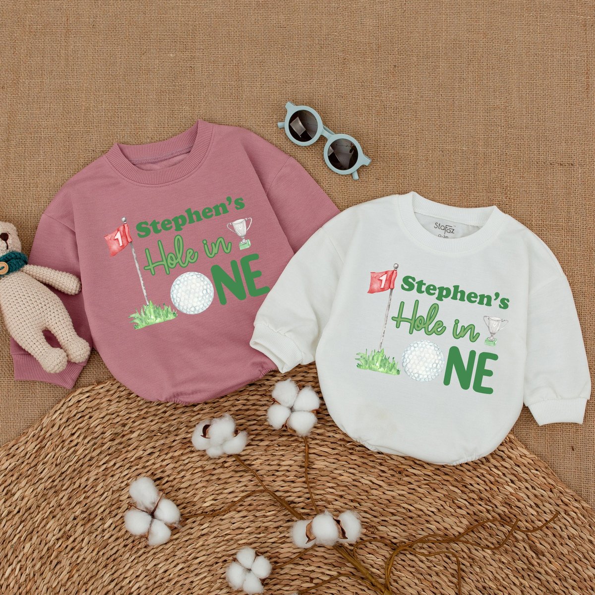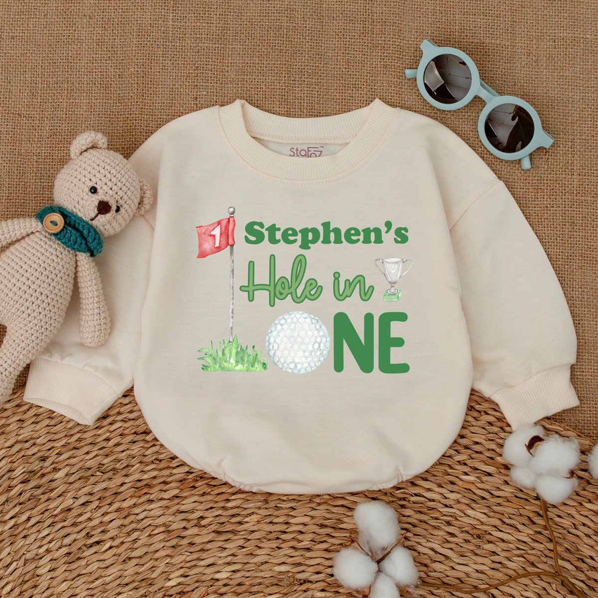 Custom Hole in One Birthday Romper Golf Birthday Bodysuit First Birthday Outfit Baby Boy Golf Outfit 171