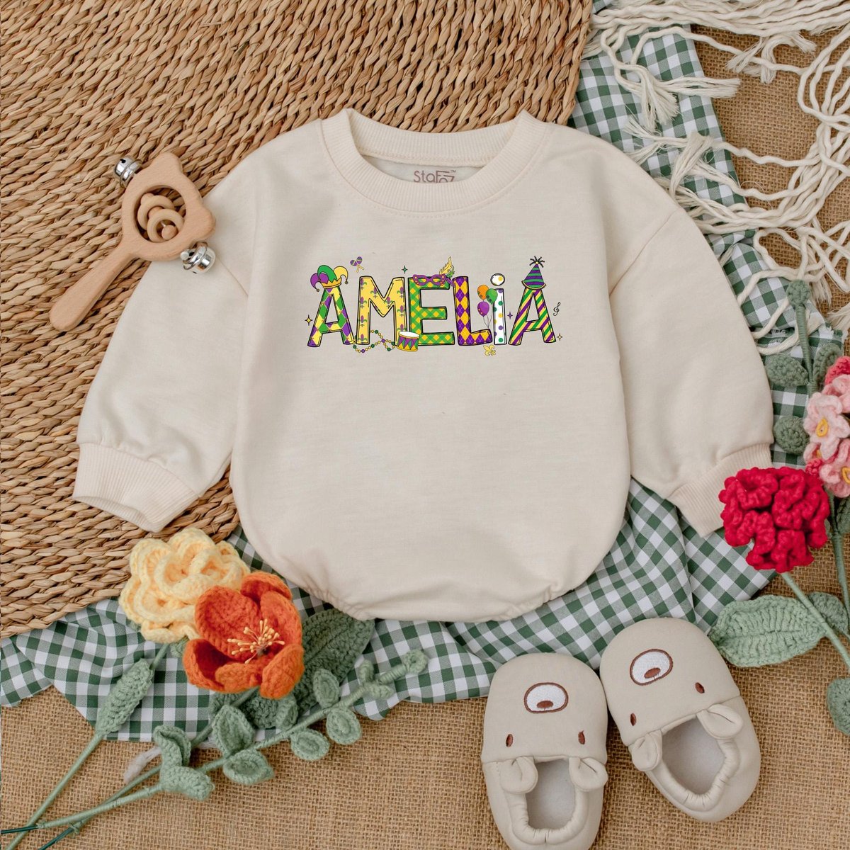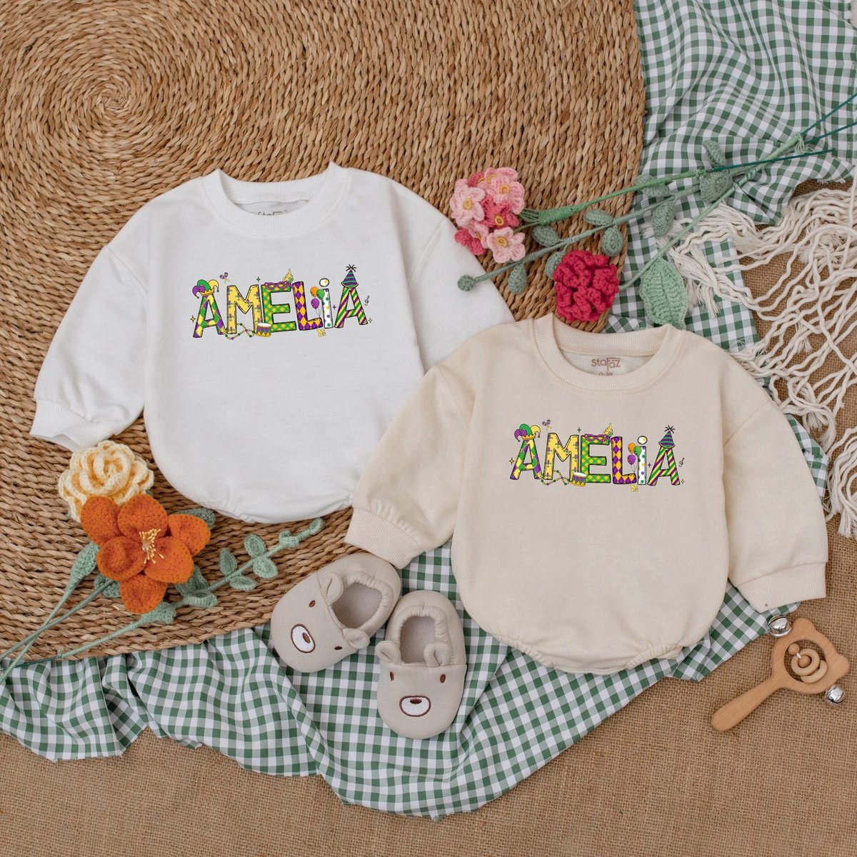 Custom Mardi Gras Baby Romper Cute Mardi Gras Bodysuit Mardi Gras Baby Outfit Mardi Gras Outfit for 187