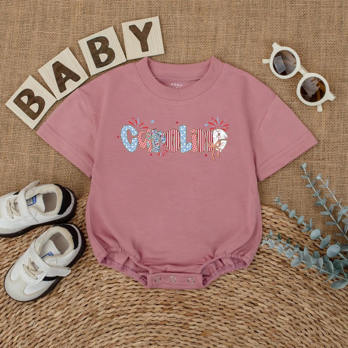 Custom Name 4th of July Baby Romper Personalized USA Baby Outfit Independence Day Bodysuit Patriotic 431