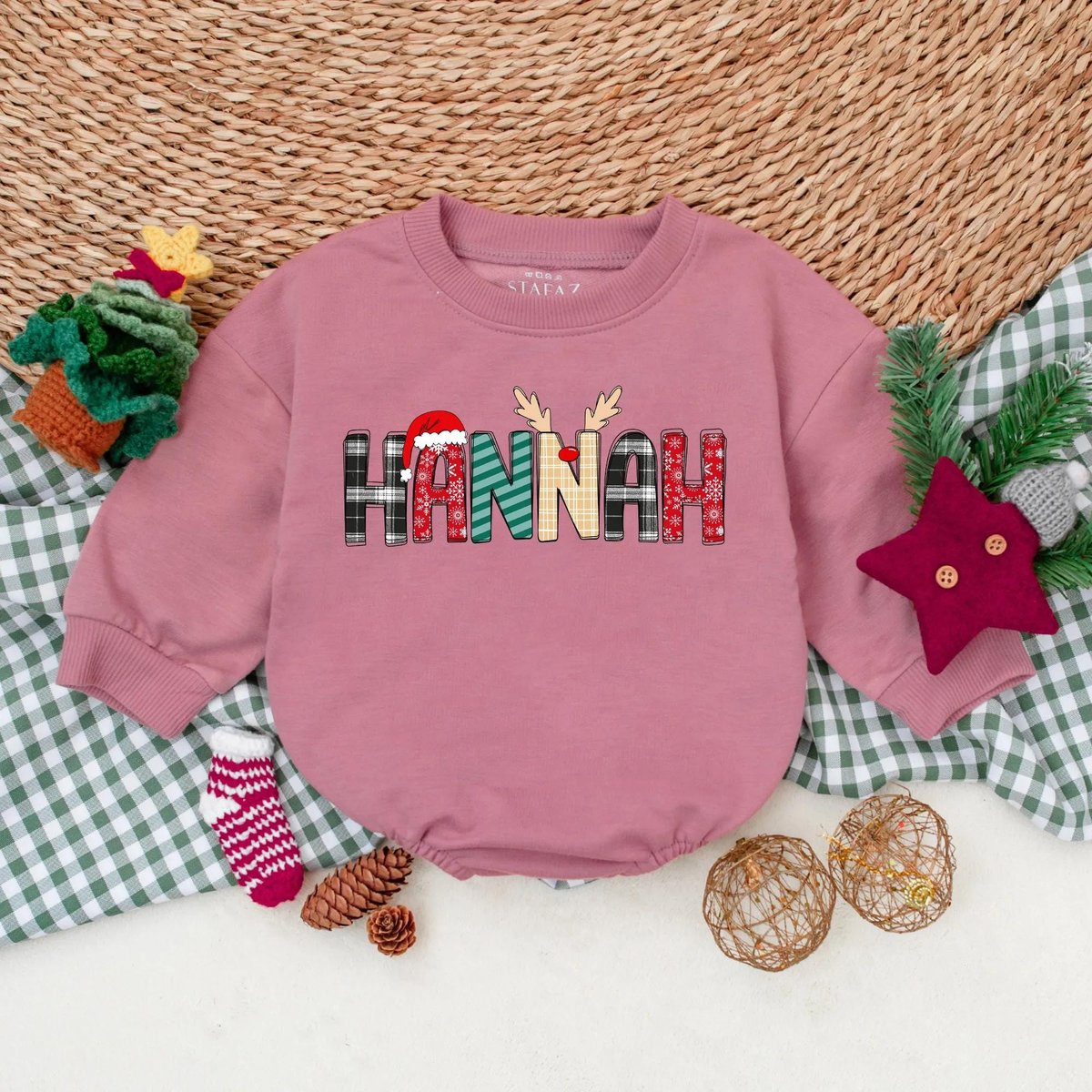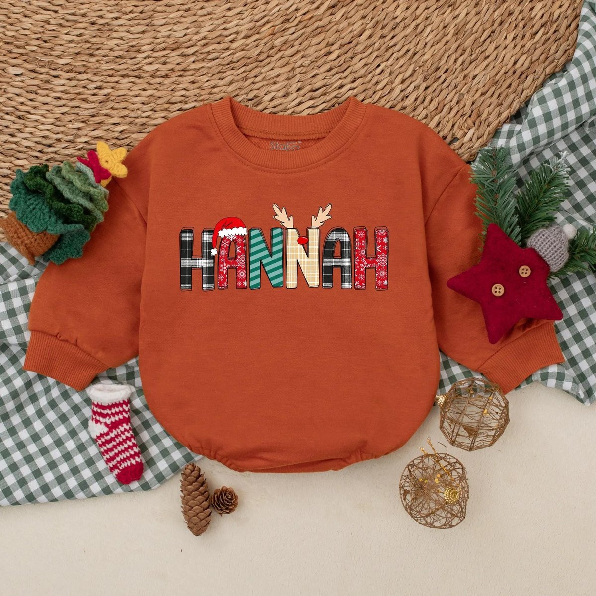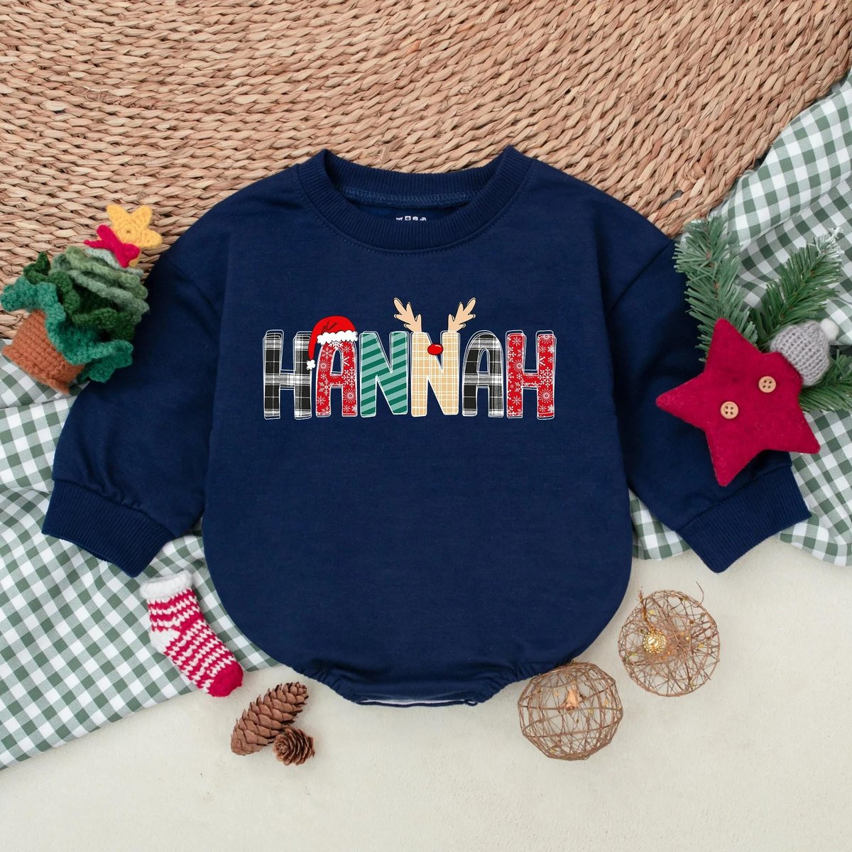 Custom Name Christmas Baby Bubble Romper Toddler Christmas Sweatshirt Romper Coming Home Outfit 1st 436