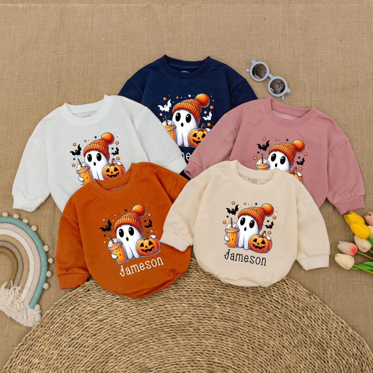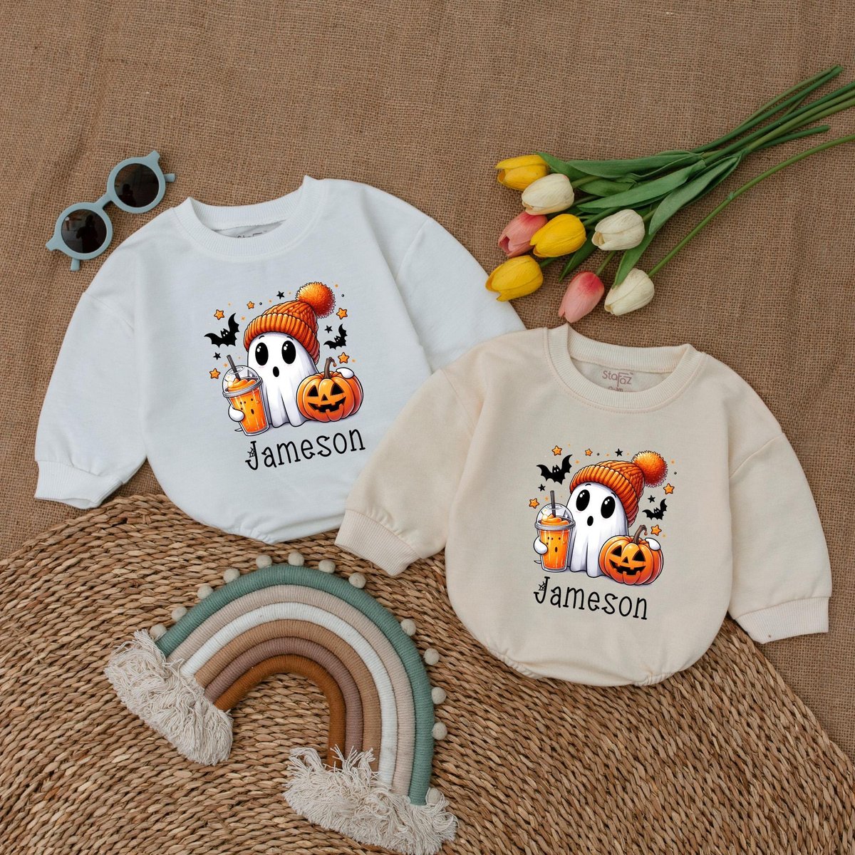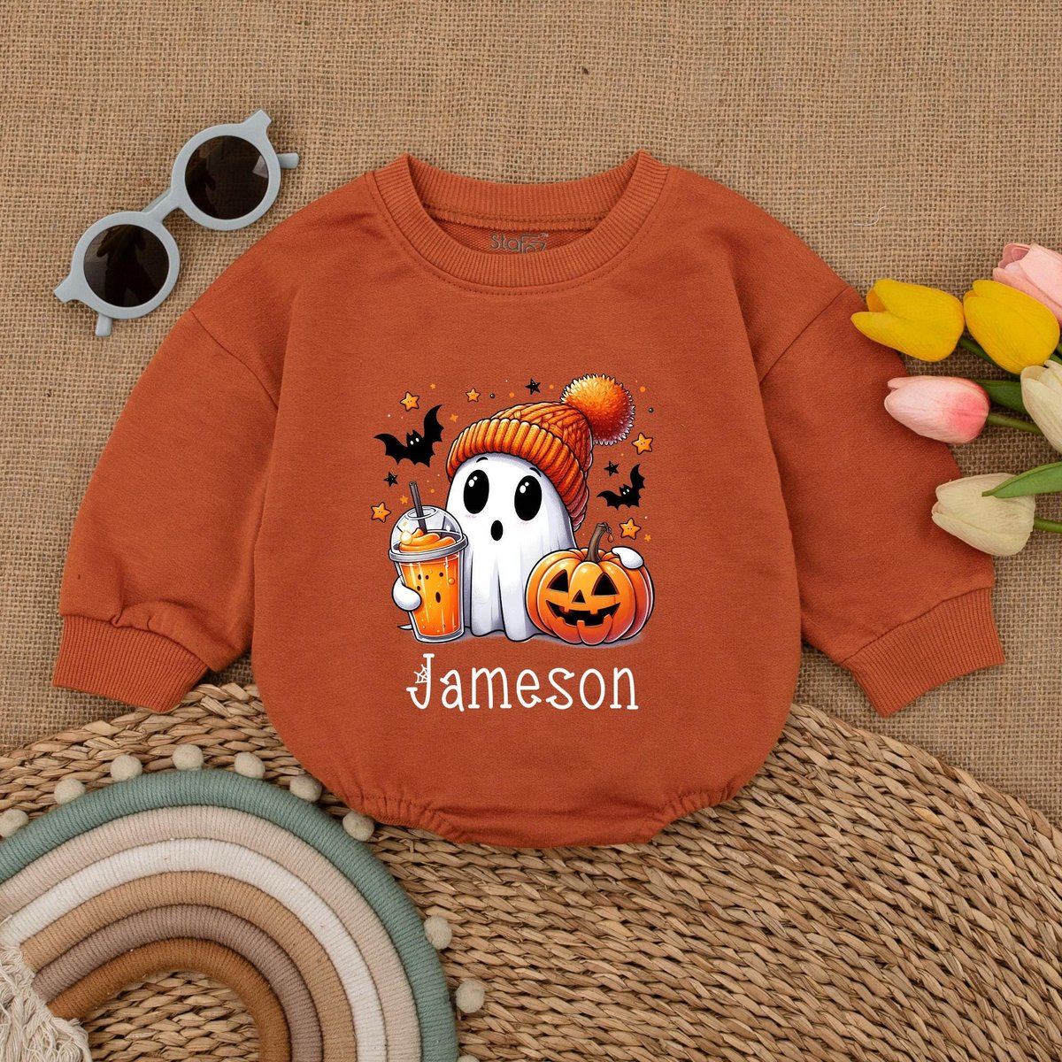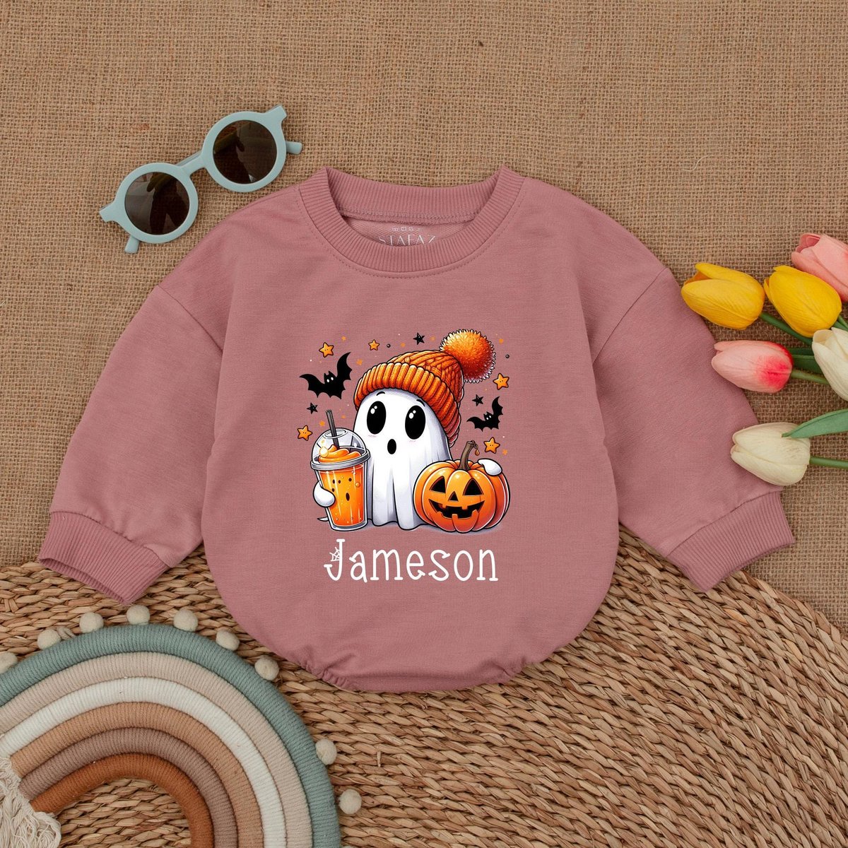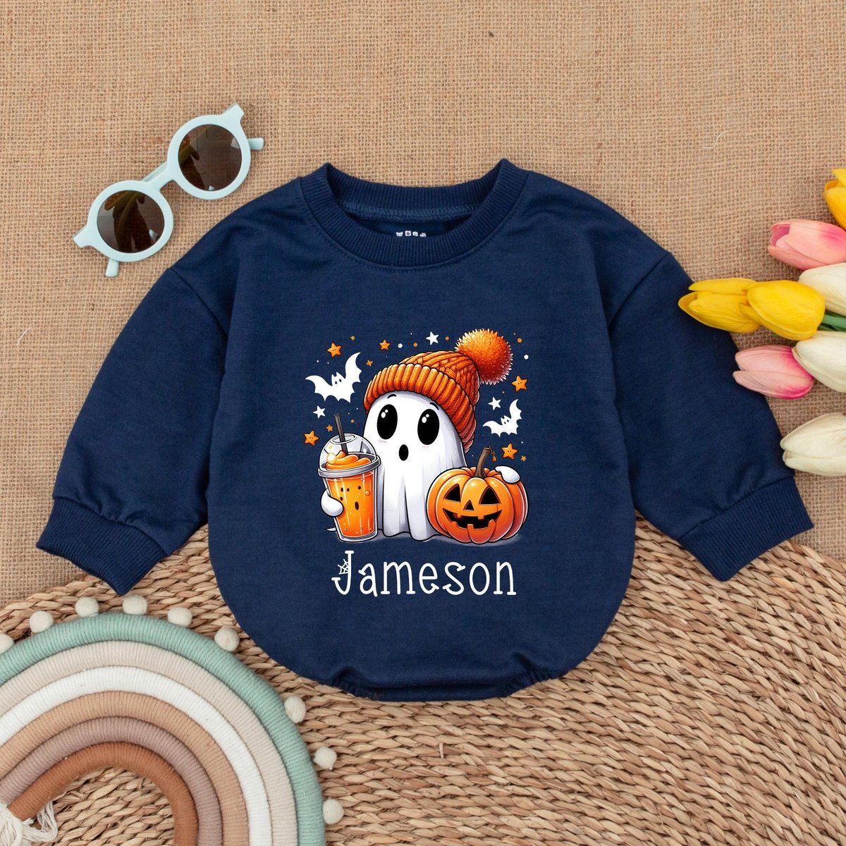Custom Name Cute Ghost Romper Infant Halloween Baby Bodysuit Boys Halloween Bubble Romper Fall Baby 178