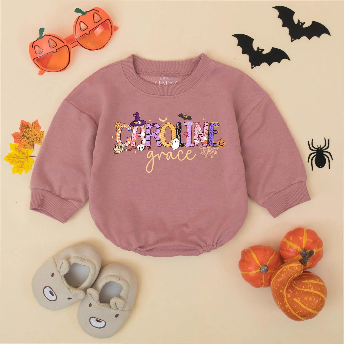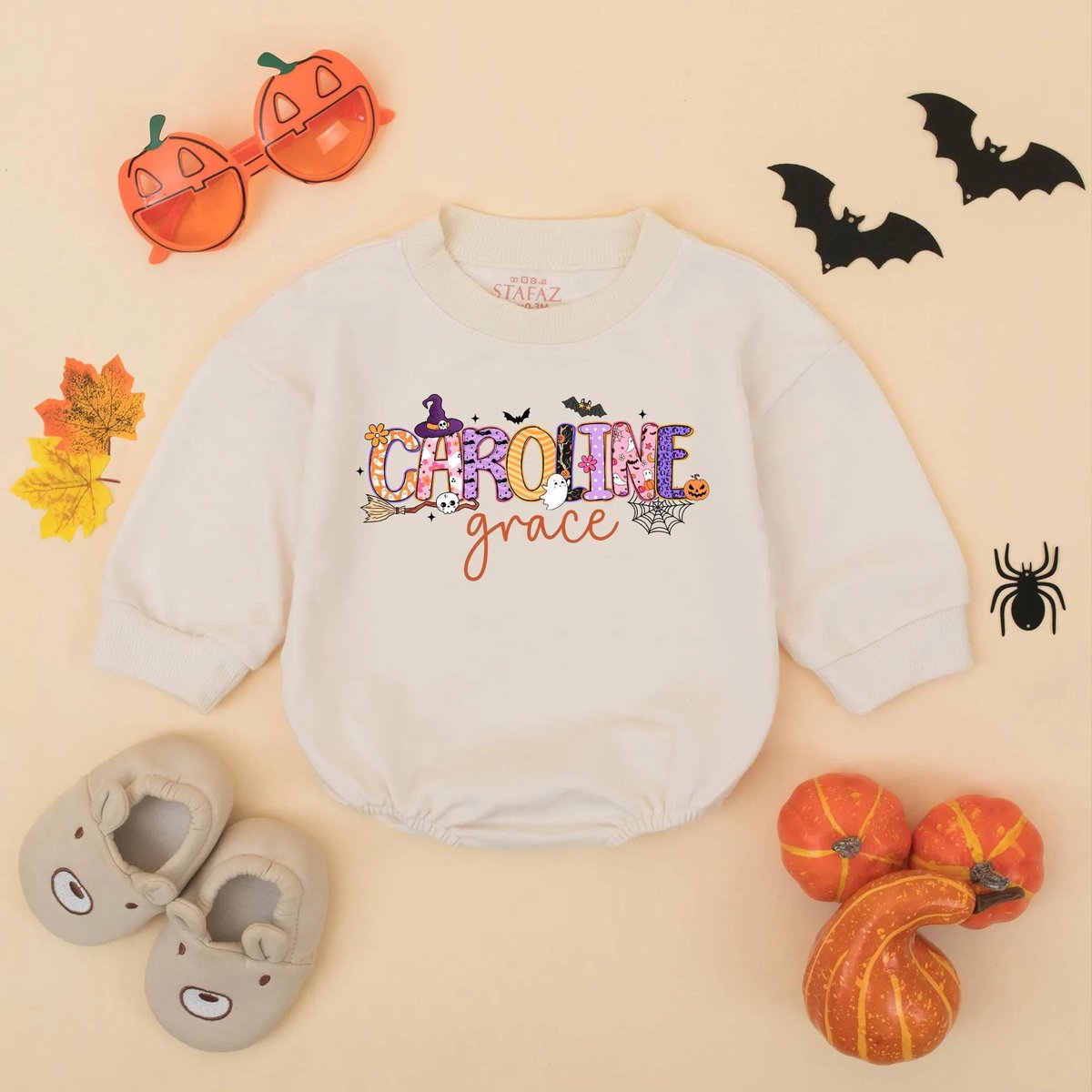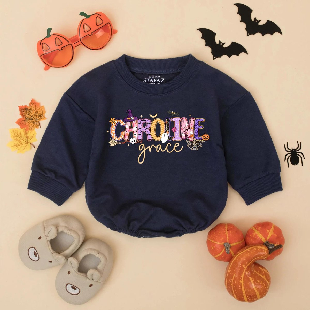 Custom Name Halloween Baby Romper Personalized First Halloween Baby Bodysuit Spooky Baby Outfit Kids 434