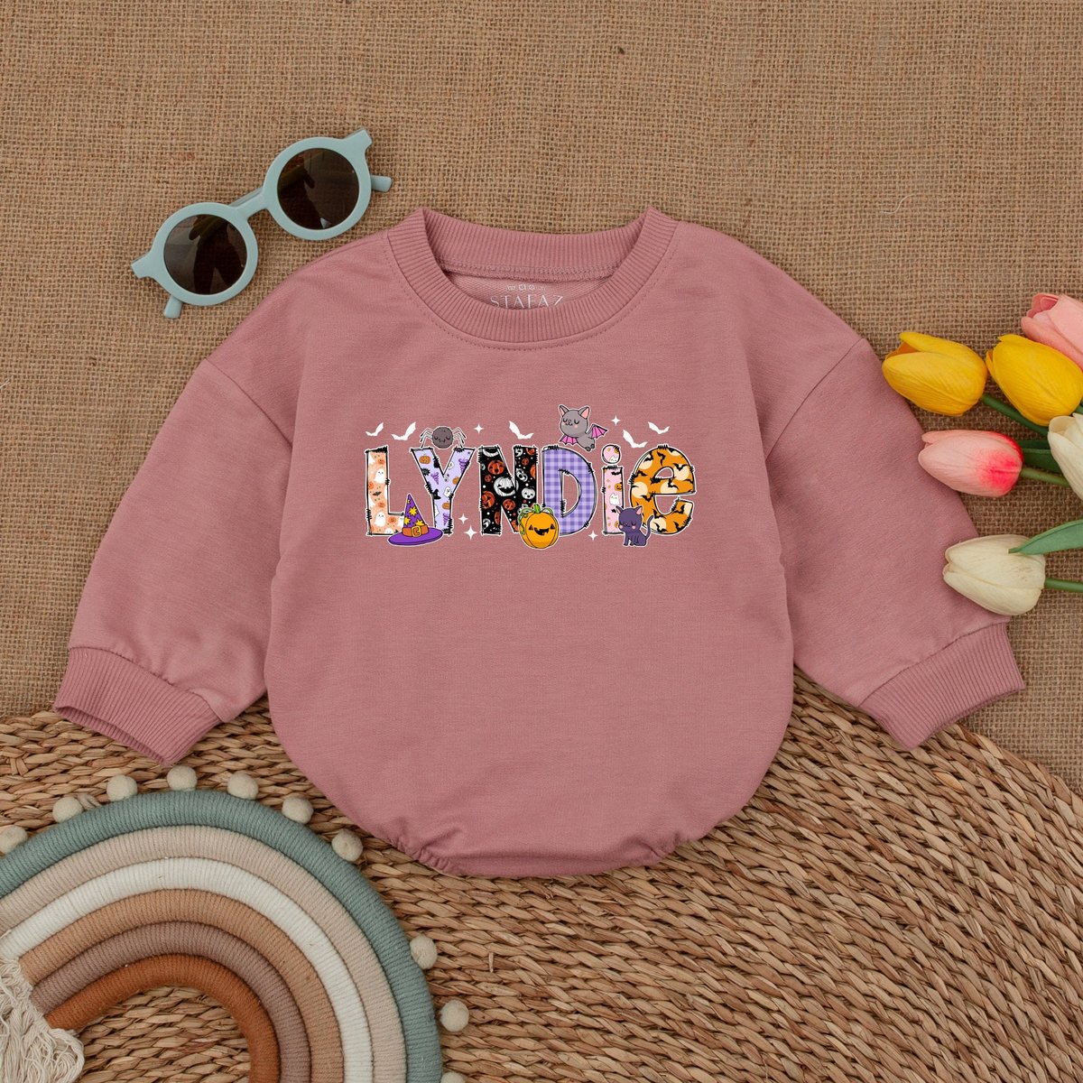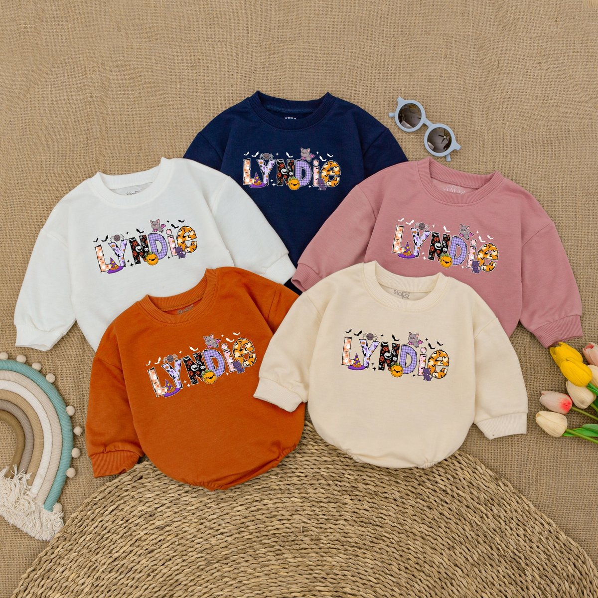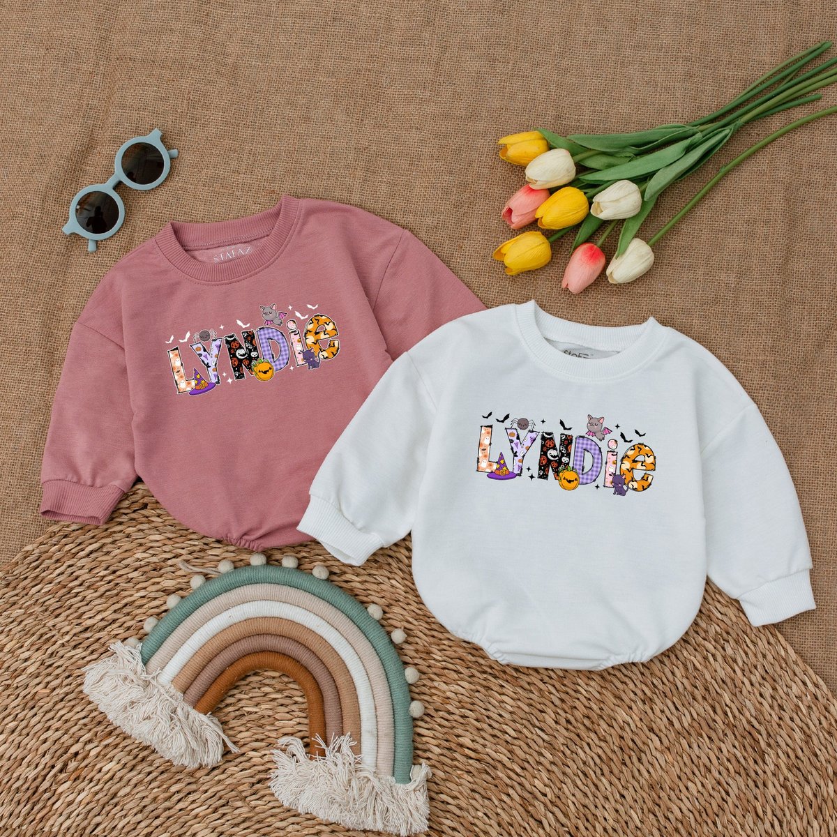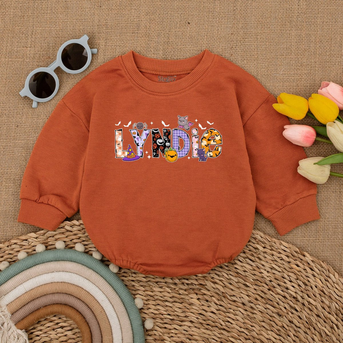 Custom Name Halloween Romper Personalized Halloween Name Bodysuit Fall Baby Outfit Halloween Baby Sh 175
