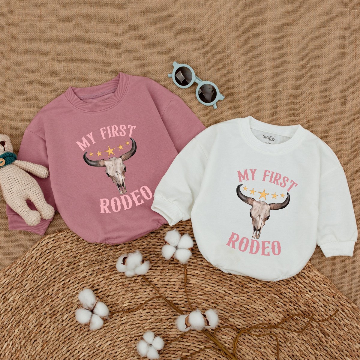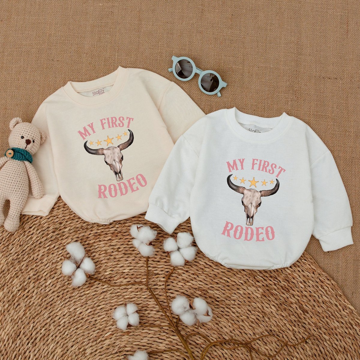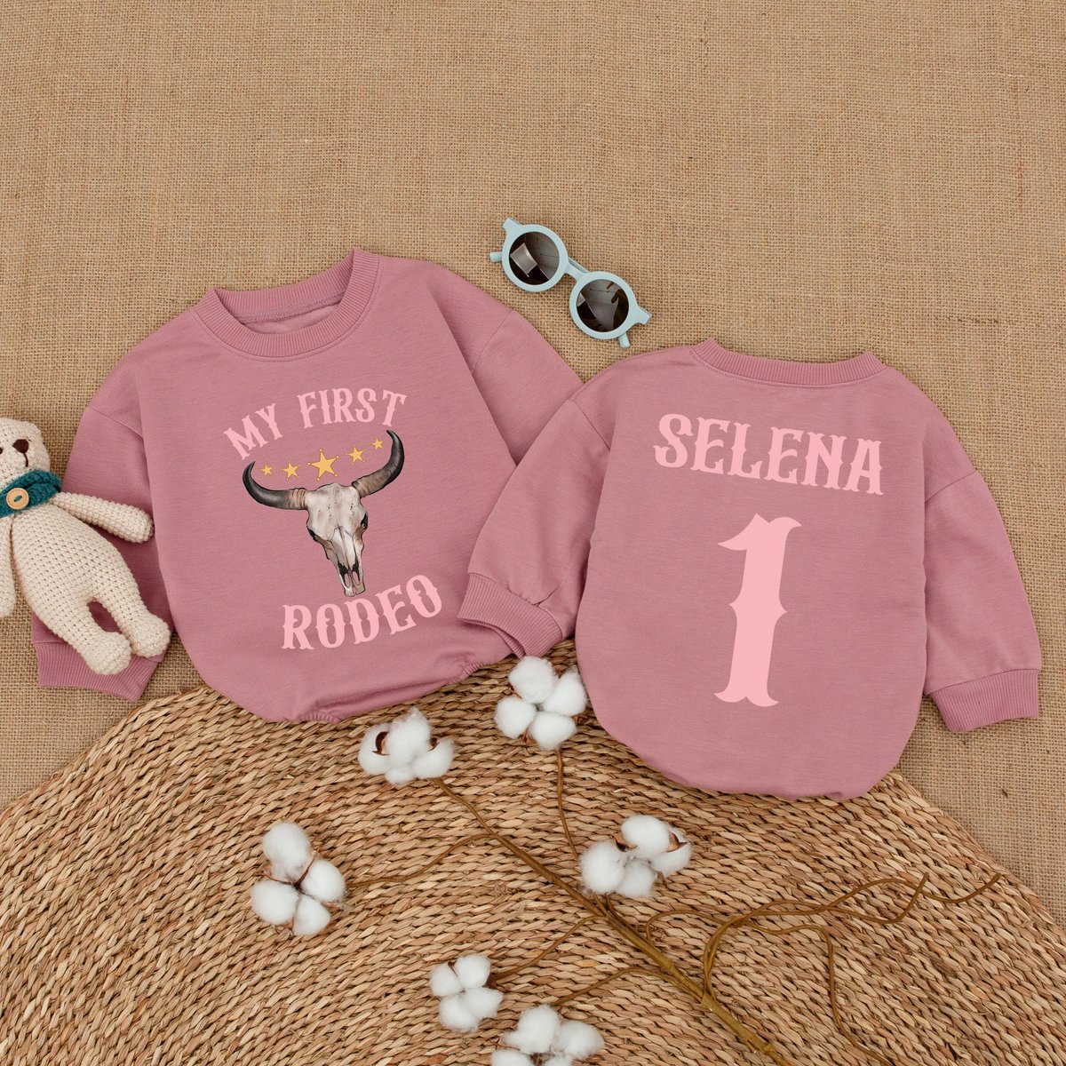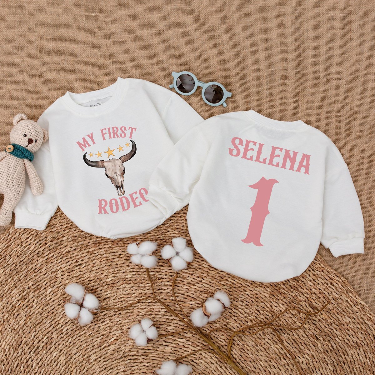 Custom Name My First Rodeo Romper Cowgirl Birthday Bodysuit Western Country Birthday Bubble Romper B 172