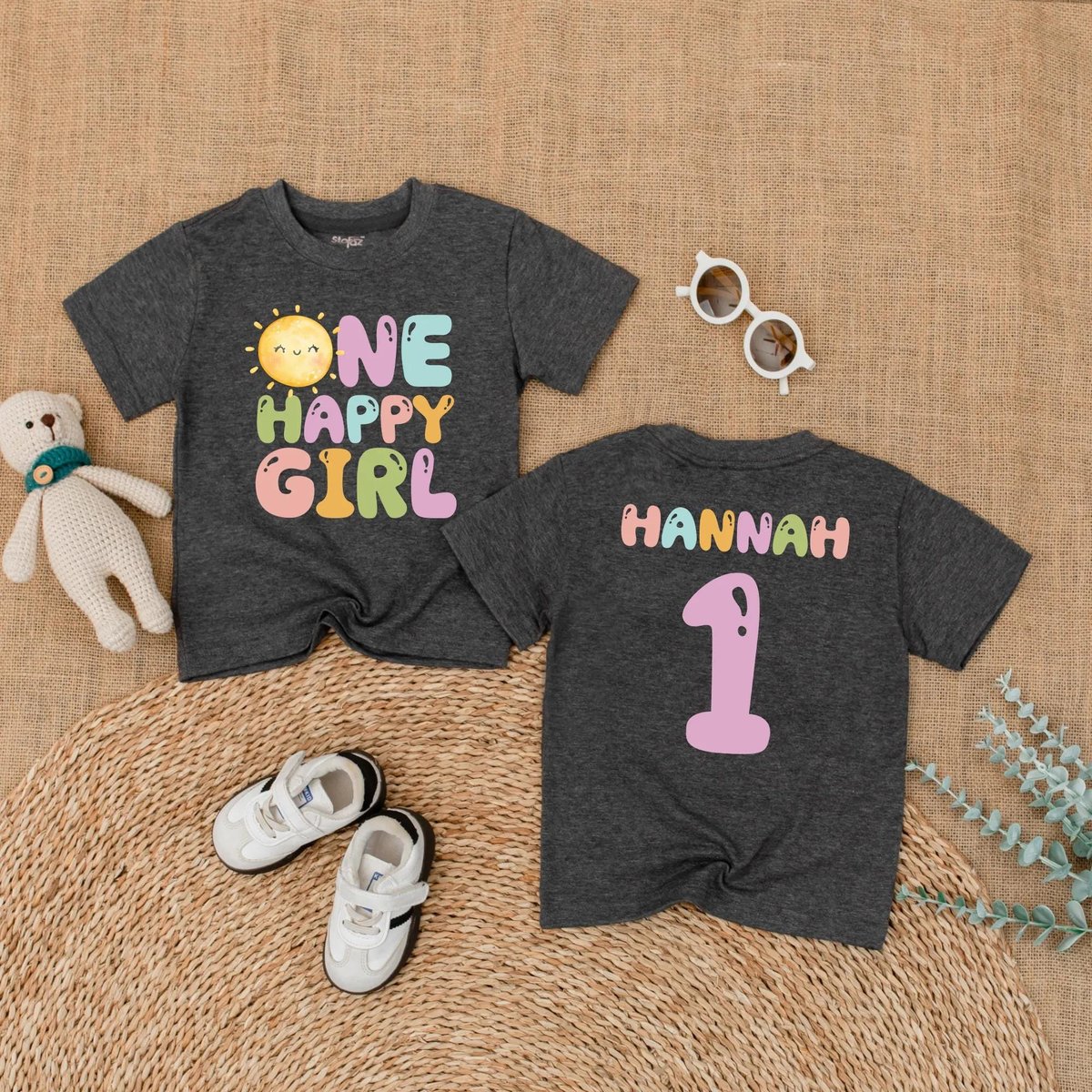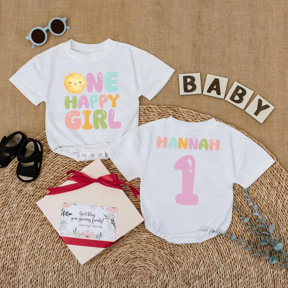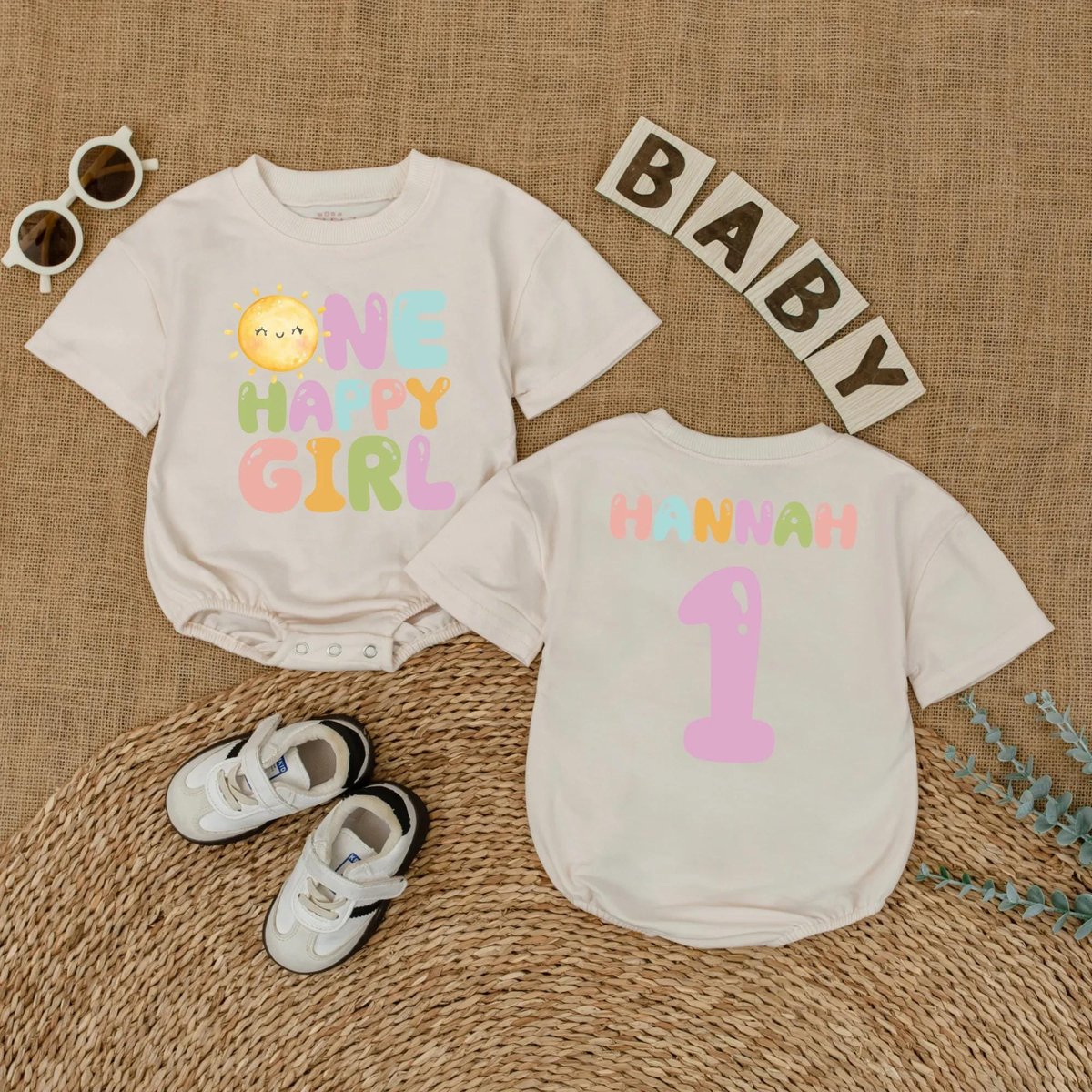 Custom Name One Happy Girl Birthday Romper First Trip Around the Sun Birthday Outfit 1st Birthday Ou 431