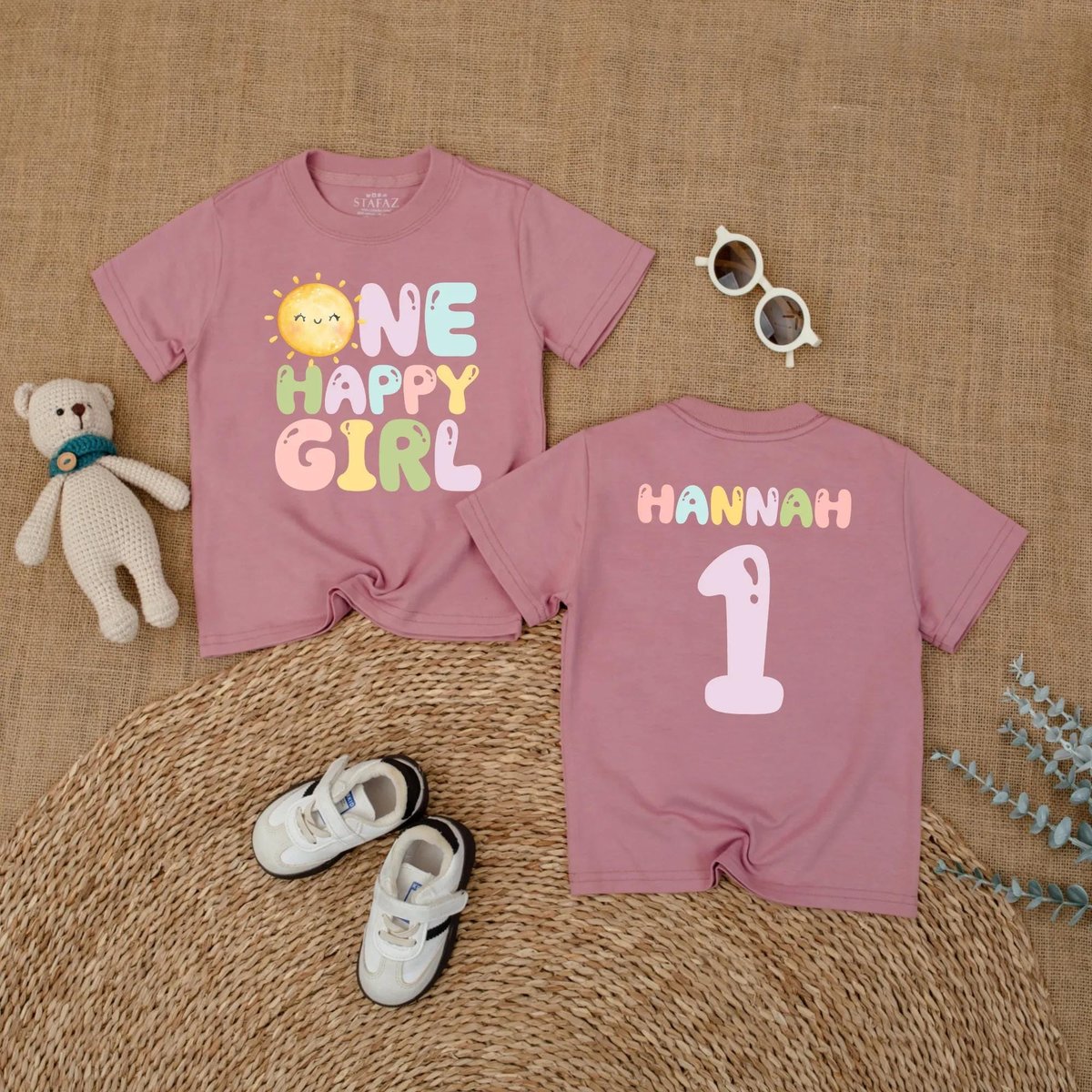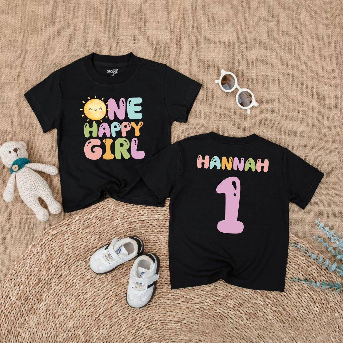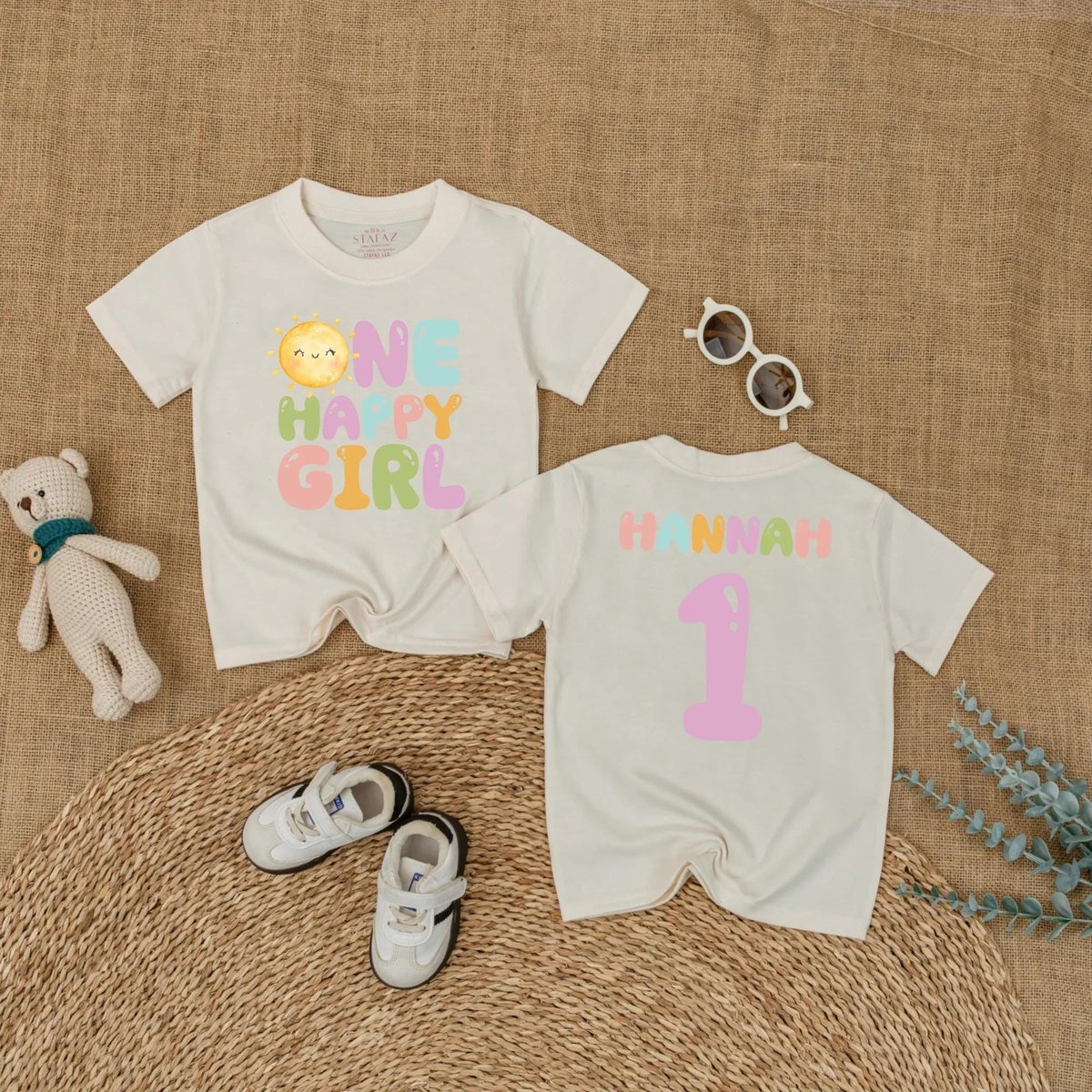 Custom Name One Happy Girl Birthday Romper First Trip Around the Sun Birthday Outfit 1st Birthday Ou 431