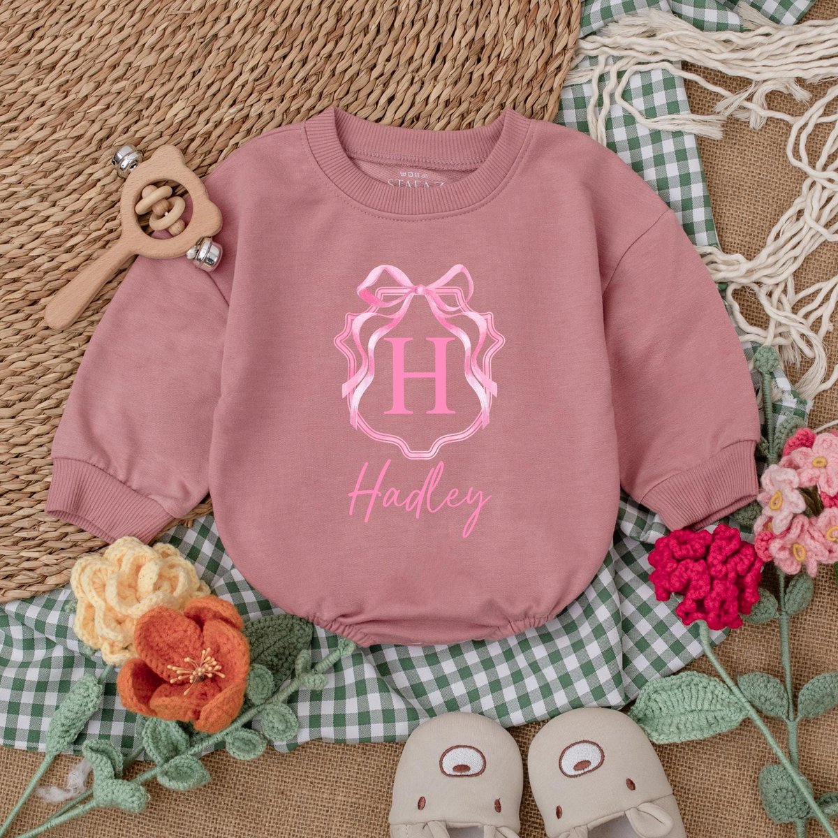 Custom Name Pink Bow Baby Girl Romper Pink Bow Baby Bodysuit Baby Girl Clothes Birthday Baby Gift Co 188